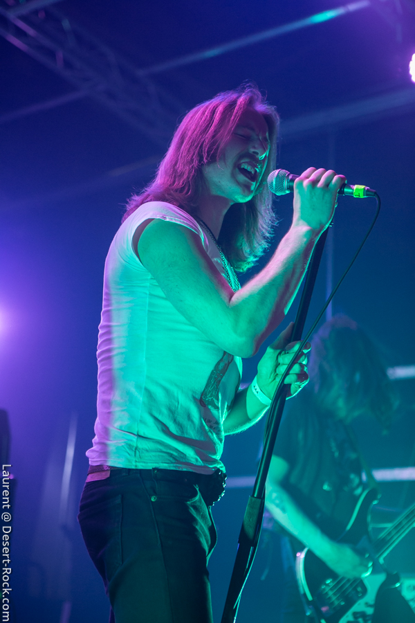 Et nous voici enfin face à la sidestage pour découvrir le premier groupe du vendredi. Cette année les deux scènes sont dans la même grande salle, si bien que le public n’a qu’à se déplacer de quelques pas pour assister à tous les concerts. Pas facile de lancer les hostilités face à une fosse très éparse… Les groupes grecs n’ont pas l’habitude de nous décevoir mais Vonavibe est l’exception qui confirme la règle. Nous n’avions pas d’attente particulière pour ce premier concert, heureusement. Le quatuor qui a gagné son ticket pour le fest après avoir remporté un tremplin ne semble pas avoir sa place dans le désert berlinois. Les petits gars exécutent un genre de heavy un peu pompeux et même en cherchant bien, il n’y aucune trace de stoner ici… L’euphorie du démarrage nous force à rester jusqu’au bout mais sans grand enthousiasme. Next.