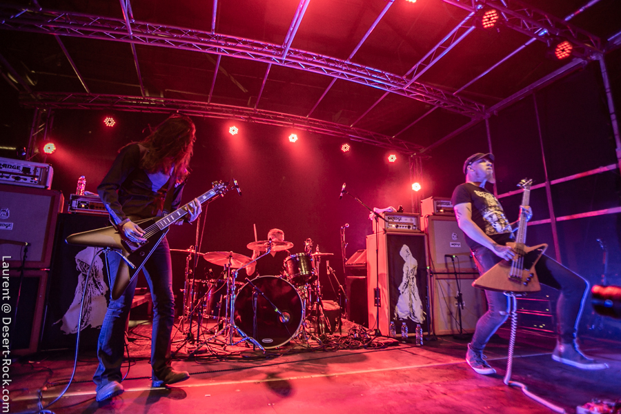 Les puristes et adorateurs de stoner rock attendaient la prestation des Ricains de Nebula avec autant d’impatience qu’un junkie attend son dealer au coin de la Schlesische Straße. Eddie Glass et sa dégaine à la Kurt Cobain balance le riff de « To the center » en tout début de set. Dommage, on aurait aimé que la température monte un petit peu avant de pouvoir headbanger sur leur titre phare. L’idée n’est pas mauvaise pour autant : après quelques minutes, la fosse est entièrement acquise à leur cause. Malgré un son brouillon, la bande d’Eddy nous balance les riffs accrocheurs comme pour rire. Leur retour était attendu après des années d’absences et le public berlinois en a pour son argent. Bon, OK la batterie et la basse ne bénéficient pas du meilleur son mais la pilule passe bien quand le trio envoie « Sonic Titan ». La prestation de Nebula reste difficile à évaluer avec ces petits soucis de son. Les fans de groupe sont en extase, les autres sont beaucoup plus mitigés mais Nebula marque tout de même le Desertfest de sa grosse patte.