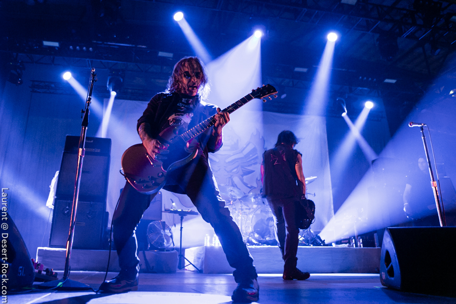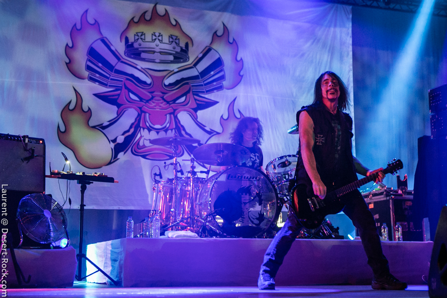 Le temps est venu de se déplacer de quelques mètres (ou de sortir s’empoisonner durant les 20 minutes bienvenues qui séparaient les concerts) pour assister au show du headliner du jour, Monster Magnet. La formation U.S. avait 90 minutes à sa disposition pour asseoir son statut auprès des festivaliers dans la capitale germanique et ne nous voilons pas la face : l’exercice est raté. C’est rageant et ce n’est pas uniquement le fait de la bande de Dave Wyndorf qui a rapidement embrayé sur des titres issus de son sympathique album « Mindfucker » – sorti cette année – après une ode aux substances illicites. Le quintette aligné sur l’imposante MainStage a déployé un dynamisme certain devant un backdrop blanc à son effigie et force est de constater que des morceaux nouveaux comme « Soul » intégreront rapidement les classiques live des Étasuniens tant ils sont pertinents en live. De la fosse à paparazzi nous avions une sensation assez positive, mais après avoir rejoint la fosse, nous fûmes affligés par la qualité du son. Ceci malgré quelques déplacements dans la salle qui nous permirent de valider notre perception. Manquant de clarté et confinant à la bouillie sonore, la qualité acoustique de la performance des têtes d’affiche du jour a passablement contribué à notre ressenti peu positif quant à ce show d’un groupe que nous chérissons pourtant. Le public présent lors de ces festivités nous confirmera, au fil des jours, que notre sentiment était largement partagé. Le calage dans un nouvel espace nécessitant une adaptation, les shows ne furent pas tous exempts de reproches au niveau du son surtout en ce premier jour de festival, qu’ils soient le fait de l’ingé-son du festival ou de celui des groupes. Très rapidement, la formation de la Côte Est a fait le premier coup du rappel pour terminer sa performance par un morceau fleuve, mou de la bite et sans queue ni tête délaissant le public alors qu’il leur restait amplement le temps d’interpréter 2 – voire 3 – titres pour enchanter des fans qui ne demandaient pourtant que ça ! Nous espérons bien nous rabibocher avec ces quidams lors d’un de leurs prochains passages parce que sur ce coup, ce monstre nous laisse une impression plus que mitigée…