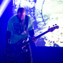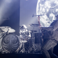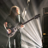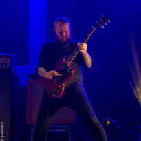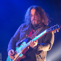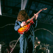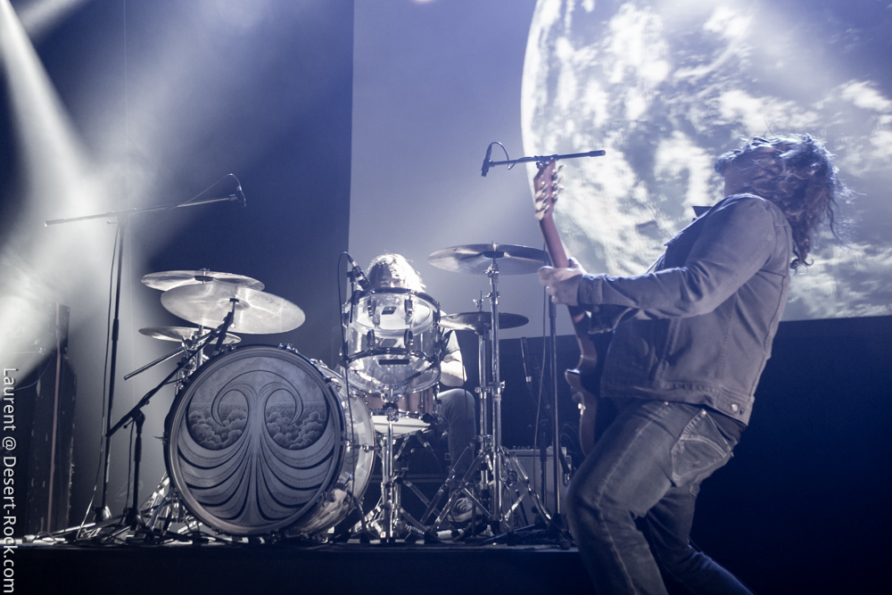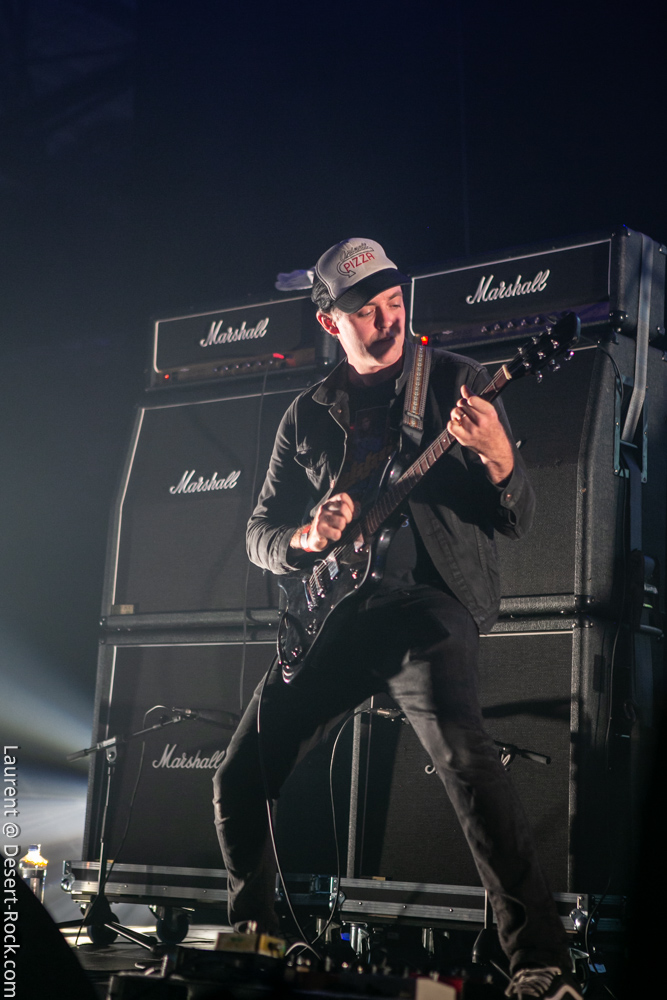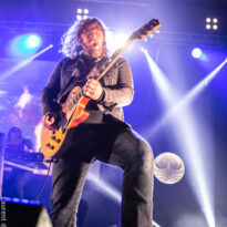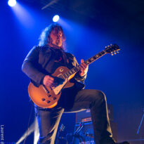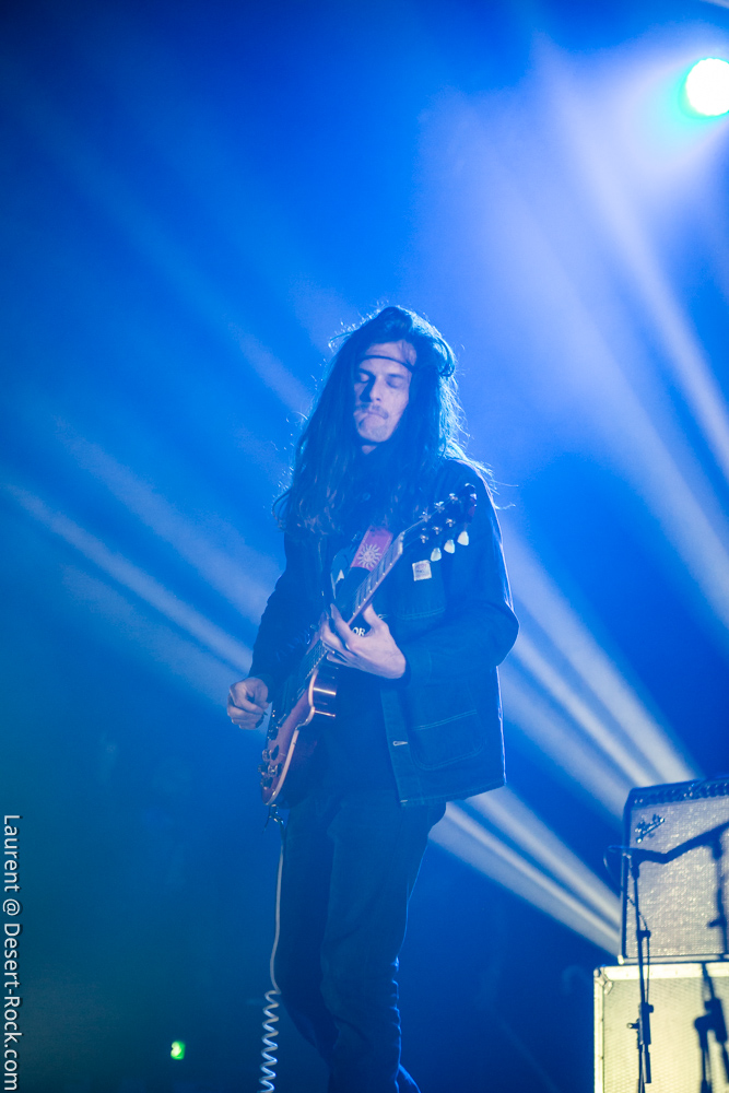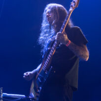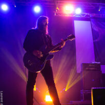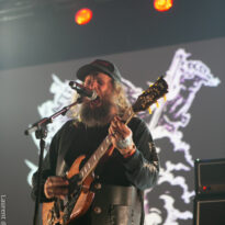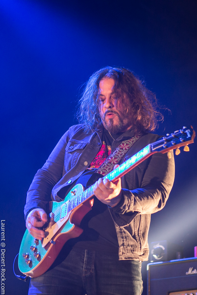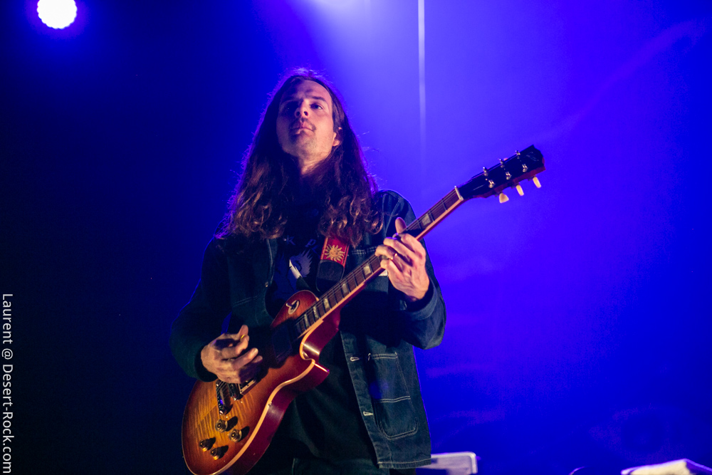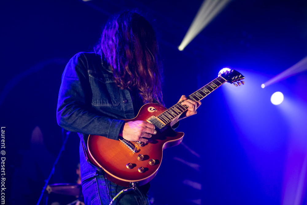 Le trio américain monte sur scène sur fond de « War Pigs » en headbanguant gentiment avec le sourire. En prenant son instrument et en contemplant l’Arena pleine à craquer, Charles Michael Parks Jr fait part de sa surprise « Wow, vous êtes nombreux »… Car oui, le groupe est très attendu ; l’ascension de All Them Witches ces dernières années a porté ses fruits, et l’on retrouve le (désormais) trio dans la partie haute de nombreux festivals. Pendant une grosse heure et quart, ils vont s’employer, par le menu, à justifier de cette notoriété. Après une intro sur le vieux « Funeral for a Drunken Bird », le groupe commence à montrer un visage live séduisant, avec par exemple « 3-5-7 » et son final enthousiasmant, ou un peu plus tard le virevoltant « When God Comes Back ». Le combo est carré, c’est le moins que l’on puisse dire, et ne pâtit pas franchement du départ de son claviériste : tout est là et bien là en format trio. Robby Staebler à la batterie frappe comme une mule, le regard hargneux, quasiment « habité » et même semblant pris de spasmes sur les derniers titres, on le croirait en transe ; impressionnant. Les soli de Mc Leod sont limpides, inspirés et efficaces. Niveau mise en place, le groupe est juste hallucinant, et l’efficacité est au rendez-vous. Côté set list, le focus est mis sur le dernier opus ATW, bien sûr, et le set s’en retrouve moins nerveux, avec des moments un peu « plats » ici ou là, admettons-le. Le petit sentiment de folie et de relief des productions précédentes manque un peu parfois. Mais le show déroule sans jamais le moindre ennui, et on ne peut que reconnaître la qualité musicale de ce groupe, malgré une set list mélangeant valeurs sûres et morceaux un peu moins intéressants.