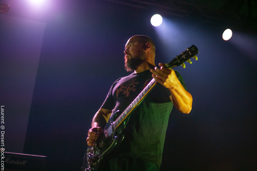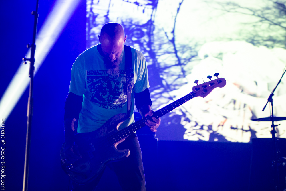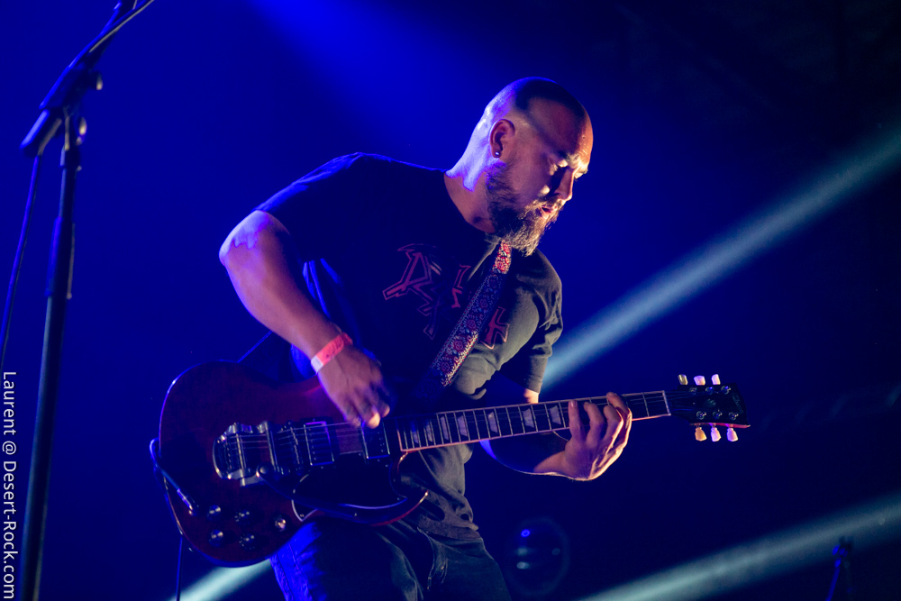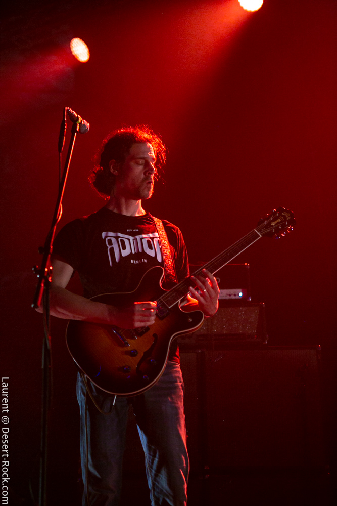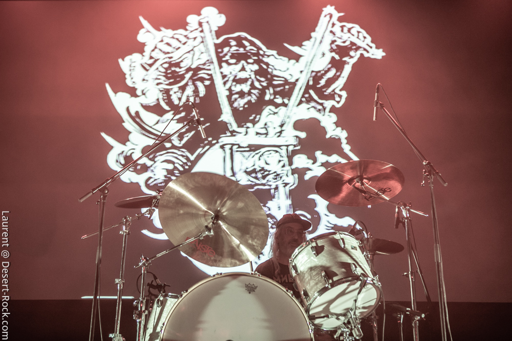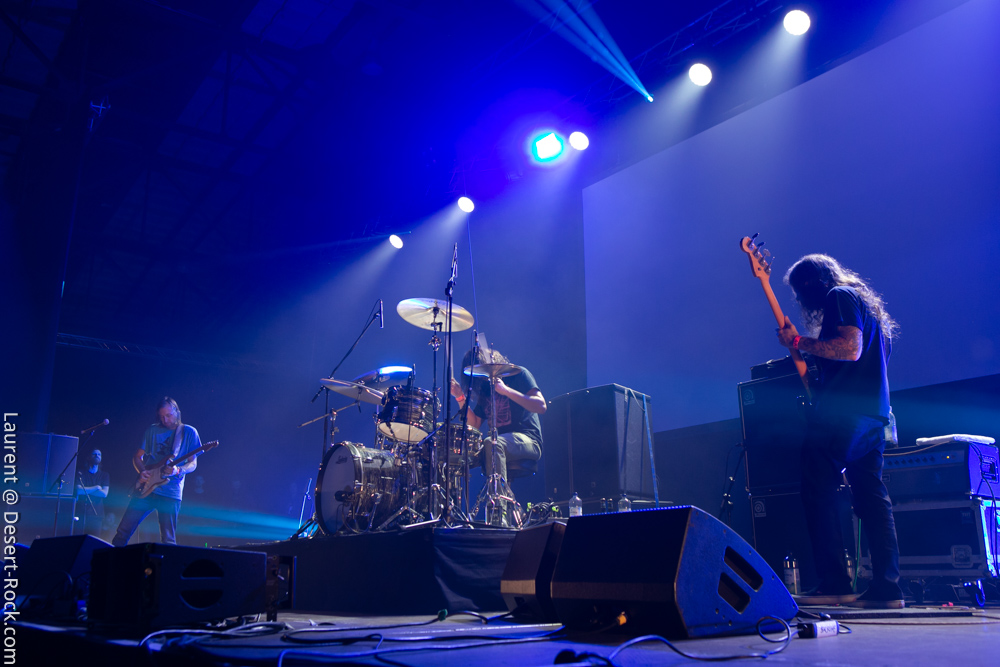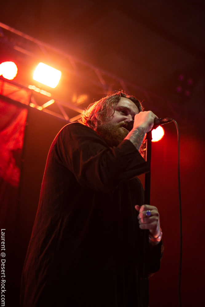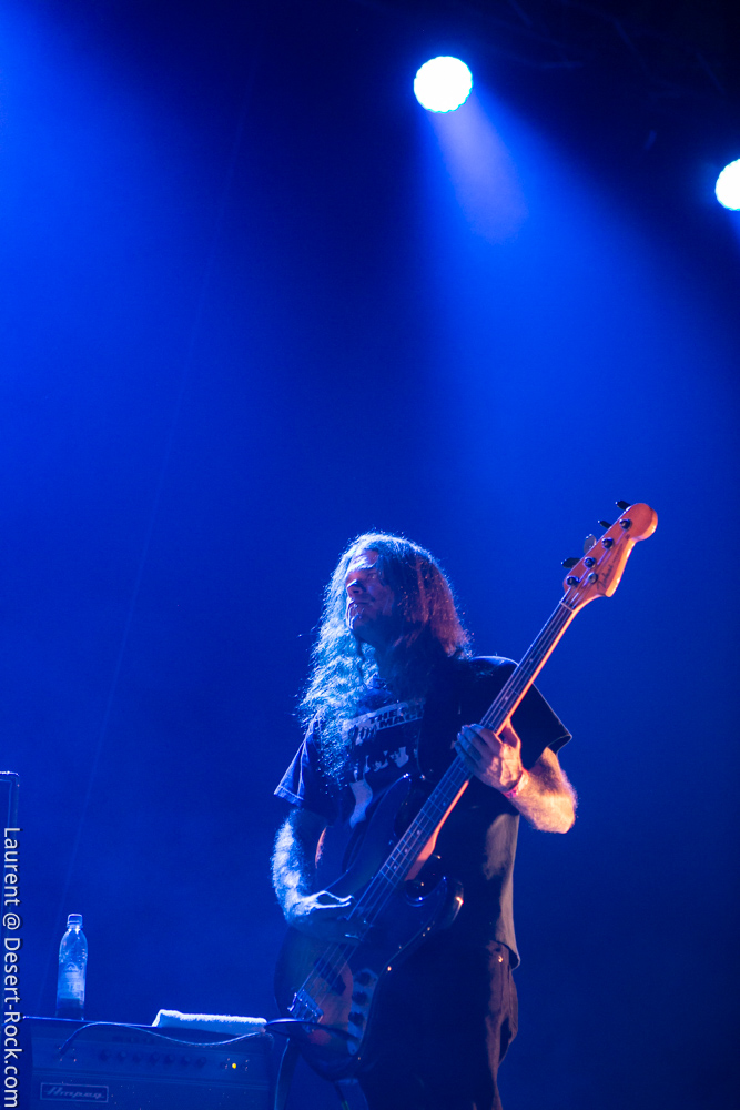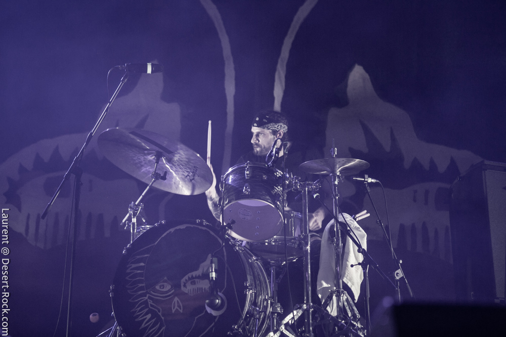 La formation allemande, que nous aurons bientôt vue dans toutes les manifestations dédiées à la gloire des Dieux du Stoner, prendra place avec une dizaine de minutes de retard pour clôturer une première journée déjà mémorable (une de celles dont on se souviendra). Pas franchement époustouflants visuellement, ces allemands ont pour eux une maîtrise énorme de leur art qui confine à la perfection ; en bref c’est le batteur perpendiculaire au public à côté du clavier et les deux autres mecs sur les bords qui ont balancé leurs titres sans investir la scène de manière outrancière. On a toujours un peu l’impression qu’on va s’emmerder quand ils débarquent sur scène (après un souci lors du soundcheck) avec leurs dégaines de profs de musique et on a toujours le sourire aux lèvres quand on ressort d’un de leurs shows. C’est un peu ça la recette magique des munichois au final : une interprétation généreuse et hautement maîtrisée qui finit par nous habiter quand bien même sans les animations en fond de scène on aurait pu se faire carrément chier, vue l’habitation scénique dont ces musiciens font preuve lors de leurs représentations. Le public a goûté à ce show voluptueux qui l’emmena au milieu de la nuit (avec du temps bonus pour un rappel mémorable).