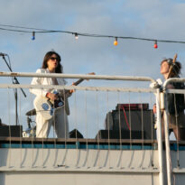 La fraîche triplette féminine originaire d’Allemagne a miraculeusement fait fuir les nuages avec son style débridé. Ces – très – charmantes dames ont pratiqué leur punk vintage lorgnant sur le garage avec fureur et haute maîtrise (elles impressionnaient aussi quelques quidams pour des raisons étrangère à leur son). Pas fins connaisseurs de leur art (elles comptent seulement une production brève au compteur), nous eûmes plaisir à les écouter, malheureusement pas bien longtemps vus nos impératifs de vrais professionnels qui nous poussaient aussi à assister au show qu’Earthless déployait en Main Stage (ça ne s’improvise pas ça ma p’tite dame !). Mais un large public continuera à siroter leurs binouzes dans la bonne ambiance à l’extérieur en prêtant une oreille plus au moins attentive au son plutôt bon, mais pas franchement orienté stoner, déployé sur le bateau.