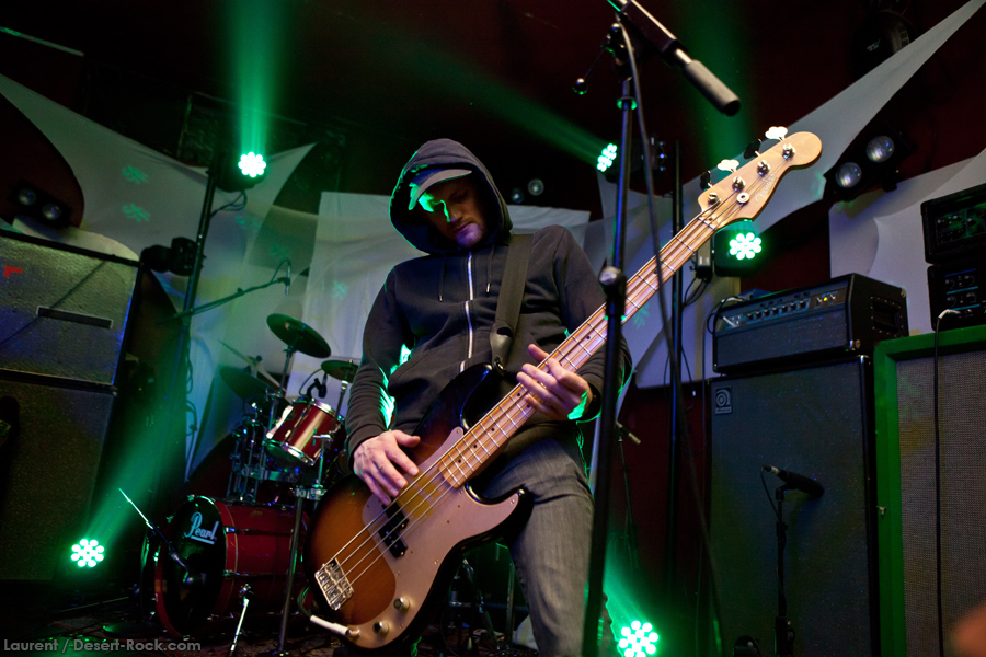 On change de salle, mais pas carrément de style et encore moins d’origine puisque c’est au tour de Heat de faire monter la température. On remarque quelques personnages connus de nos services parmi le personnel de la formation du cru puisque certains ont officié par le passé au sein de The Hara-Kee-Rees, Grandloom ou Samsara Blues Experiment. On tape aussi rapidement du pied à l’écoute de ce son vintage très hard rock dans son rendu final. Le bassiste, que nous avions déjà remarqué dans les temps jadis alors qu’il officiait pour d’autres, se déchaîne sur scène et attire naturellement tous les regards alors que ses coéquipiers, plus concentrés sur leurs instruments, demeurent assez statistiques durant la prestation. Qu’importe la raideur de certains, le public est réceptif (tout comme nous) et on s’en paie une belle tranche avec ces Allemands au registre aussi old school que leur matos (le jack torsadé ça la fait quand-même et heureusement que l’agité à la quatre-cordes n’en était pas muni vu ses aller-retour entre le centre de la scène et les retours servant de marchepieds).