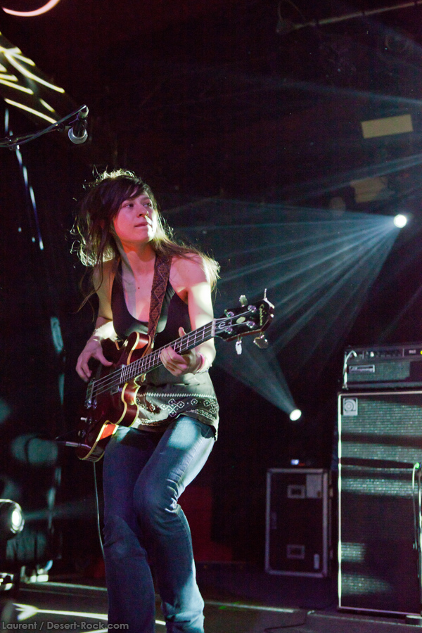 L’affiche de la journée se caractérise notamment par une grosse proportion de groupes à fort potentiel de poutrage doom, et la première salve doit être donnée par Acid King. Le trio nord-californien s’installe nonchalamment sur scène au son du fort bien nommé « Intro » issu de sa nouvelle galette. Une nouvelle galette que l’on sait heureusement de grande qualité, étant donné que la presque entièreté de leur set du jour est composée de titres dudit album ! Belle confiance en soi de la part du groupe de l’amazone Lori, qui décide courageusement de confronter ses nouvelles compos à un public qui, pour sa majorité, n’a pas encore pris connaissance de cette nouvel œuvre. Pari réussi en tout cas, au vu du coefficient ondulatoire appliqué aux cervicales d’un public dense, bien massé devant la main stage. Pas de grande surprise en terme de prestation scénique : Lori à gauche de la scène capte tous les regards, jouant sur son charisme nonchalant et sur son insolent détachement de tout ce qui pourrait s’apparenter à une quelconque sorte de démonstration guitaristique. Enchaînant les riffs à quatre notes joués à deux à l’heure, la grande dame du doom privilégie encore et toujours la mélodie, la lourdeur du riff et l’ambiance pesante des morceaux, sur lesquels elle dépose ses lignes vocales délicieusement nasillardes… De fait, les incontournables « 2 Wheel Nation » et « Electric Machine », les deux seuls titres joués ce soir qui ne figurent pas sur le nouvel album, s’incorporent parfaitement au milieu des nouvelles compos. Même si la communication avec le public est, comme toujours, quasi absente, le trip fut parfait et on aurait bien du mal à trouver motif à insatisfaction. Acid King fut à la hauteur ce soir, et même si en façade le groupe paraît imperturbable, en sortant de scène, ils étaient juste extatiques de l’accueil qui leur a été réservé par un public de connaisseurs…