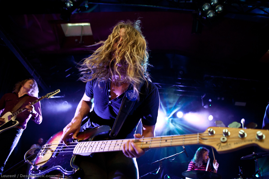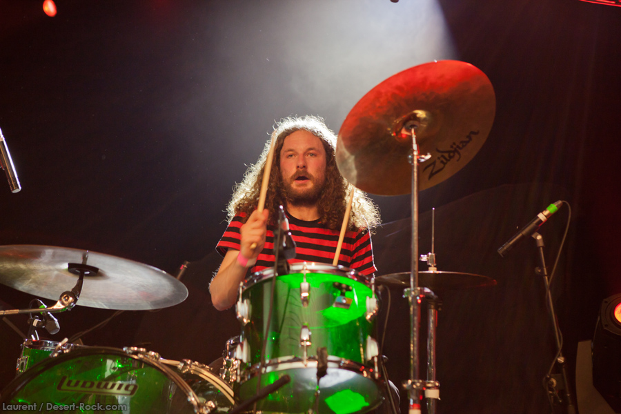 On change de laiterie, de genre et d’ambiance avec les brutes norvégiennes. Les types sont bien en place et leur chanteur est un entertainer de première. Sur le plan musical on navigue dans des eaux pas très éloignées de Kadavar, mais question déconne on est pas très éloigné de la vague punk à roulette et ça marche à fond : le public adhère à la démarche (et nous avec) de ces Scandinaves dispersés sur plusieurs pays. Le placement du quintet sur l’affiche n’est pas carrément le fruit du hasard et c’est rapidement carton plein avec la saturation des lieux qui va avec. Les titres se succèdent en variant pas mal le tempo, du rock planant aux plans plus catchy et tous les registres sont couverts avec une putain de maîtrise. Ça déconne sévère entre les titres, ça fait des grimaces, ça mène des conciliabules au sujet des titres à envoyer, ça envoie d’énormes soli tandis que le clown de la bande sirote sa binouze accoudé à la sono et ça finit par demander au public s’il faut encore foutre du son pendant une, deux ou dix minutes. Bref c’est que du bonheur durant un set de 45 minutes en forme de montagnes russes passant du rapide « Personnal Riot » à l’apaisé « Golden Town » sans jamais nous lasser, même en achevant la démonstration par un enchaînement de soli batterie et guitare.