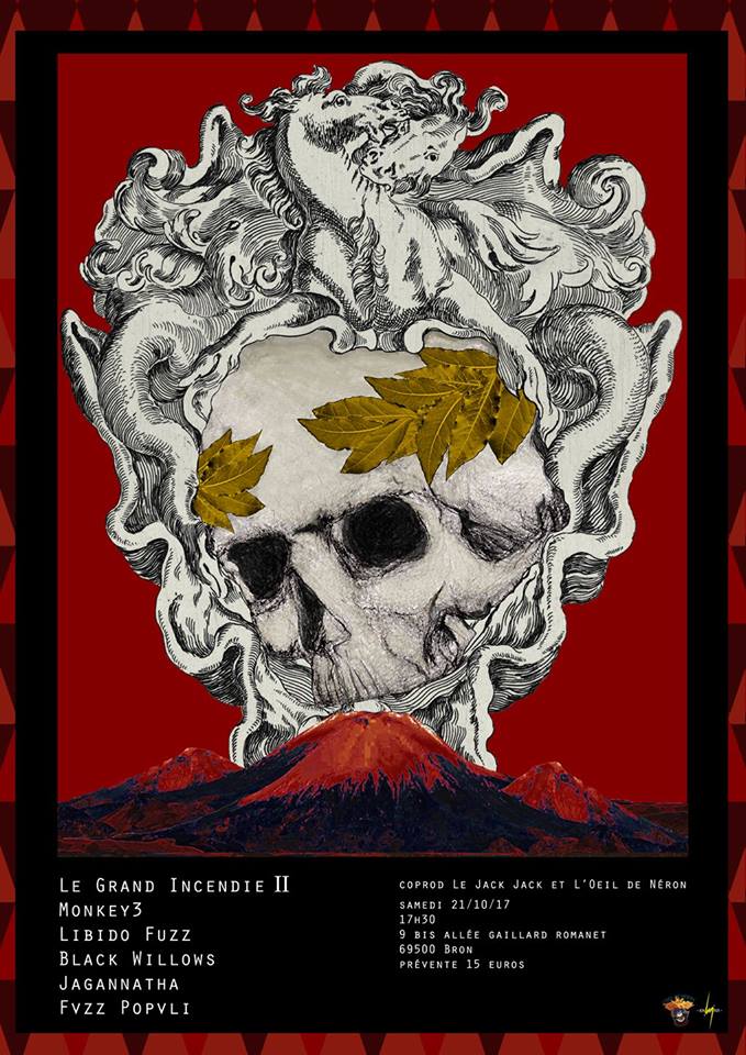 En ce qui concerne les choses sérieuses, le moment est venu, pour le public, de trépigner devant les portes pour se manger une bonne tranche de Ufomammut. En raison de quelques problèmes techniques, l’organisation fait poireauter un moment les excités avant de leur autoriser l’accès à la grande salle au bout de laquelle se trouve (devinez quoi ?) la grande scène (bravo à ceux qui avaient deviné la chose, Julien L’Herpès est fier de vous). Les mines sont un peu dépitées dans le camp italien en raison d’un souci de beamer. Nous aurons finalement droit à un show des Transalpins sans la dimension visuelle qui fait partie intégrante de l’art qu’ils pratiquent avec maestria. En dépit de cette configuration inhabituelle pour ce groupe, nous passons un moment intense avec un trio gonflé à bloc qui nous assène les plans déments dont ils ont le secret. Côté visuel, les vidéos en moins, c’est rouge (tout comme d’hab’ en fait) et les compères couvrent bien le périmètre de la scène sans s’adonner au gimmicks glam que nous avons pu remarquer plus tôt dans la journée, mais en assurant un spectacle de belle facture. Leur charisme y est certes pour beaucoup. A l’image de l’énorme « Plouton », extrait du petit dernier « Ecate », le style déployé est ultra technique sans taper dans la démonstration d’une académie de musique et sacrément burné sans pour autant aller rejoindre les bourrins qui s’en iront investir le Foyer en fin de journée. Malgré le retard accumulé en début de slot, le trio termine en avance et quitte la scène avant de revenir pour notre plus grand bonheur avec une nouvelle ogive maison qui les amènera donc à exploser leur créneau horaire. Rien à foutre : le groupe est satisfait et le public encore plus. Une réussite de plus à mettre à l’actif de ces vétérans européens.