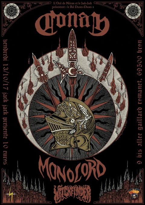Après cette balade sur un sentier de coolitude extrême, le moment est arrivé de nous payer le rouleau-compresseur Conan en frontal afin qu’il nous déboule dessus et nous aplatisse de son doom magistral. Le trio britannique fait dans l’impatient et décide d’embrayer 10 minutes avant l’heure – tardive – annoncée. D’abords dubitatifs, car craignant que le trio désire en finir vite avec ce set, nous sommes vite rassurés par ces vieux briscards des salles sombres qui nous livrent un concert dans la plus pure tradition Conan. Nous avons donc du mal à distinguer les deux équipiers en avant de scène et apercevons le rookie torse nu derrière sa batterie. Les éclairages (peut-on parler de lumières ?) sont minimalistes, super sombres et dans les tons bleutés le plus souvent : c’est donc glacial, mais le public, bien entassé dans le Foyer autour de la petite scène, sera à fond durant la totalité du set. Les deux encapuchonnés à casquettes se relayent aux hurlements (difficile de distinguer qui s’égosille tant leurs vocalises se ressemblent) pendant un set sombre et épais du meilleur tonneau dont un des points d’orgue sera l’ogive « Foehammer ». C’est devant des spectateurs désireux de se reprendre une branlée que les anglais tireront leur révérence en levant bien haut la Flying V (et la basse faut pas déconner) et en nous souhaitant un excellent week-end (la politesse british ça ne s’invente pas).