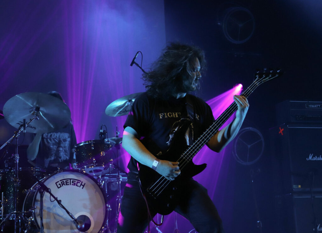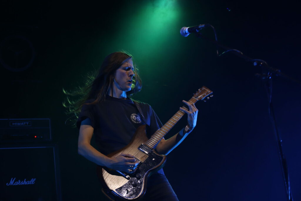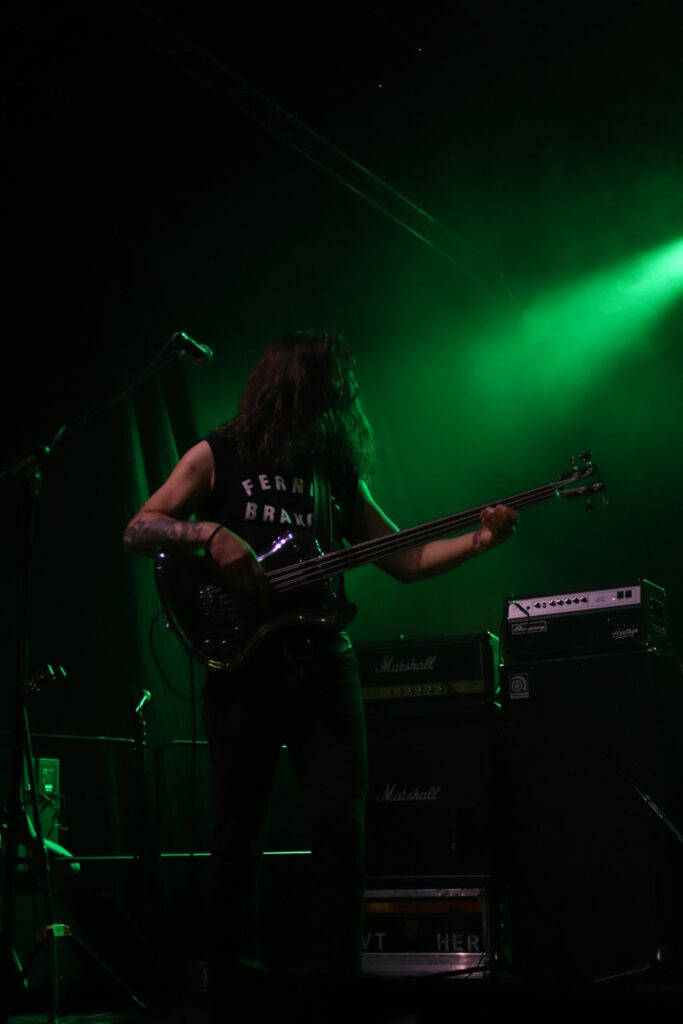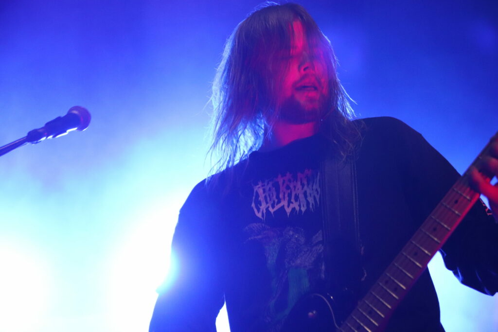 Post metal ou post hard core, en Norvège, le post on a tout à y gagner. Ce groupe qui branle gentiment du manche et s’essaye aux atmosphères mystiques et parfois étranges sur album file droit dans le jus de lardons lorsqu’il restitue ses compos. Sa musique affutée comme une tronçonneuse et lourde comme un semi remorque fleure bon la graisse et le riff agressif. Les amateurs de bagarre du fest sont tous là et ils valident la tartine de saindoux. La basse pourrait tout écraser mais avec une guitare accordée aussi bas le jeu des deux instruments rivalise de vibrations. Le chant hurlé perce le rideau de gras pour venir électriser la foule qui ressortira du pit abasourdie mais ravie d’avoir pu en croquer sévère.