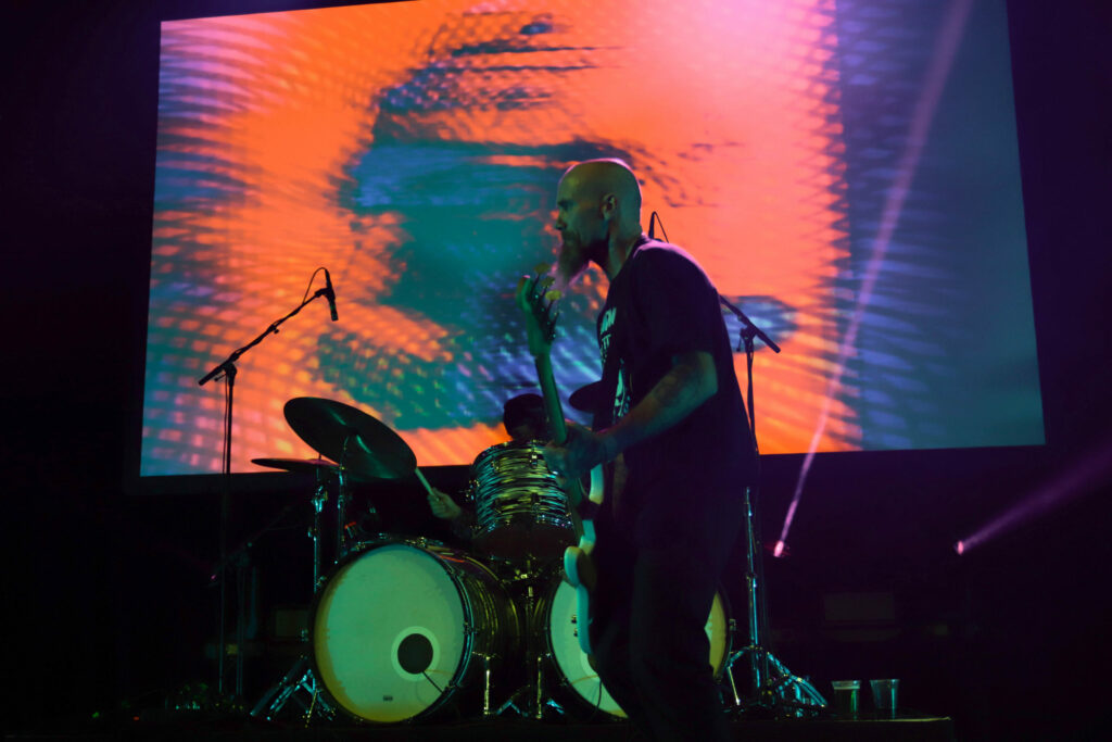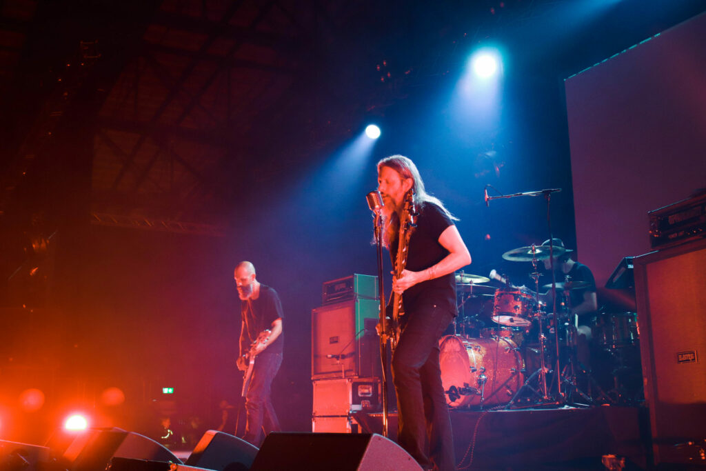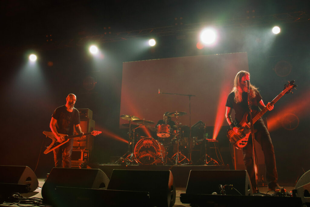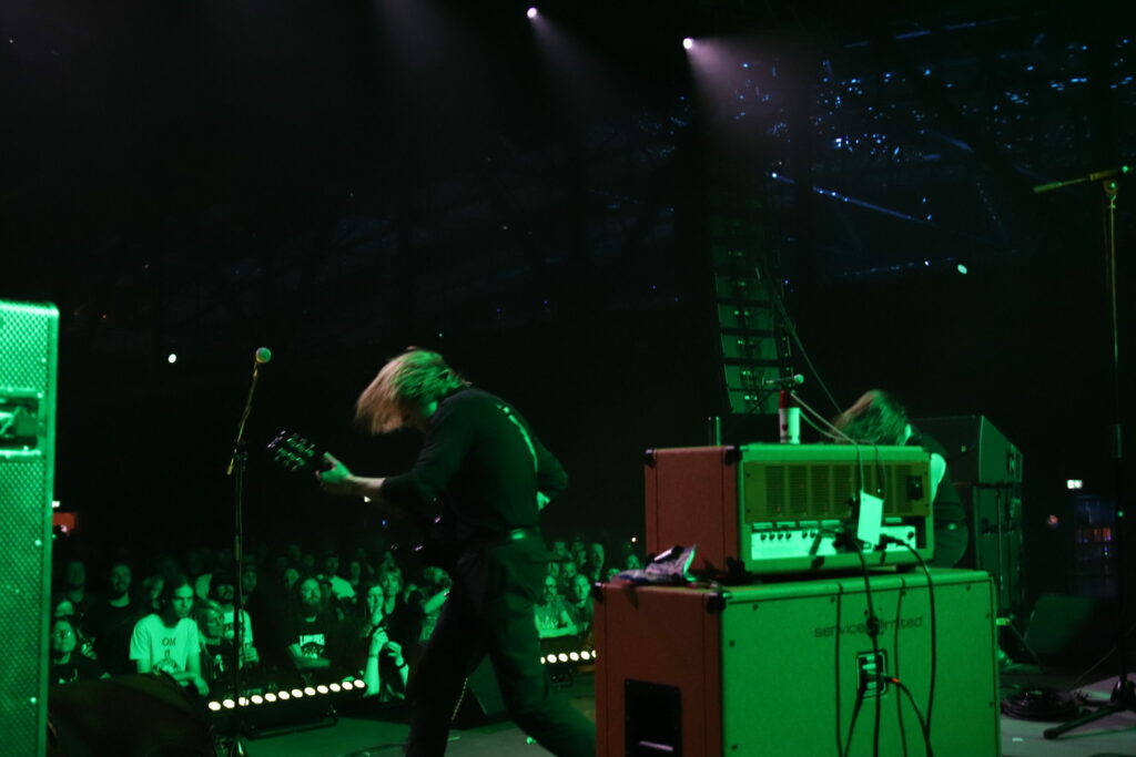 Le groupe qui se définit comme power trio et que certains reconnaissent comme inventeur du sludge psychédélique entre en scène selon sa tradition, sous des lumières rouges qui raviront les plus esthètes d’entre nous et qui s’étaient déjà gobergés à la simple vue de leurs amplis verts, quitte à rater la fin du set précédent. Vu que le public restant vient de prendre Pigsx7 dans les chicots, le set ultra lourd du mastodonte du jour ne laissera qu’une place bien nettoyée où le public ravi semble totalement hébété. Il faut dire que c’est a ce moment là que les effets de spatialisation prennent tout leur sens, lorsque l’on frôle le drone avec des notes tenues longtemps et envoyée loin en orbite. Encore une belle volée de petit bois pour ce dernier jour de festoche!