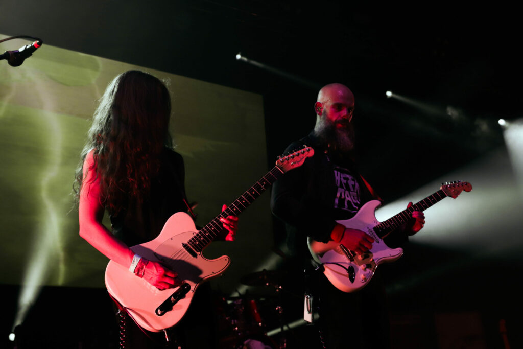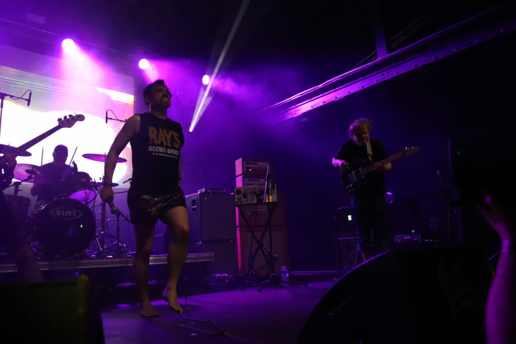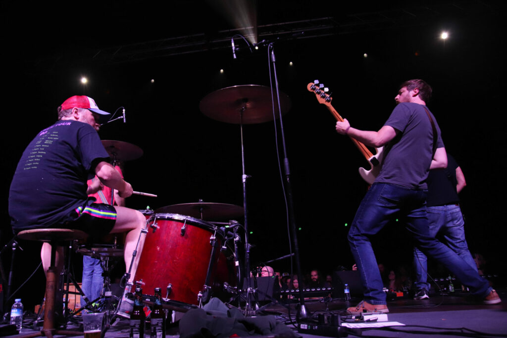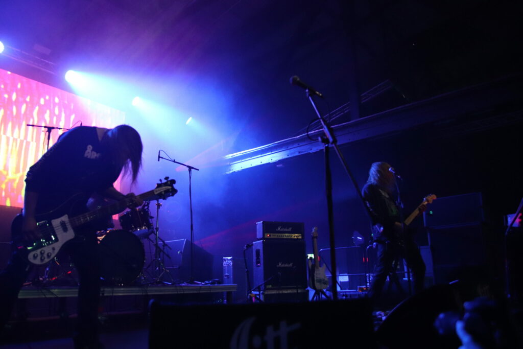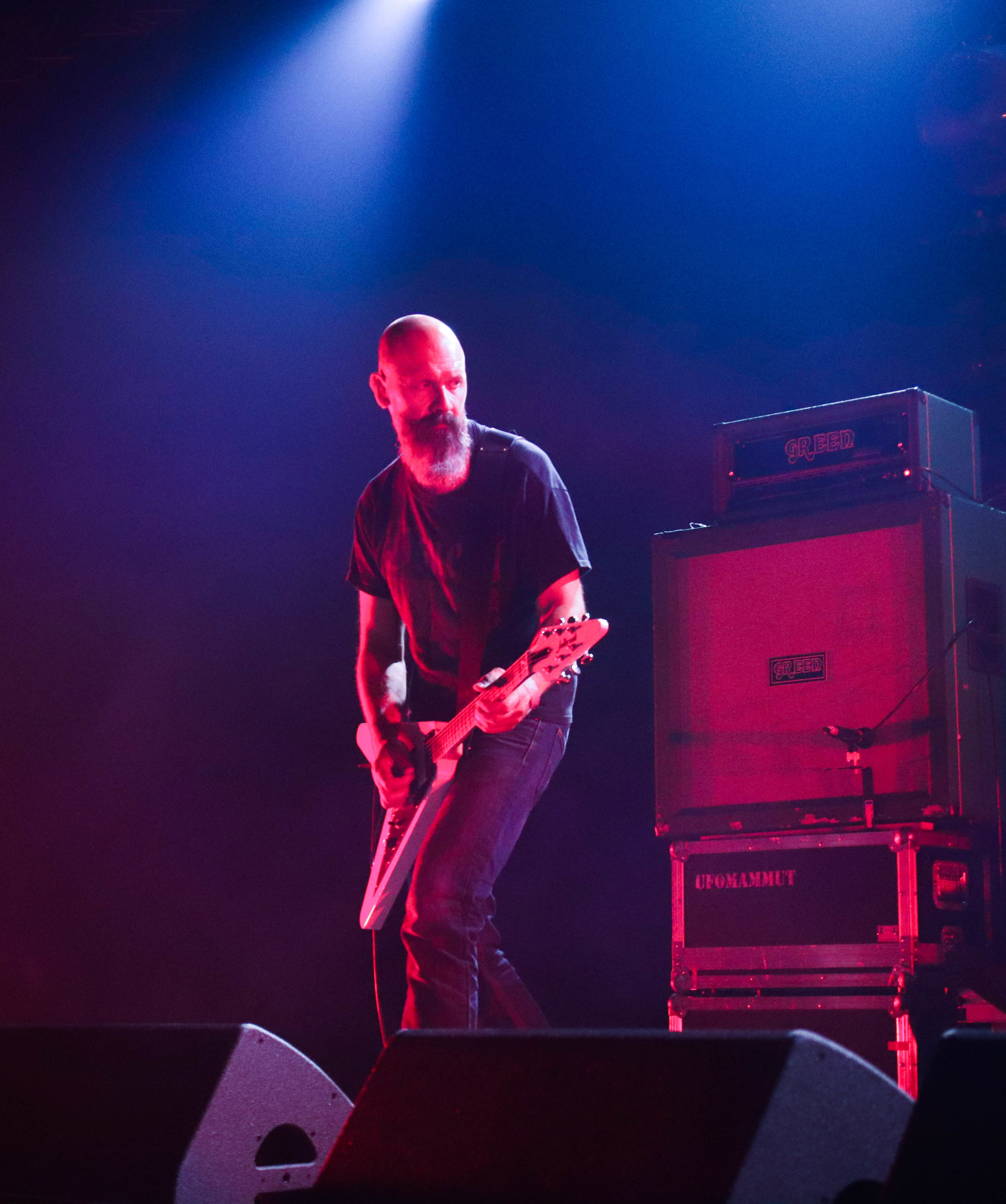 Le groupe qui se définit comme power trio et que certains reconnaissent comme inventeur du sludge psychédélique entre en scène selon sa tradition, sous des lumières rouges qui raviront les plus esthètes d’entre nous et qui s’étaient déjà gobergés à la simple vue de leurs amplis verts, quitte à rater la fin du set précédent. Vu que le public restant vient de prendre Pigsx7 dans les chicots, le set ultra lourd du mastodonte du jour ne laissera qu’une place bien nettoyée où le public ravi semble totalement hébété. Il faut dire que c’est a ce moment là que les effets de spatialisation prennent tout leur sens, lorsque l’on frôle le drone avec des notes tenues longtemps et envoyée loin en orbite. Encore une belle volée de petit bois pour ce dernier jour de festoche!