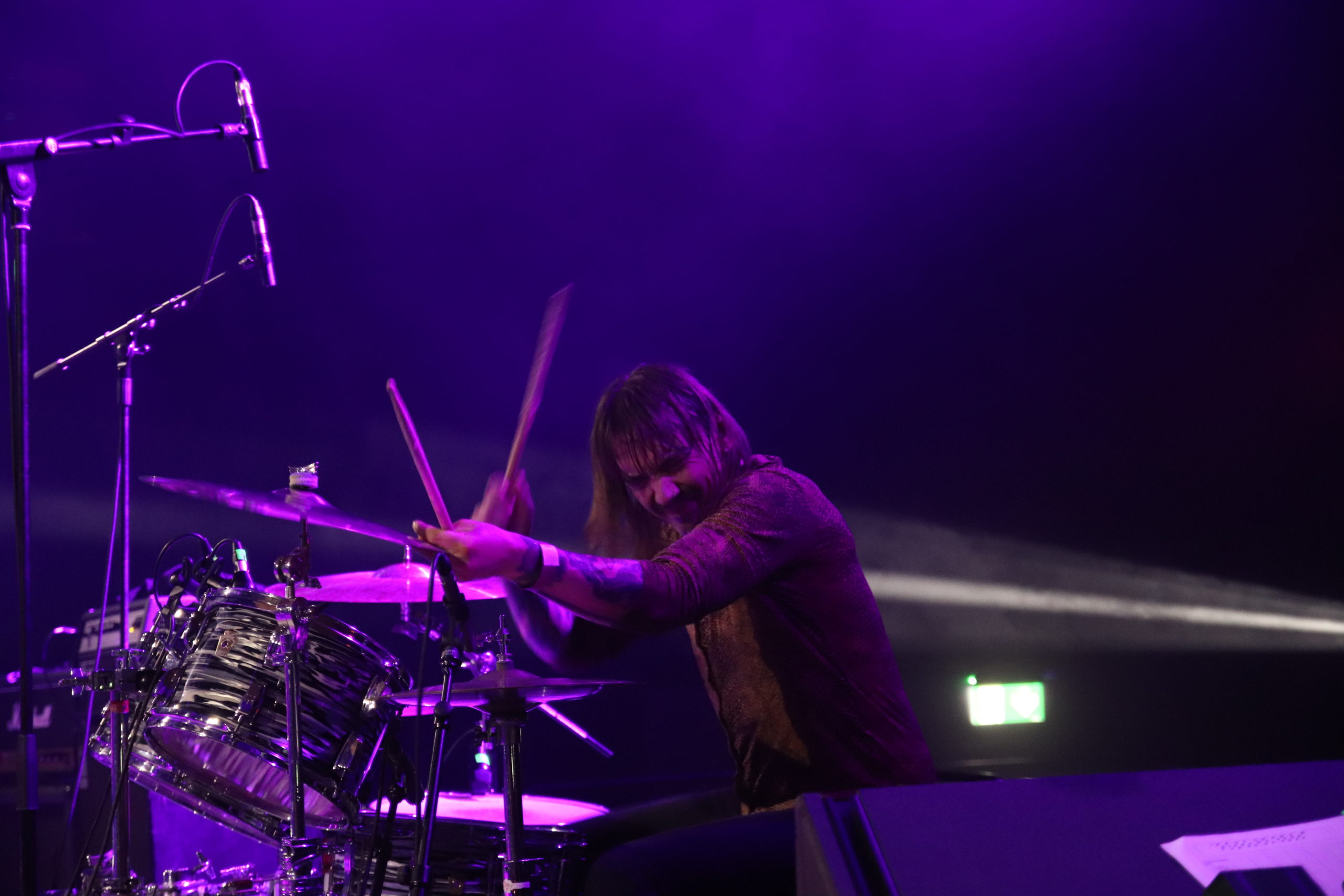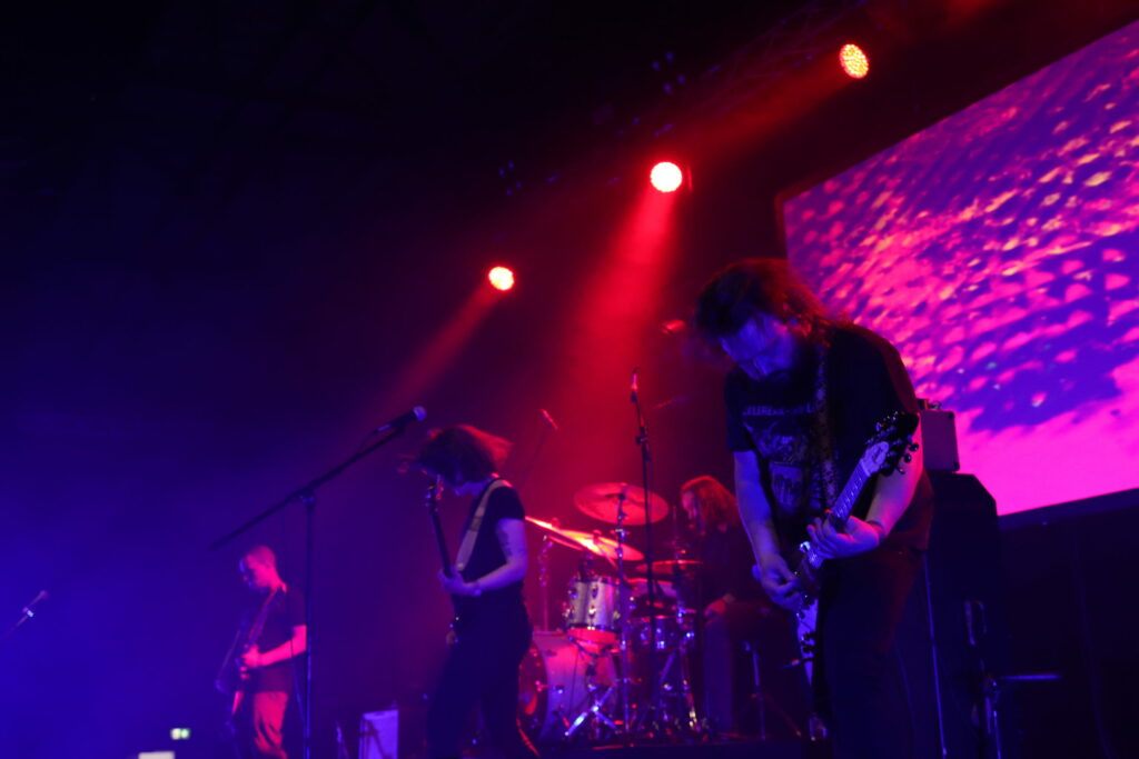 Depuis le temps que j’attendais de voir les as du prog allemand… Me voilà servi, mais le set ne sera-t-il pas fadasse après les deux pavés velus que l’on vient de se prendre ? Et bien que nenni, c’est beau et ça galvanise. Le monde de Rotor est à la foi lourd et aérien. Le public se meut au rythme de la batterie minimaliste et des effets guitaristiques du groupe. On trouve ici des sons venus de la country et des basses continues du post-metal. A cela s’ajoute le jeu syncopé du batteur, c’est un régal de les voir jouer ensemble. Pour ceux qui ont pu graviter autour d’eux, ils ont sans doute ressenti cette impression d’assister à un set en studio. Les quatre musiciens faisant parfois fi du public pour se tourner uniquement les uns vers les autres. Ne nous mentons pas, c’était simplement émouvant, un des meilleurs sets du week-end selon moi.