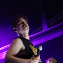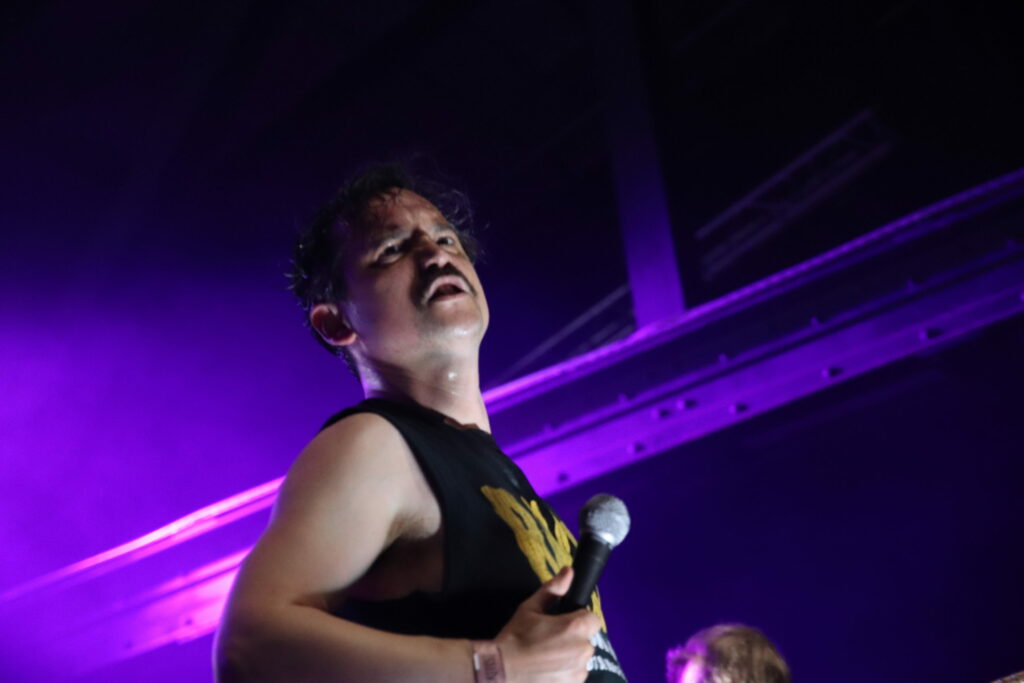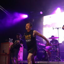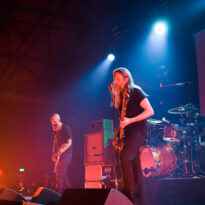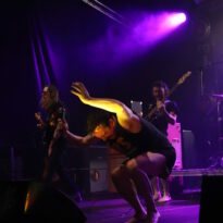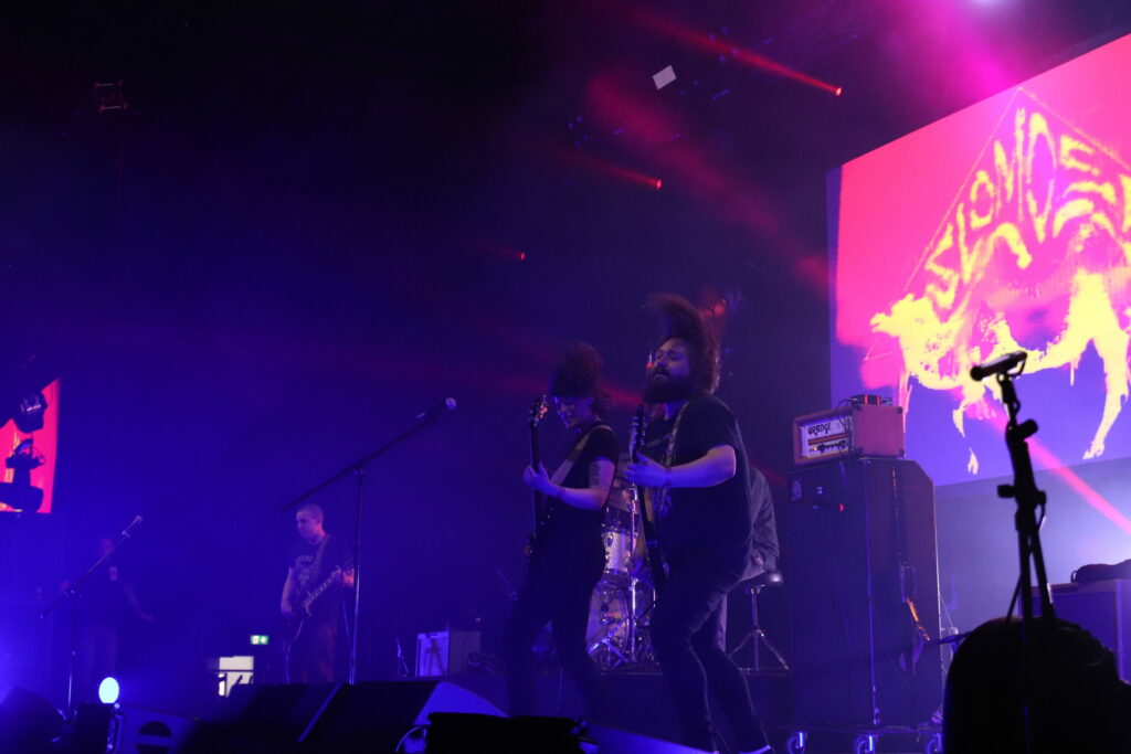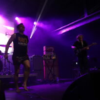 Ces petits cochons là n’ont rien à faire chez Walt Disney, Pigsx7 sont amateurs de sale et de lourd, les gravos de Newcastle ne prennent pas le parti de la finesse. Ils roulent le public dans la fange noisey stoner doom la plus crasse. Le chanteur encore plus que ses acolytes est déchainé. A peine monté sur scène il commence sa gigue façon baston de pit pour coreux sous speed. Le public se régale. On détecte ça et là des atmosphères qui voudraient être légères mais immédiatement englouties par la folie massive du set. La boue coule des esgourdes du public qui ouvre grand le bec pour recevoir les sonorités folles des cochonnets. Rah quelle claque!