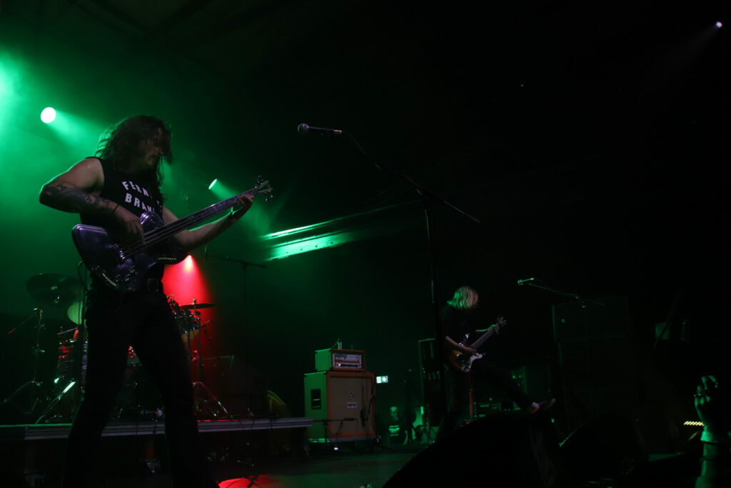 Ha mes bons amis, qu’y a t-il de mieux que de se quitter sur un sourire ? Car oui il est déjà l’heure d’en finir avec cette édition 2022. Mais avant toute chose, parlons de Baroness qui a la charge de fermer la marche. Le groupe a moult supporters dans la salle qui a fini par se remplir totalement. Les américains n’auront de cesse durant tout le set de le rappeler, la période COVID à été une avanie, le public leur a manqué, il sont ravis d’être parmi nous ce soir. Cela tombe bien car nous aussi, tant de par la réputation du groupe que pour ce qui se déroule devant nous. Baroness fait le dancing, il y a du heavy et des kicks de batteries sorties de discothèques dans leur set, voilà de quoi danser et se mettre en joie. Les fans se font entendre dans la foule et il y a fort à parier qu’il a parmi eux beaucoup d’allemands. Après tout l’Allemagne a donné naissance à Helloween et Blind Gardian ainsi qu’a Scorpions, les hymnes grandiloquents ça les connait et c’est justement ce que Baroness met dans sa musique, de la grandiloquence en plus du festif et du quasi pop quand il s’agit de « Tourniquet ». A entendre s’égrainer les must, « Take My Bones Away », « Horse Called Golgotha » et autres « If I Have To Wake Up » un sourire béat illumine la face des amateurs du groupe et c’est tout à fait cela que l’on souhaitait pour ce Desertfest qui se conclut sur « Isak ».