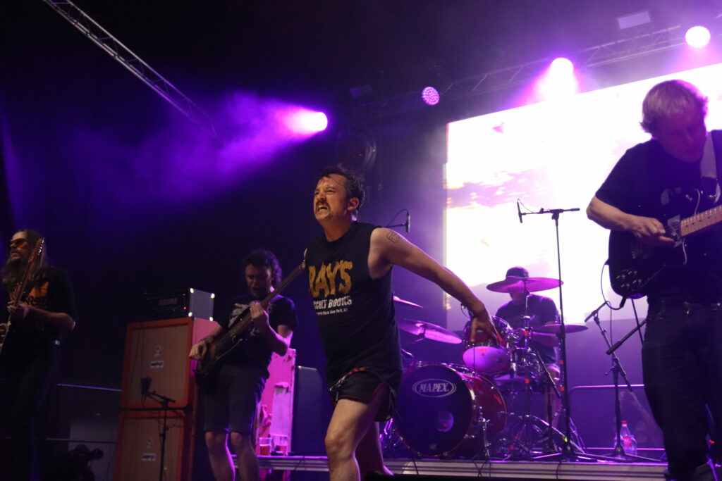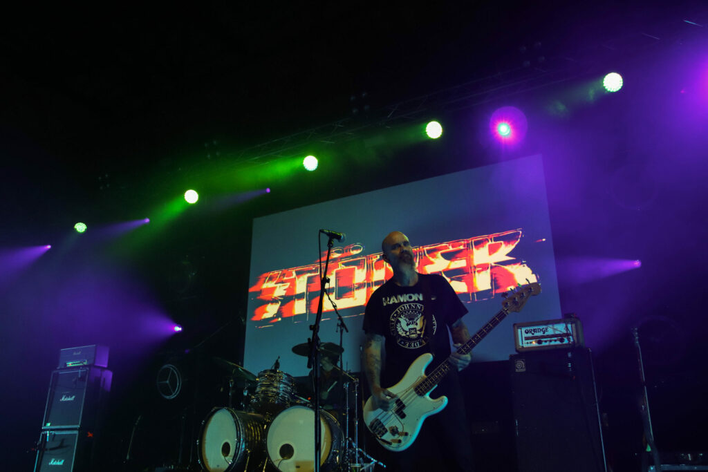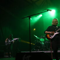 Deux idoles du stoner rock et un batteur compagnon de route de longue date, voilà de quoi échauffer la salle. Certes, mais est-ce suffisant d’être les idoles du cool et de donner tout ce qui reste dans la bataille ? Non ! Le set de cet après midi le prouve. La déficience du mix (une fois de plus) décourage même certains des plus fanatiques. Un set énergique, une attitude hautement rock’n’roll, évidemment on y a eu le droit, mais comment apprécier ce que l’on n’entend pas ? Fort heureusement des corrections interviennent en cours de set, remettant le train sur les rails ou sur le nuage d’herbe à chat, c’est selon. La dernière plaque de Stöner est a l’honneur et malgré cela ce n’est pas « Strawberry Creek » malgré son cool qui va emporter tous les suffrages, vous ne vous en doutiez pas ? Bien évidement, ce sont « Green Machine » et « Gardenia » qui renversent la salle, Kyuss revival !
