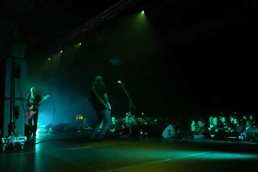 On a pu croiser dans la foule ici et là les gars de Elder depuis le début du festival, normal ils sont à domicile. Autant dire qu’ils étaient chauds pour venir et ce n’était pas dû qu’à leur devoir de prestation scénique. Ils attaquent très fort avec une version de « Compendium » sans compromis. A en voir la salle noire de monde il n y a pas beaucoup de festivaliers qui auraient accepté de manquer ça. Il semble que ce soit sur ce set que la sono se cale le mieux, le son revient en boucle dans la salle. Tout n’est qu’écho et cela sied merveilleusement bien aux mélodies d’ »In Procession ». J’admets que la voix de Di Salvo me fait décrocher du groupe, en particulier sur un titre comme « Blind », mais puisque le set dure 1h30 comme pour tous les headliners, ne soyons pas bégueules et restons jusqu’au bout. Et il aurait été dommage de se priver de « Legend » et « Halcyon » dernier titre qui fait un tabac en clôture de set, il n’aurait pas pu en être autrement.