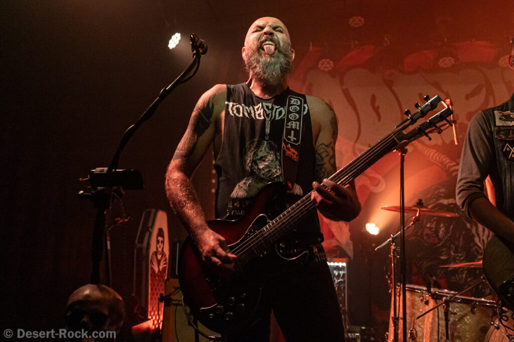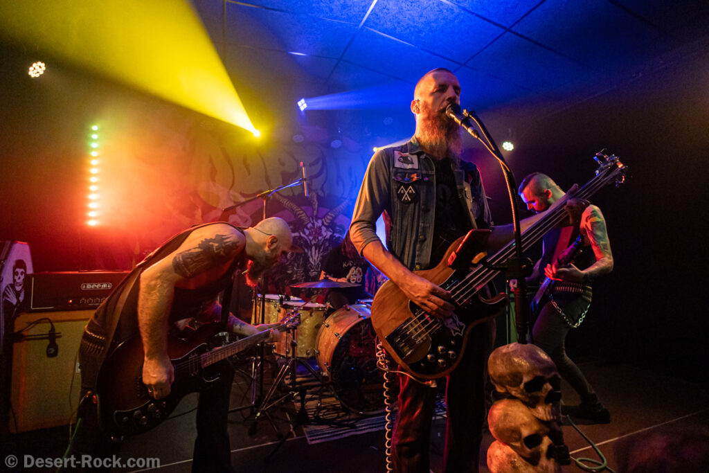 Un set précis et sans temps mort qui file à une vitesse folle, notamment grâce à des titres coups de poings qui viennent parfois entrelarder la setlist, à l’image du très Motorhead-esque « Headless Decapitator ». A Pessac, face à la révolte du public hurlant son désespoir en fin de set, le groupe improvise un rappel (Miodek doit même rebrancher sa guitare qu’il avait trop hâtivement rangée) avec un solide « Preacher Electrick » qui finit de rassasier cette horde de morfales.