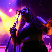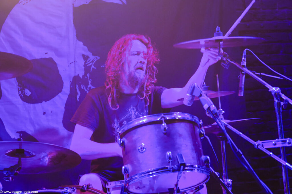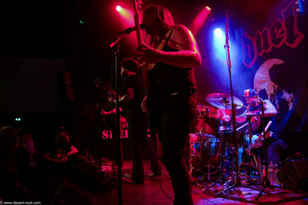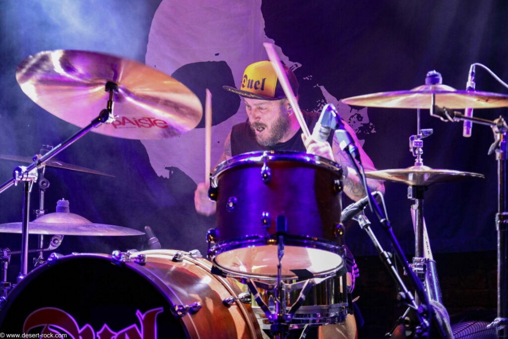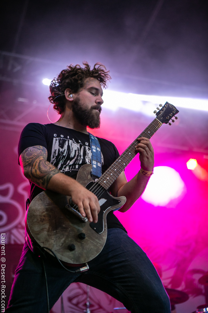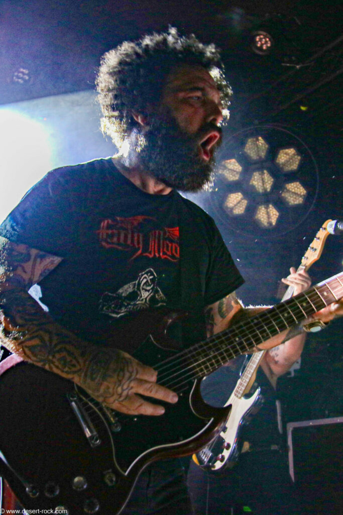 Behold The Monkey n’est pas venu faire dans la poterie, mais pour “casser des culs”, comme le dit si bien leur promo. Leur stoner navigue entre blues rock énervé et passages nettement plus rock. On capte au vol quelques plans et sonorités qui rappellent Red Fang, notamment grâce au duo basse/guitare qui envoie sévèrement les watts avec des compos bien enjaillantes. Au centre de ces messieurs qui grattent, slappent la fusion rock et jazz et matraquent les fûts, on ne peut échapper à l’énergie brute de la frontwoman, qui porte littéralement le groupe. Ce dernier n’oublie pas de jouer pied au plancher, sans jamais ralentir, même quand une balade s’amorce pour finir en cavalcade échevelée. Un set mené d’une main de maître, et clairement tourné vers le public.