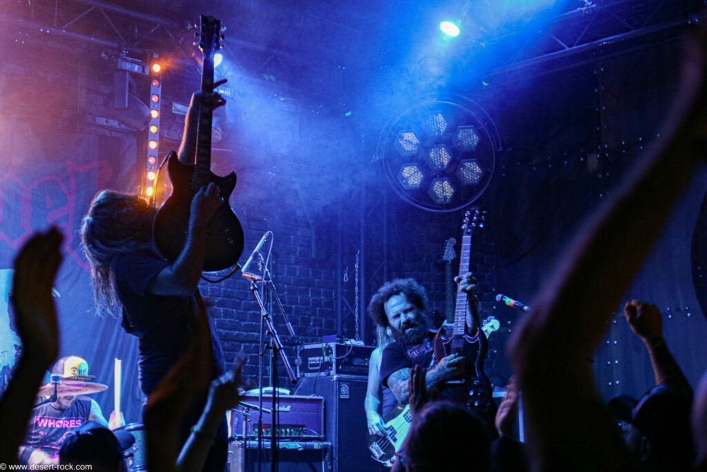 La setlist pioche dans toute la discographie du groupe, avec les récents « Pyro » ou « Chaos Reign », dont l’ADN oscille entre le Metallica des débuts et les hits de Slayer. Le groupe ne néglige pas ses années intermédiaires avec « Blood on the Claws » et un « Strike to Disappear » pour souffler un peu, avant que les mesures ne s’emballent à nouveau, permettant à Tom Frank d’user les talonnettes de ses santiags dans quelques pas dansants.