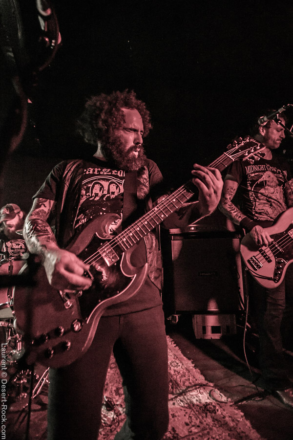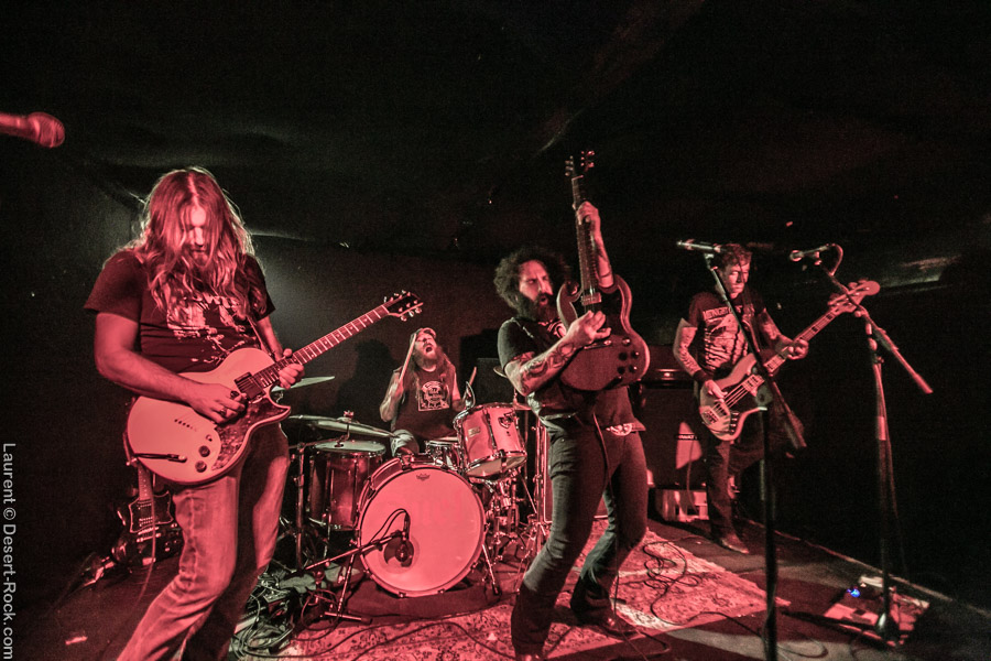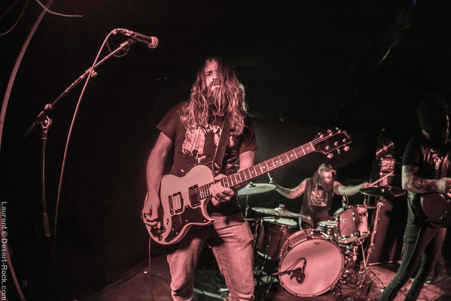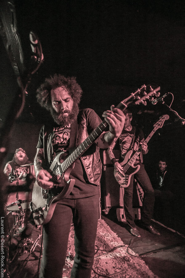 On se cale au 1er rang en attendant Duel, ne voulant rien manquer d’un set qui devrait s’annoncer glorieux. Après un demi soundcheck rapide, les quatre texans prennent la scène et rentrent dans le dur très vite avec une poignée d’extraits de leur premier album (dont un « Fell to the Earth » qui ne tardera pas à générer les premiers headbang au premier rang). Très vite la force du combo s’étale devant nos yeux ébahis : les compos du groupe ont beau être impeccables sur album, avec une prod vintage parfaite, ils prennent sur scène une dimension et une énergie d’une toute autre teneur. Et on est loin de la rhétorique : on parle vraiment d’une approche live qui décuple la puissance de chaque morceau. Les plans les plus mélodiques d’un « Witchbanger » ou d’un « Devil » sont retranscrits sur scène en un déluge de guitares agressives qui laisse pantois.