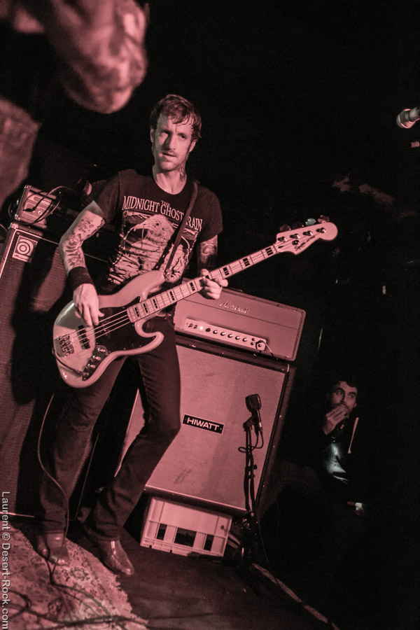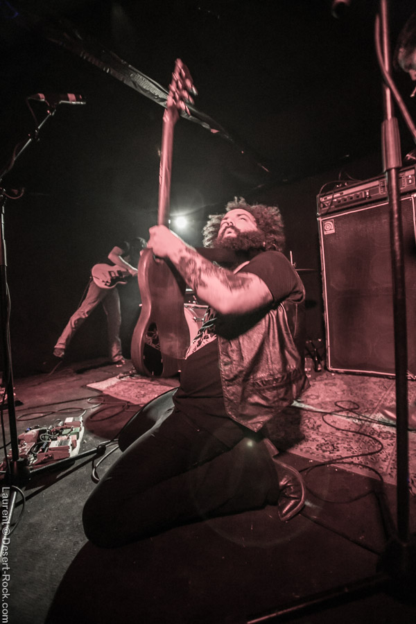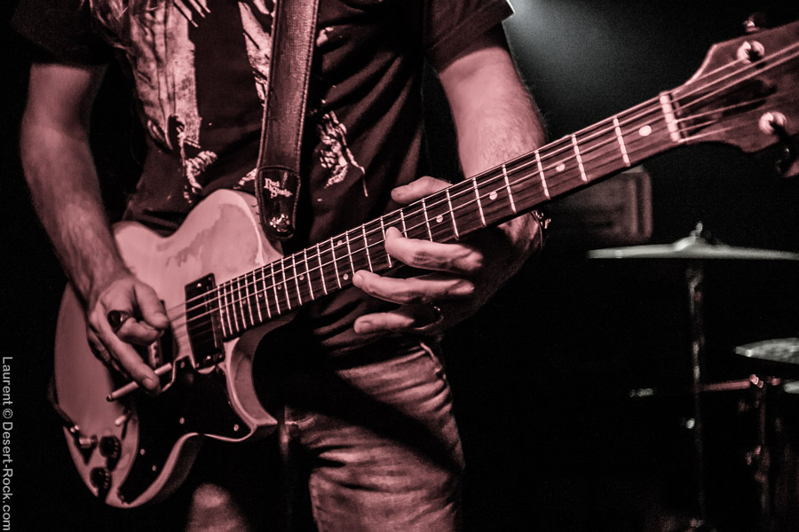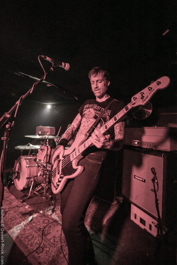 C’est carré, punchy, robuste, enjoué et puissant, frénétique et fortement groovy. On ne pouvait rêver meilleure soirée… avant de nous tourner vers l’arrière de la salle ! La salle s’est largement vidée depuis la première partie, alors qu’on ne pouvait décemment qu’imaginer l’inverse vu le niveau qui nous est présenté sur scène. Quelques dizaines de spectateurs seulement sont présents pour apprécier cet ouragan du meilleur rock texan du moment, servi pour eux sur un plateau. Cela signifie non seulement que trop peu de public est venu assister au concert (la place était au prix d’une pinte, pour un concert de cette trempe, sacrebleu !) mais surtout, pire, qu’une part du public (potes, famille, ou le groupe lui-même…) est venue juste pour la première partie sans même daigner découvrir la tête d’affiche. Une ouverture d’esprit trop souvent symptomatique du public bordelais… Une conclusion un peu douce-amère à un set qui aura néanmoins tenu plus que ses promesses, et un groupe qui aura délivré un set de grande classe quel que soit le remplissage de la salle. Tout à son honneur. Un grand groupe de scène, à plus d’un titre, donc.