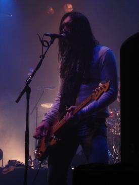 Ce qui frappe tout en tout premier lieu, lorsque le groupe investit la scène de l’Ancienne Belgique, c’est le peu d’espace occupé par le matériel. 3 amplis, le kit batterie, et la moitié de la scène complétement vide. On pourrait craindre que ce trop plein d’espace nuise à la prestation du groupe. Il n’en est rien car Jesse Hughes et son incontestable talent de showman font le reste, appuyé par un Dave Catching fidèle à lui-même, un Brian O’Connor et sa grande silhouette patibulaire et sombre, martelant sa basse tel un métronome, et un Gene Troutman absolument divin en ce mercredi frappant ses fûts comme si sa vie en dépendait.