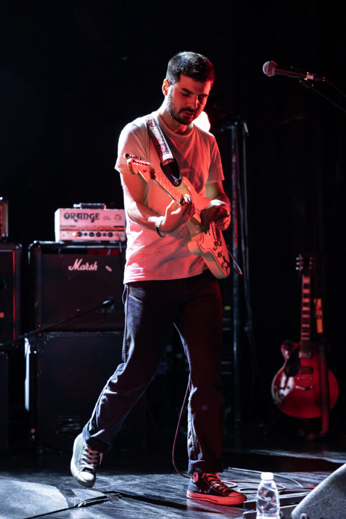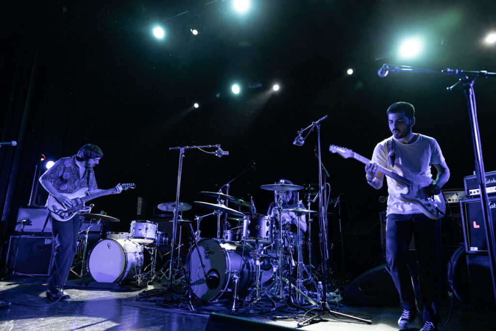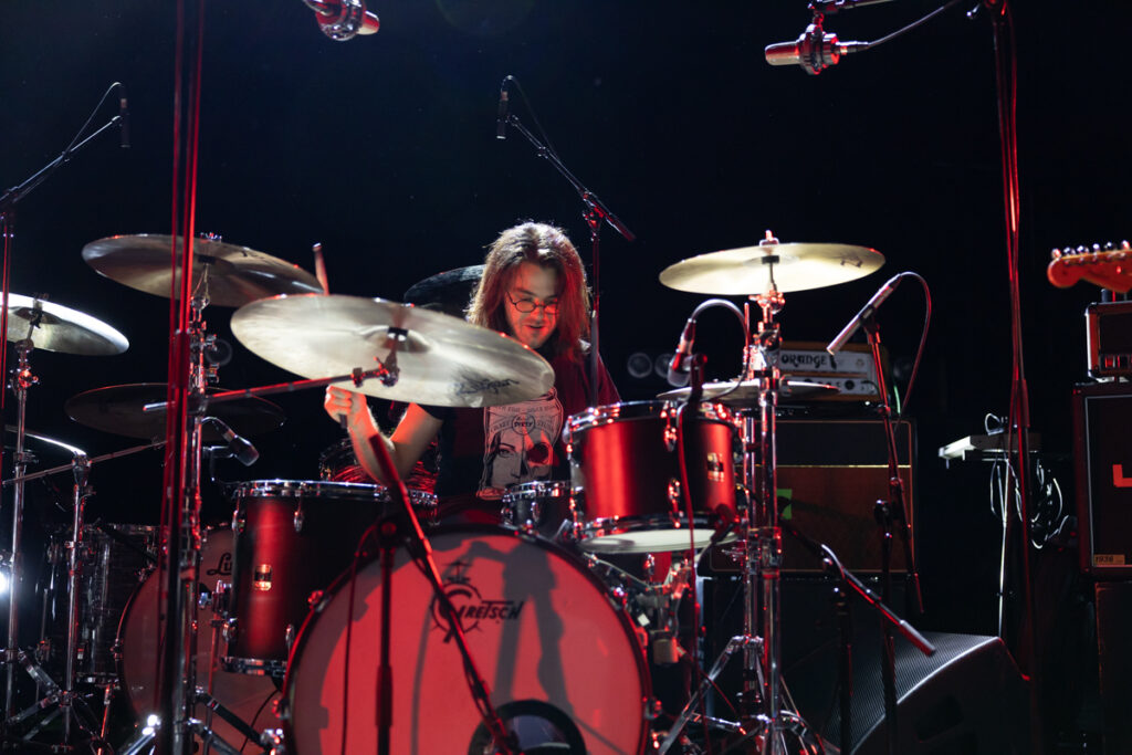 On rentre dans le toujours sympathique Krakatoa au son de Little Jimi, première partie locale ajoutée au déjà sémillant plateau proposé ce soir. Le trio bordelais a fait du chemin ces dernières années, et ils ne sont pas impressionnés sur cette grande scène. La salle est en configuration « réduite » (des rideaux sur le côté rapprochent le public de la scène, et le balcon est fermé) ce qui laisse quand même une belle capacité dispo, correctement remplie ce soir. Le set est solide, et les deux guitaristes (oui, pas de bassiste au sein du groupe), l’un droitier, l’autre gaucher, se partagent les plans de gratte avec énergie. Même si l’on est habitué avec le groupe, on regrette toujours qu’il n’y ait pas plus de « nerfs » dans certaines de leurs compos pour emballer un peu la machine, qui ronronne sur des titres mid-tempo heavy. Les goûts et les couleurs… Au bout d’une demi-heure, les titres les plus nerveux sont dégainés pour finir d’emballer le concert, à l’image de leur conclusion sur leur emblématique première chanson sortie sur disque, « Jimi » : le lancement est calme et posé, mais le poids du titre se découvre sur sa fin. Un bon set, bien exécuté, très pro… Avec un soupçon de folie et d’énergie supplémentaire, on serait aux anges !