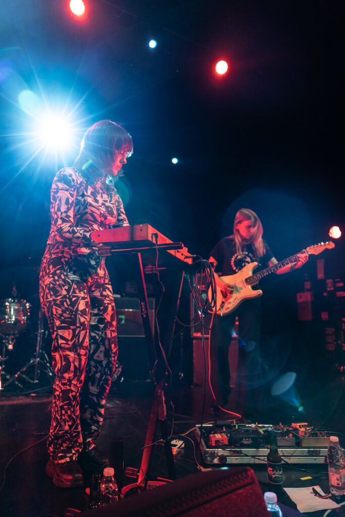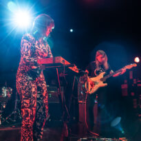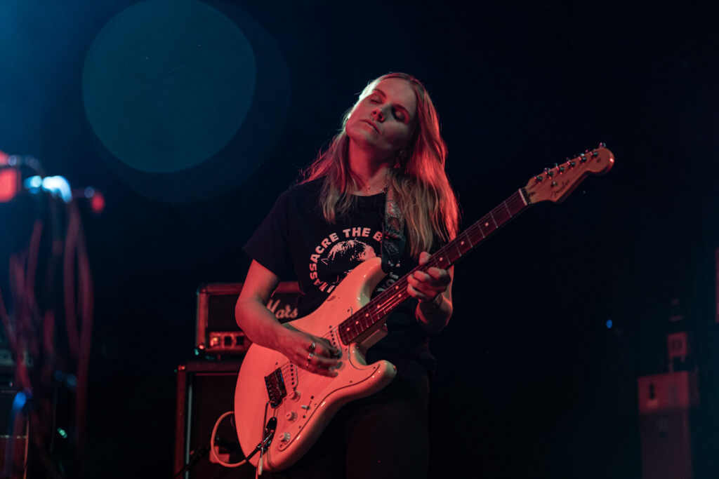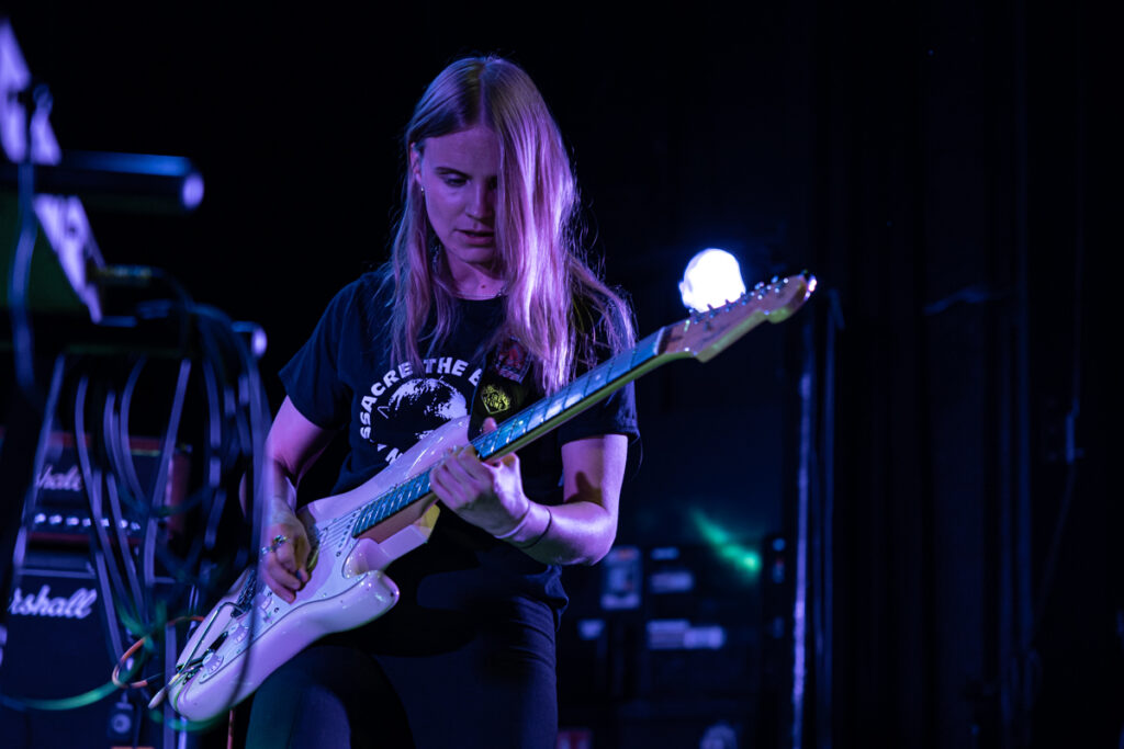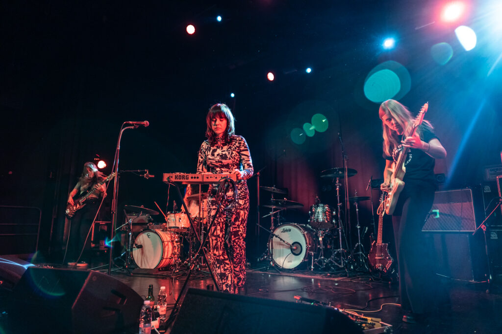 Les suédoises de Maidavale partagent la scène avec Earthless sur leur tournée européenne, une superbe opportunité, mais pas volée, au regard du nombre de concerts qu’elles ont dans les jambes et de leur réputation scénique. Elles le prouvent déjà avec une mise en place express, pour un lancement de set où quelques secondes suffisent pour être mis dans le bain avec le bien nommé « Trance », issu de leur dernier album (qui commence à dater…). A noter d’ailleurs que quasiment toute la set list s’appuie sur des chansons du dernier LP – signe qu’il est urgent de rentrer en studio mesdames ! Seul un titre ne nous rappelle pas de souvenir, peut-être un inédit ? En tout cas on ne compte pas sur leur frontwoman, Matilda, pour nous en dire plus, les échanges « vocaux » avec le public étant rares. Globalement, on y est habitués, les musiciennes sont concentrées sur leur jeu, avec assez peu d’interactions entre elles et avec le public. Mais l’effet est là : la rythmique portée par une grosse ligne de basse lancinante en fond et la frappe limite percus de Johanna Hansson (quel son de grosse caisse !) génèrent à elles seules une sorte de transe hypnotique. Sur cette base, Sofia Ström balance des lignes de guitare et Matilda s’empare aléatoirement d’une guitare, du micro, de maracas, tambourin, clavier… L’ensemble génère une sorte de trip de 45 minutes quasi-ininterrompu, aux frontières entre space rock, musiques tribales, et toutes les variantes du psych rock. Toujours très efficace auprès d’un public conquis, ondulant au rythme de la musique du premier rang jusqu’au fond de la salle.