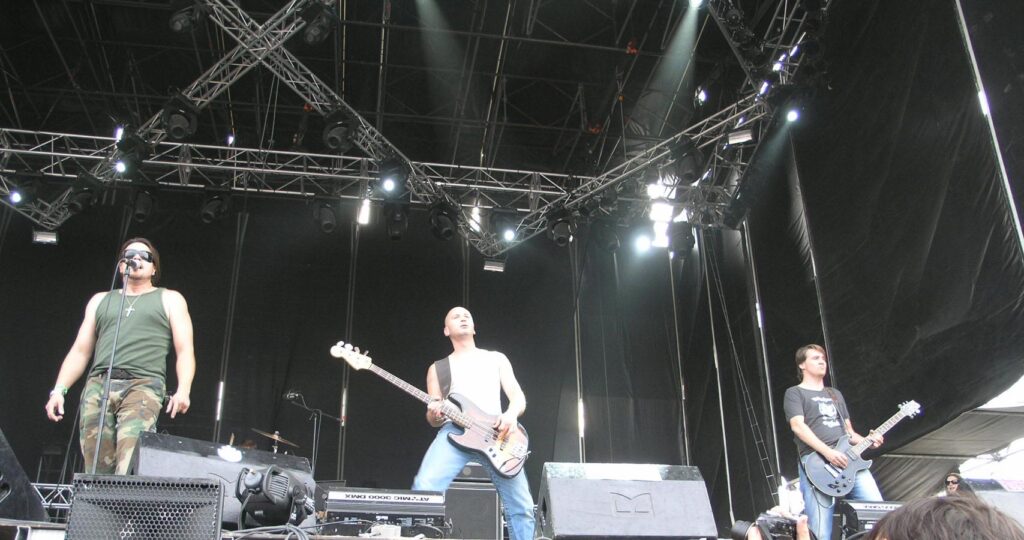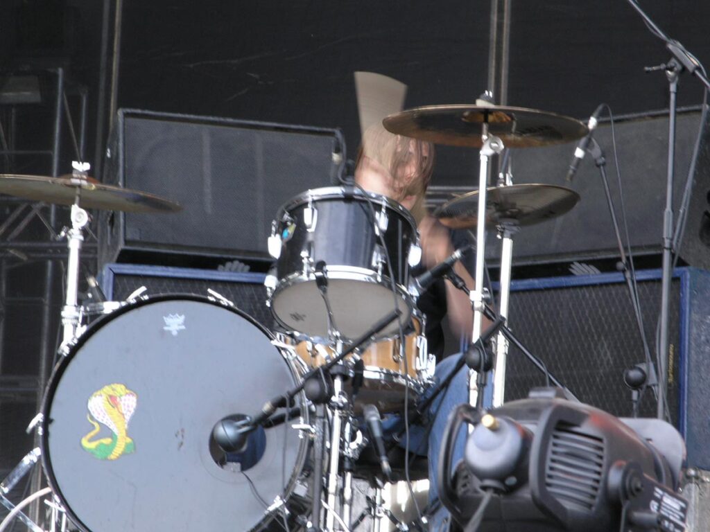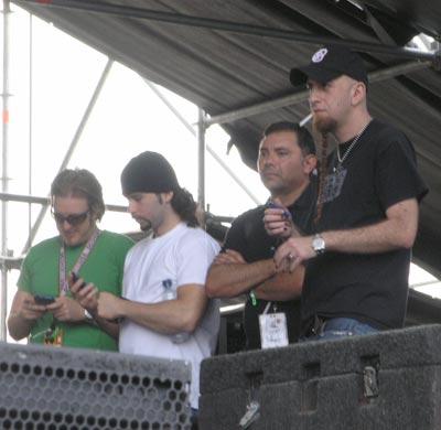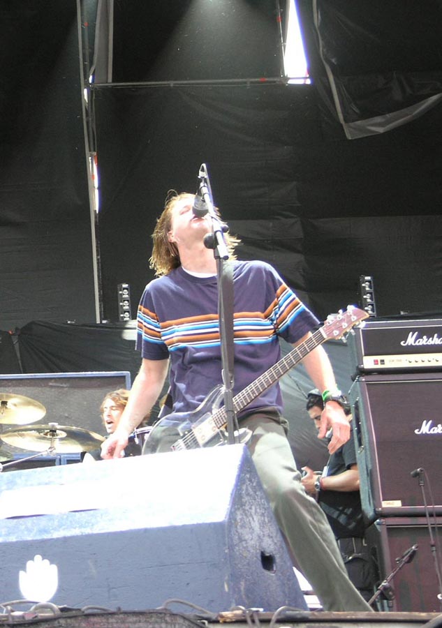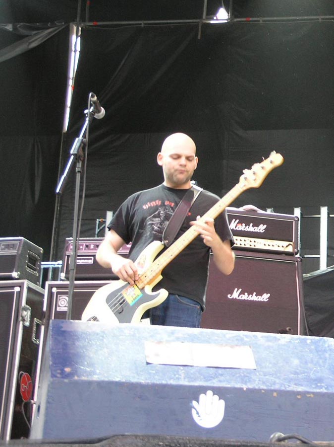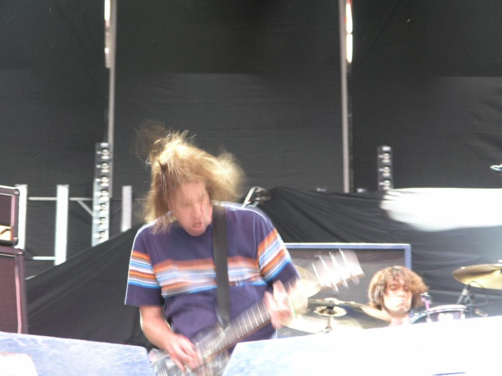 Comment mieux revenir sur le plancher des vaches que par un bon concert de Clutch ? Franchement, l’enchaînement est un vrai délice Dès les premiers accords, on se laisse bercer et entraîner dans les griffes du trio instrumental, et Neil Fallon, avec une assurance sans faille, surenchérit avec des vocaux toujours chaleureux et percutants. Il se fait plaisir, et ça se voit : il hurle, il sautille, il va voir ses collègues, il arpente la scène, il est vraiment le centre d’attraction du groupe et il assume avec classe et talent. Parce que oui, il ne faut pas vraiment demander à Dan et Tim d’assurer le spectacle : chacun dans son coin joue ses parties avec une aisance et une concentration troublantes. Ces mecs là ont le groove au bout des doigts, et ils le laissent glisser sur les cordes de leurs instruments sans que l’on ne puisse déceler la moindre difficulté dans l’exécution. Remarquable. Mais au delà de ces performances musicales, ce qui scotche en premier à chaque concert de Clutch, c’est le GROOOVE (oui, en majuscules). La paire Dan/Jean-Paul balance des lignes rythmiques somptueuses, rondes et ventripotantes, chaleureuses, sur lesquelles les autres peuvent s’éclater ce qu’ils font sans retenue. La gratte de Tim est le parfait pendant mélodique à ce duo magique, et il n’est pas rare de voir Neil se mettre en retrait sur le coté de la scène, non pas pour regarder avec satisfaction plusieurs dizaines de milliers de personnes sautiller avec le sourire aux lèvres (ça doit valoir le coup d’oeil, vu de là-haut), mais bel et bien pour regarder ses 3 potes balancer le GROOOVE à coté de lui Même lui, qui les a vus des centaines de fois jouer ensemble, ne se lasse pas de voir la magie opérer. Il n’est pas le seul, d’ailleurs, puisque la totalité de System Of A Down est sur le bord de la scène en train de hocher la tête avec le sourire, et de chanter les chansons par coeur !