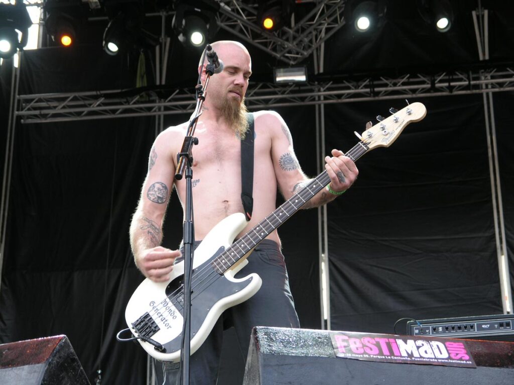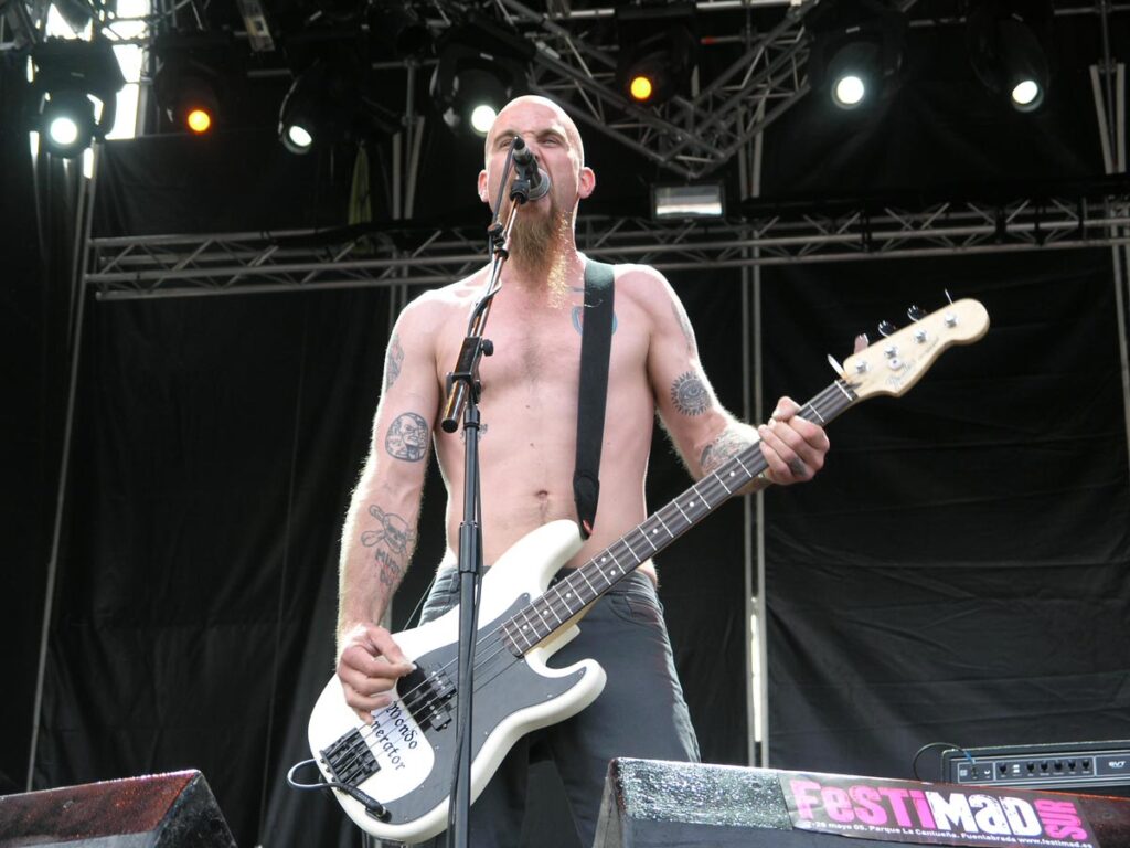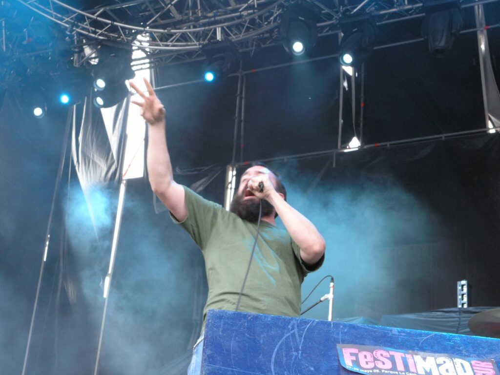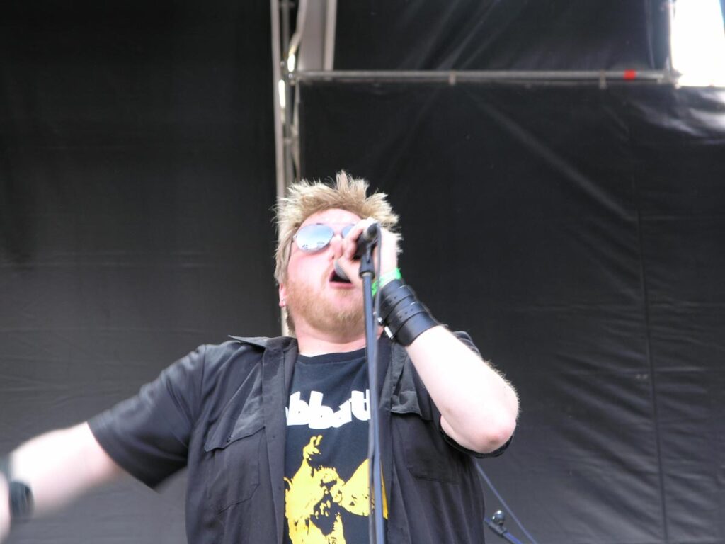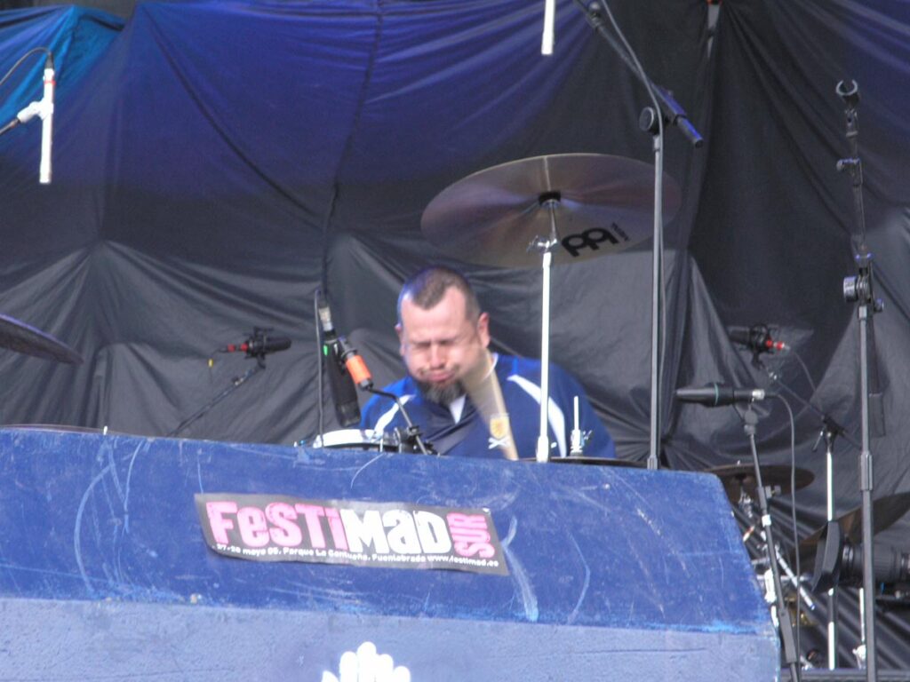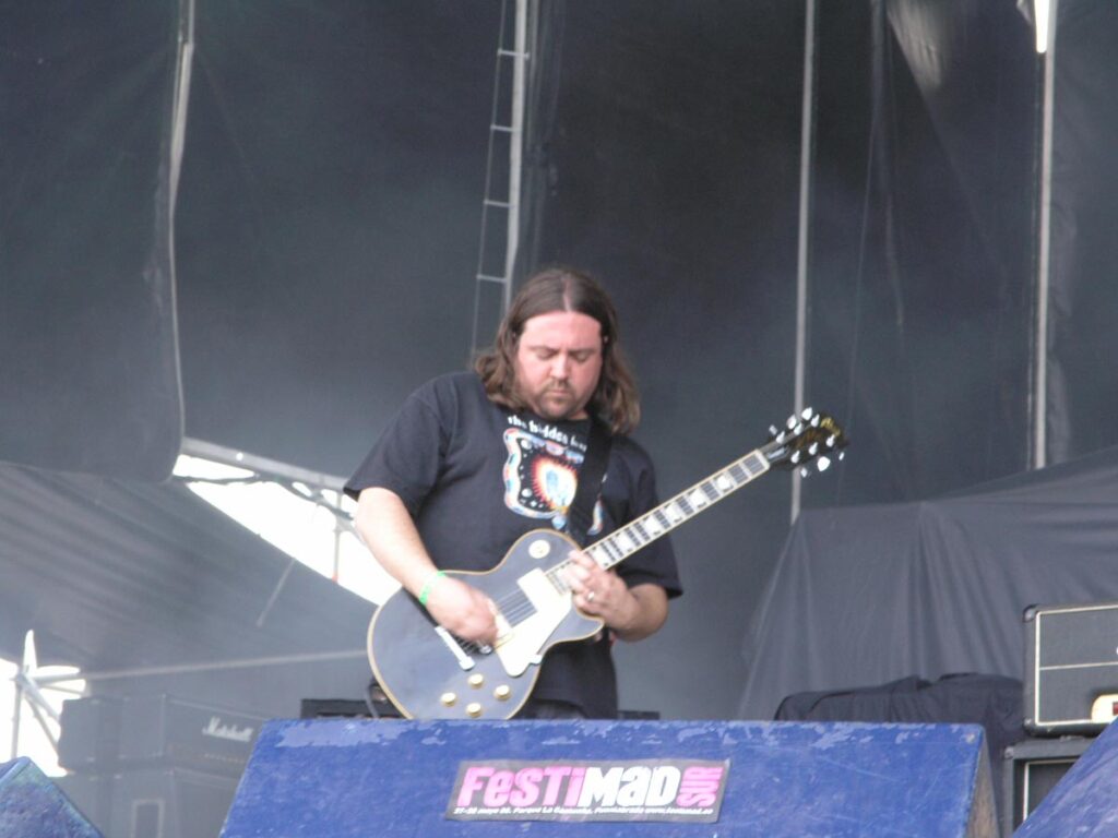 Il y a un paquet de groupes à l’affiche aujourd’hui, dont une dizaine de groupes qui vont défiler à partir de 14h sous la tente (de l’autre coté du site par rapport aux scènes principales), et il va bien falloir faire des choix : sur la grande scène vont évoluer d’affilée un incroyable échantillon de ce que la scène stoner compte de plus intéressant à l’heure actuelle. Un paquet de concerts qui vont s’enchaîner sans la moindre minute de répit, dès le milieu d’après-midi, jusqu’à tard dans la nuit ! En gros, l’orientation de la journée va être claire : ne pas arriver trop tôt (canicule, fatigue ), et s’organiser pour voir le plus de concerts possibles tout en prenant de bonnes photos. Croyez-moi, c’est plus facile à dire qu’à faire. Sitôt arrivés, on va direct à la zone presse retrouver Hermano, pour interviewer Dandy Brown (qui était aussi là la veille, et qui partira le soir même pour les Etats-Unis). Du coup, ben on rate sur scène les thrashers de Hamlet (gloires nationales en Espagne !) et le début de The Eighties Matchbox B-Line Disaster (pas génial !). Les choses sérieuses commencent avec Five Horse Johnson à 17h30 : c’est le début d’une série frénétique de concerts, sans répit. On le savait déjà, FHJ assure grave sur disque (voir nos chroniques CD), il nous restait à voir ce que ça donne en concert. Et bien ça marche bien ! Bon, certes, Brad (guitare) et Steve (basse) ne sont pas des bêtes de scène, mais ils assurent ! Jean-Paul Gaster, le batteur de Clutch, assure l’intérim avec la touche de feeling qui participe à la grandeur de Clutch, et en plus, que demande le peuple, il s’éclate ! Le hard-rock-sudiste-stoner-boogie de trio (à la recherche d’un nouveau batteur) semble lui convenir, et il assure avec brio la quatrième roue de la Mustang. Le maître de cérémonie, c’est quand même Eric, le chanteur. Au bout de 30 secondes, il est déjà rouge et dégouline de sueur : la canicule madrilène ne doit pas convenir à la carrure de l’animal. Mais il ne le montre pas, sa voix rocailleuse et puissante est sans faille tout au long du concert, qui fait la part belle aux morceaux de « Last Men On Earth », avec quelques inédits et oldies. Un concert impeccable, et une somptueuse introduction à ce qui nous attend : du feeling par caisses entières !