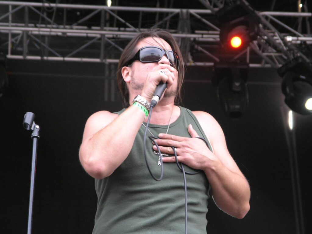 Encore un enchaînement de luxe : c’est Hermano qui prend la suite de Clutch, et le combo est en forme ! Etonnant, presque, pour un groupe qui n’a pas joué ensemble depuis des mois, et qui se retrouve pour un seul et unique show aujourd’hui à Madrid (pas de tournée en cours, ni en prévision). La performance n’en est que plus appréciable, et la puissance de ce show sera manifestement à mettre uniquement au crédit d’une entente parfaite entre les musiciens. Chris Leathers a bien pris ses marques, et assure à la batterie. Idem pour Dandy qui balance des lignes de basse impeccables, taillées pour le hard rock de la meilleure facture. Du pain béni pour tout musicien. Dans cette situation confortable, le duo guitaristique ne peut qu’exceller ce qu’il fait. Le second guitariste, Olly (le même que sur la dernière tournée européenne), assure gentiment ses parties mais se retrouve largement sous-mixé, ce qui tend inévitablement à mettre en avant la performance du second (premier ?) leader de Hermano sur scène : Dave Angstrom. Angstrom est taillé pour la musique, né pour la scène, avec une gratte dans les mains. Il délivre non seulement impeccablement toutes ses parties (rythmiques, soli), mais balance SANS ARRET des petits licks de guitare, des petites intros « clins d’il », des impros souriantes ou surprenantes Bref, on ne s’ennuie jamais ! Outre les clichés guitaristiques (joue de la gratte avec les dents, etc ) dont il s’acquitte avec talent et sincérité, on se délecte des diverses facéties du jeune homme : il crache son verre d’eau sur la tête de Garcia en pleine pose « hard rocker à genou devant son public », ou encore, quand Garcia demande au public où sont les joints dont il sent l’odeur, il hurle dans le micro « Ne l’écoutez pas, les gosses : la drogue c’est mal ! Enfin, pour ceux qui ont quelque chose de plus sérieux, retrouvez-moi après le concert dans la loge 24, au fond sur votre gauche » On peut le regarder grimacer et évoluer sur scène pendant le concert entier, on ne se lasse pas. Objectivement, néanmoins, force est de reconnaître que les yeux sont surtout dirigés vers John Garcia. Un John Garcia à la forme remarquable (il a perdu du poids le bougre, il a fière allure !), vocalement au top, qui ne manque pas une note, aussi aigue ou difficile soit elle ! Du grand Garcia, peut-être pas le frontman le plus exubérant et flamboyant du monde, mais chargé à bloc de charisme et de talent.