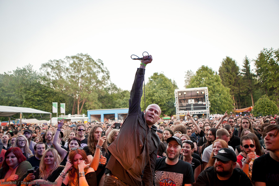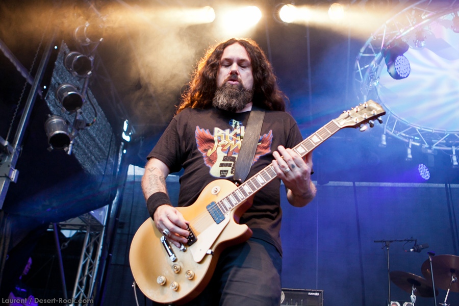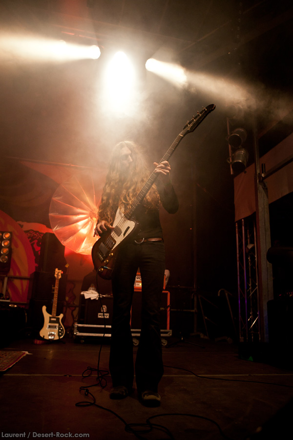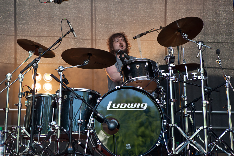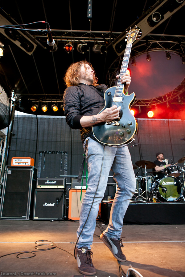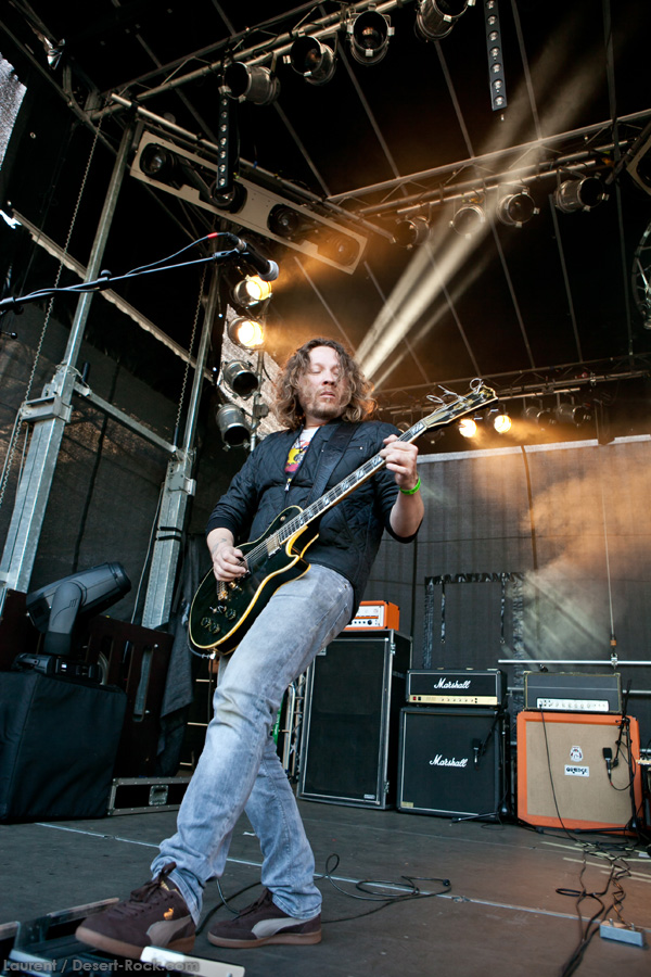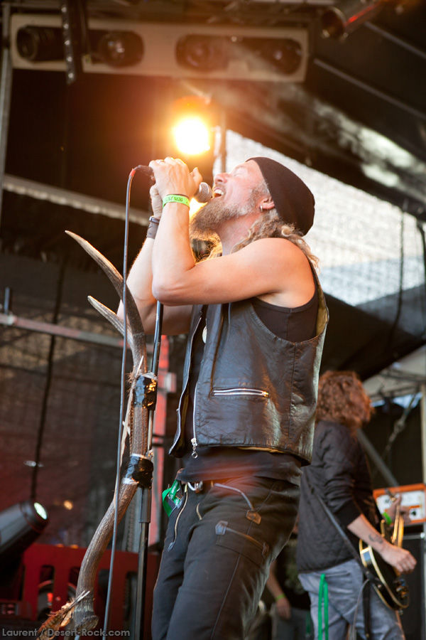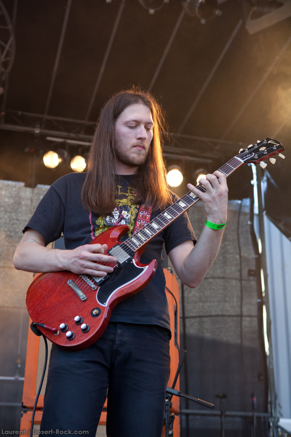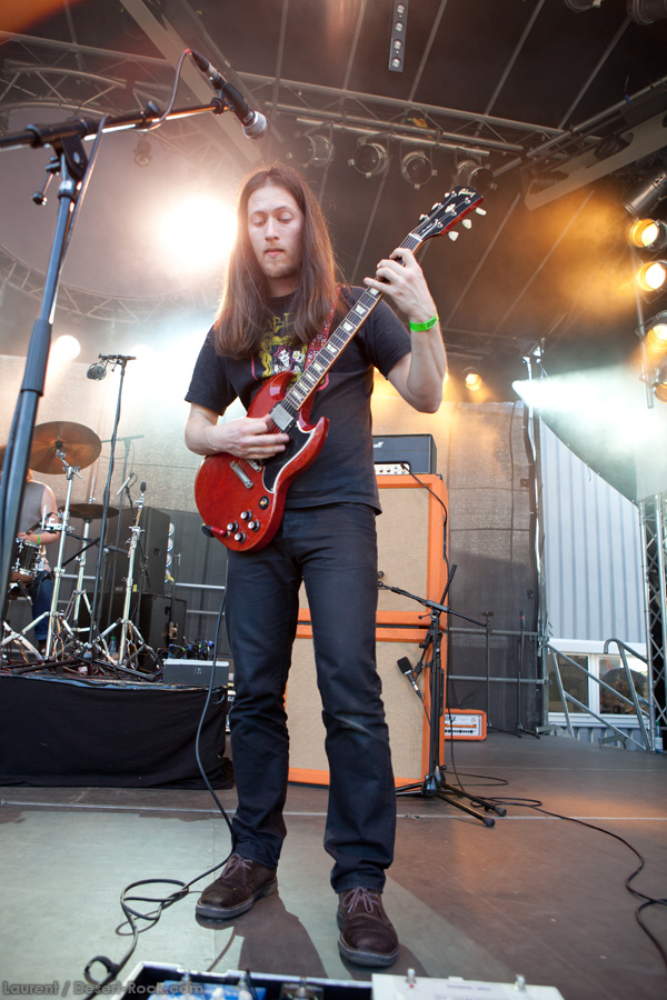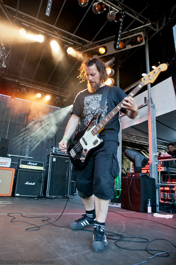 Le début de soirée est des plus agréables durant le week-end le plus chaud de l’année en Allemagne quand les vétérans danois attaquent leur heure de set. Ces mecs avaient disparu de nos écrans radars depuis quasiment une décennie et c’est avec une excitation certaine que nous prenons place dans la fosse à photographes (nous avons de la place car le moins que l’on puisse dire c’est que le groupe n’est pas le plus médiatique de la soirée). Le pied de micro orné d’une corne de cervidé avec son tambourin ainsi que son tambour flanqués sur ses côtés fait tout son effet et annonce le meilleur. Les lascars attaquent directement dans le gras ce qui génère rapidement un déplacement du public, bien inspiré, aux abords de la scène afin d’assister à ce concert (et du coup nous sommes moins seuls dans le secteur photographe). Nous avions un vague arrière-goût d’une formation aux sonorités proches de celles de l’écurie Small Stone des années deux-mille et nous n’allions pas être déçus par une prestation à la hauteur de nos attentes. La formule Gas Giant version 2015 a rapidement pris en live non seulement en ce qui concerne le son (qui dépote), mais aussi pour ce qui est du rendu visuel ainsi que de l’ambiance avec le moment tribal qui a fonctionné tip top. Après avoir balancé des titres issus de leur discographie quasi-complète, les vétérans scandinaves embrayent directement sur un rappel sans même effectuer la moindre pause afin d’optimiser les minutes restantes sur le temps de jeu. Le frontman charismatique pourra se targuer d’avoir remarquablement assuré son rôle sur scène alors que ses collègues envoyaient le gras avec panache. Franchement quel plaisir de se retaper des perles telles que « Never Leave This Way », « Too Stoned » et surtout « Storm Of My Enemies » – une réussite du genre ce fut.