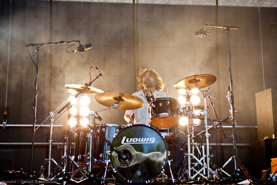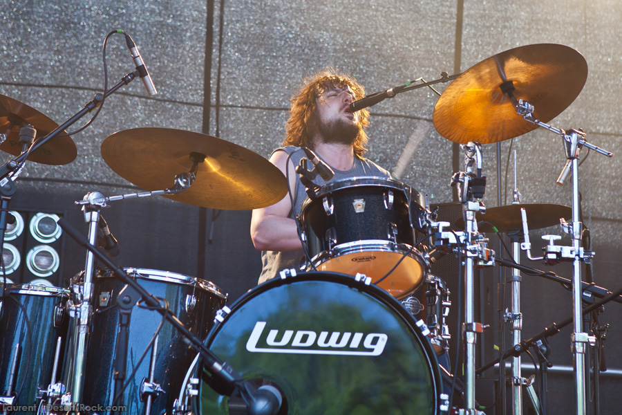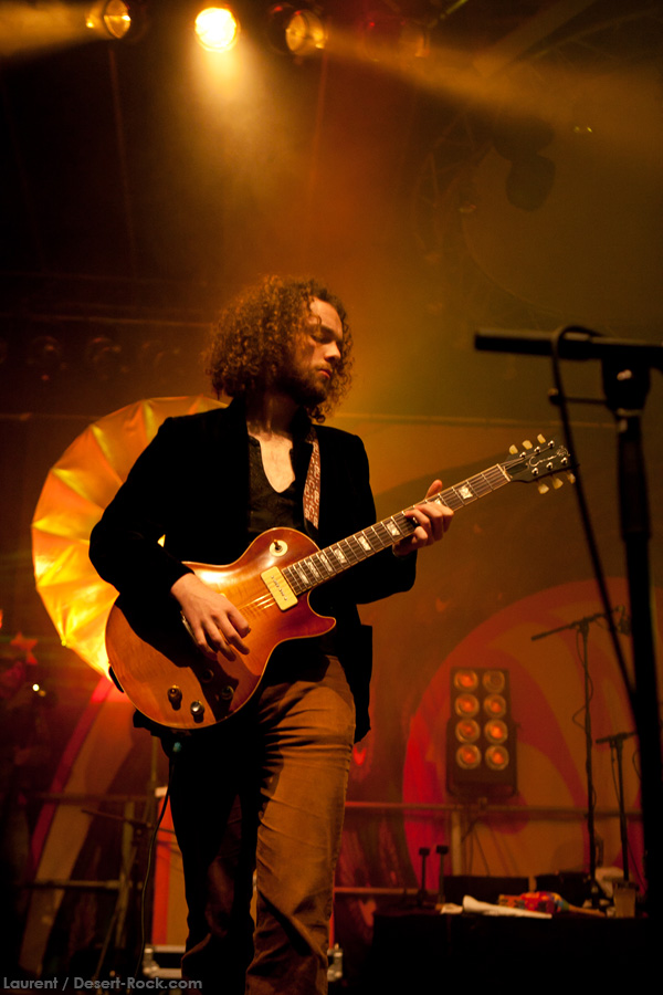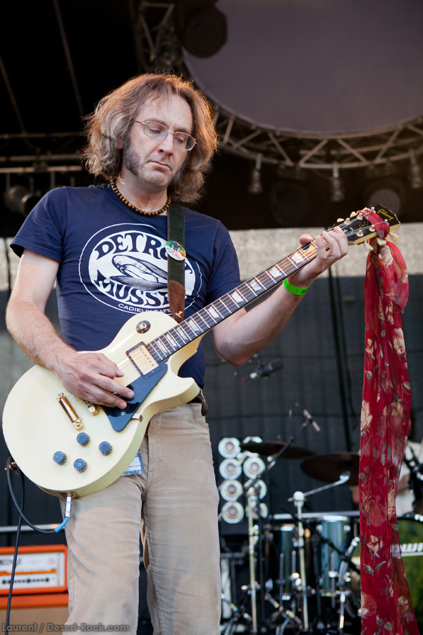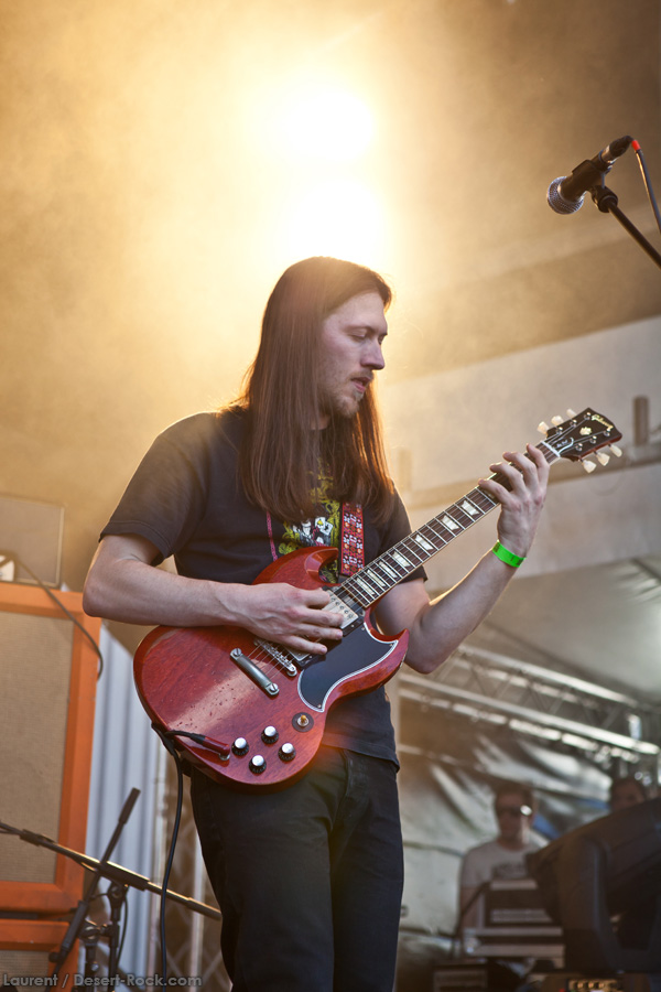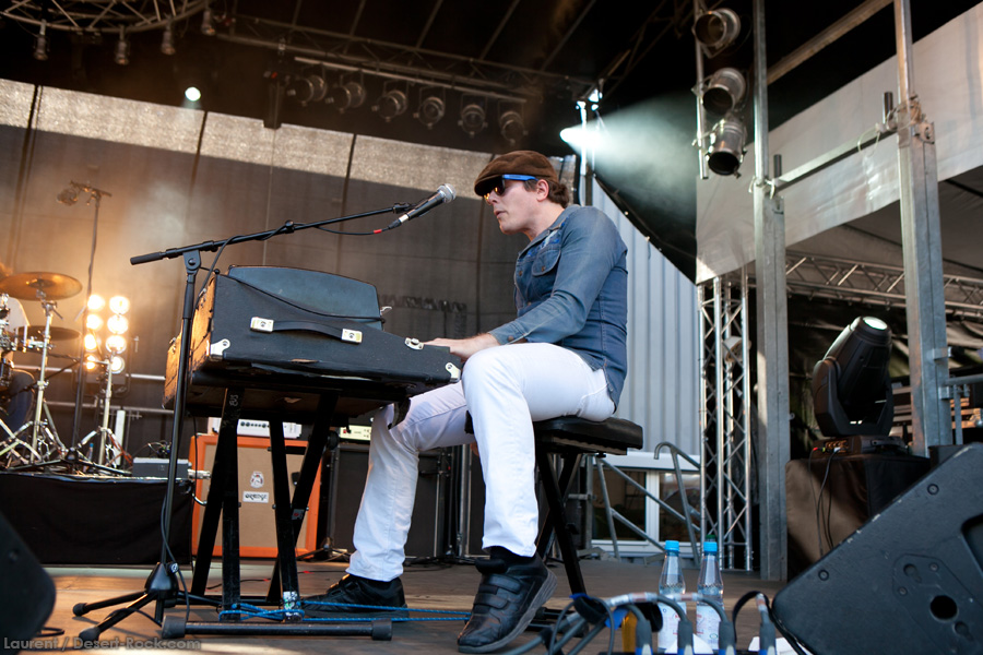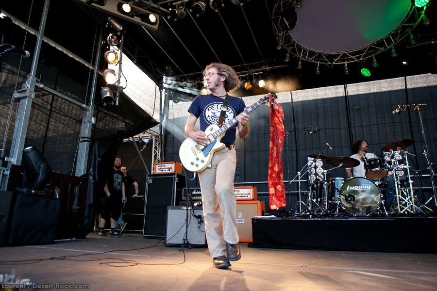Après ce set bien traditionnel, place au gros blues psychédélique oldschool avec le trio de Detroit. Les Ricains distillent leurs arrangements soignés dans une configuration toute personnelle : un batteur, un guitariste et un clavier – aux pantalons d’une blancheur immaculée – assis derrière son Rhodes vintage. L’absence de basse se sent un peu durant ce concert qui n’est pas carrément notre tasse de thé, mais qui plaît foutrement au public dans la place. Les arrangements – un poil pompiers par moments – sont soutenus par les poses typiquement US du guitariste au foulard hippie solidaire du manche de sa six-cordes. Il faut dire qu’avec un gars assis derrière ses fûts et un autre derrière son clavier, Danny Methric est le seul membre ayant la capacité de prendre de l’espace sur cette scène de taille conséquente sauf quand il se charge des parties vocales (partagées par instants avec son collègue rappelant par moment Elton John).