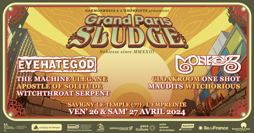 Et si le temps d’un week-end la capitale française de la scène Sludge et stoner se trouvait au milieu de la Seine-et-Marne à Savigny le Temple ? Question pas évidente, car il est déjà difficile de faire bouger les masses dans Paris, alors en dehors… et pourtant ce fut un pari gagné par Garmonbozia l’an dernier avec le festival du Grand Paris Sludge. Avec la même volonté d’allier la crasse et la fuzz, le festival était de retour ce week-end avec la même formule deux jours axés sur Eyehategod et Monkey3.