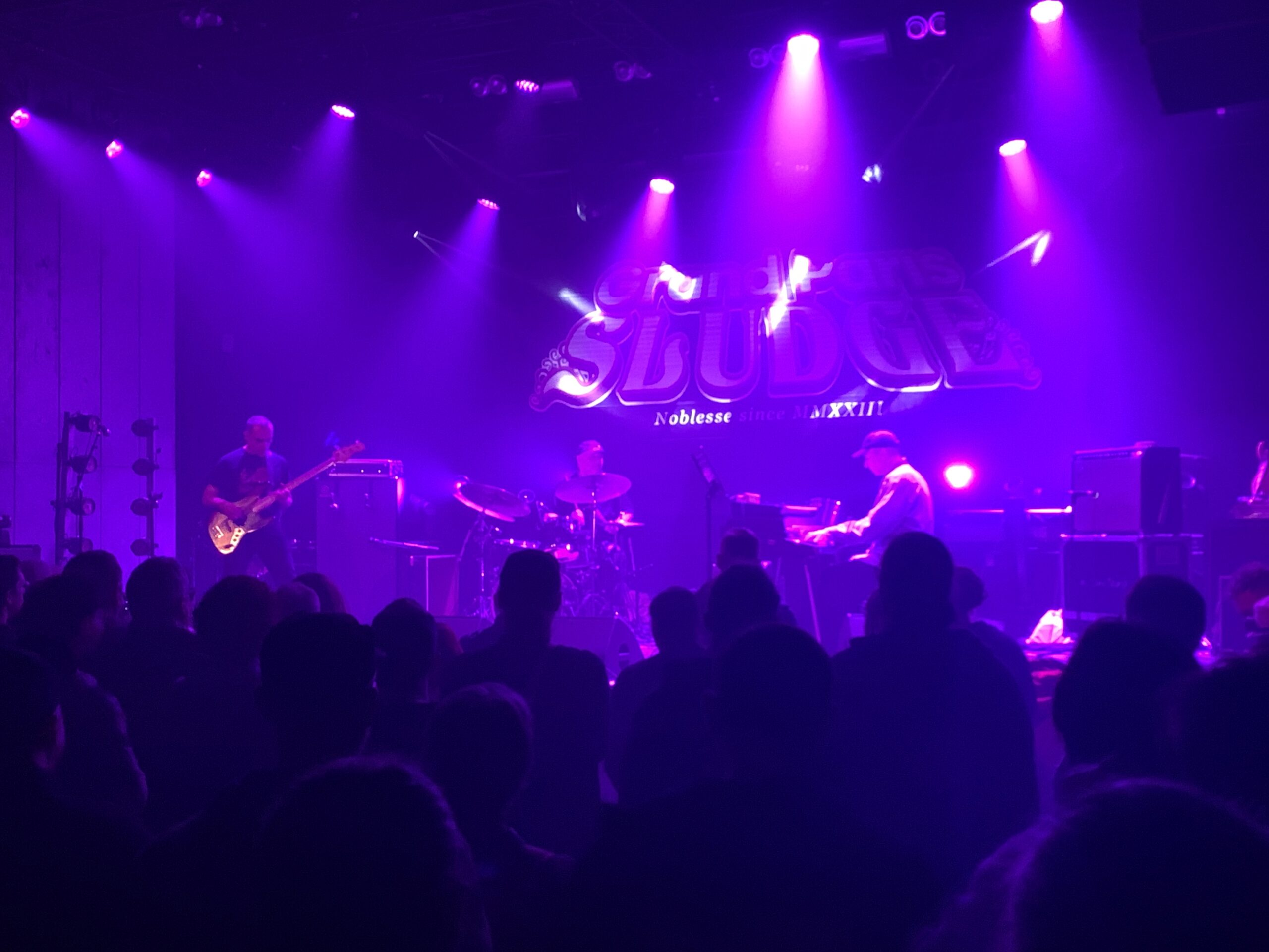 Il était important de se nourrir car la soirée, et ce Grand Paris Sludge deuxième du nom, se termine par un grand voyage dans l’espace, un vrai de vrai ! Difficile de ne pas attendre de pied ferme les suisses Monkey3 après la sortie fin février de leur dernier album Welcome to The Machine. Et dès le départ, le groupe nous offre le titre floydien “Ignition” ! Le trip instrumental cosmique de Monkey3 est tout bonnement éblouissant en concert. Encore une fois, 1 heure, 2 heures… difficile de dire combien de temps a duré cet excellent moment. Que ce fut compliqué de devoir partir un morceau avant la fin pour aller attraper le dernier RER, qui en plus va moins vite et moins loin que la fusée suisse…