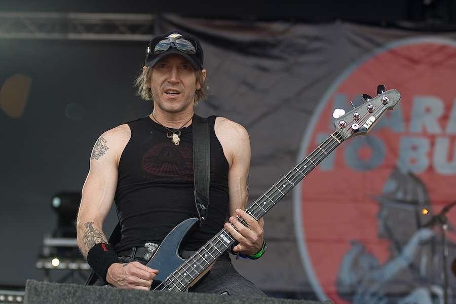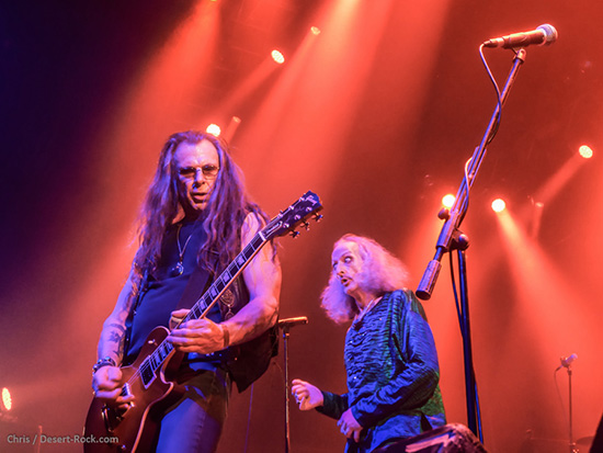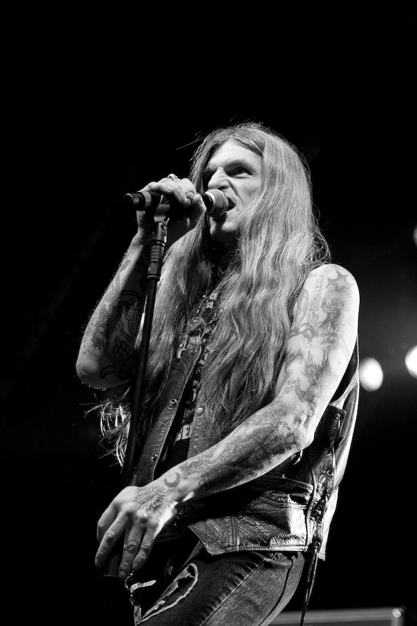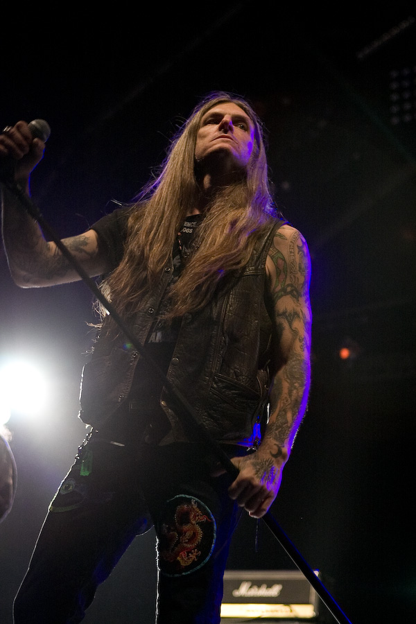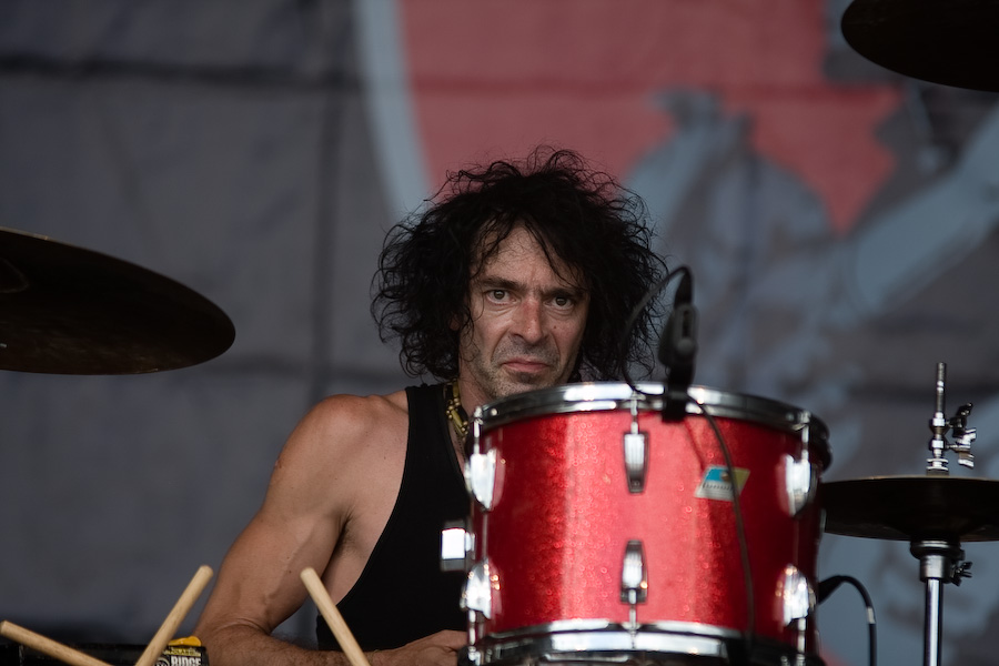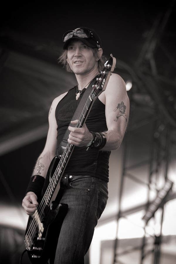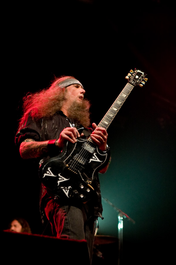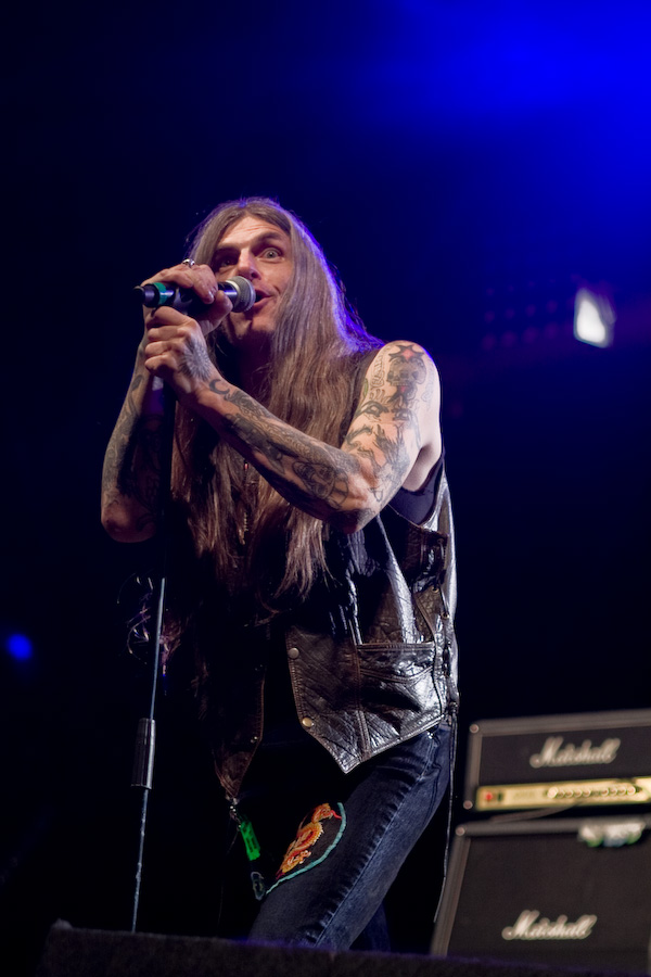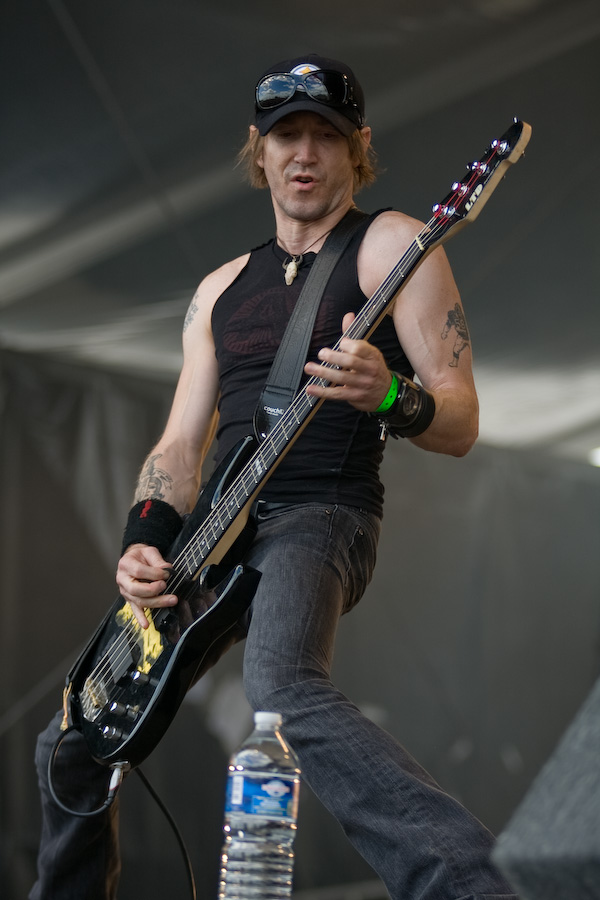 Les concerts de Anthrax (bien péchu… pas mal ce nouveau chanteur, même si ça me fait mal de le dire !) et de Heaven & Hell (horaire probablement trop tardif pour les papis : on ne peut pas vraiment dire qu’ils avaient une pêche et une bonne humeur comunicatives…) viennent compléter la soirée pour mieux nous préparer aux berceuses de… St Vitus ! Le légendaire quatuor de doomsters menés par Wino Weinrich, reformé officiellement depuis quelques années (et ravivé à l’occasion de quelques événements ici ou là) surprend rapidement par sa fougue et sa bonne humeur ! Même si les musiciens ne sont pas non plus des boute-en trains, ils sont non seulement heureux d’être là (les sourires entre eux ne trompent pas) et ont sacrément la pêche : il faut voir le sieur Chandler, bandana « 70’s » autour de la tignasse, sauter et tournoyer sans cesse, et Wino se balancer derrière son micro en grimaçant pendant une heure ! Un Wino impeccable, soit dit en passant, qui se cantonne ici au chant, et nous rappelle avec sa voix chaude pourquoi il a acquis ce statut culte parmi le petit monde des stoner-fans… Excellent show, qui nous permet de passer une heure avec le sourire, avant de se gauffrer les gros mégalos de Mötley Crüe (prestation calamiteuse, courte et sans passion, pas à la hauteur d’une tête d’affiche de festival).