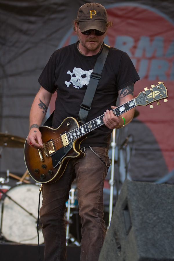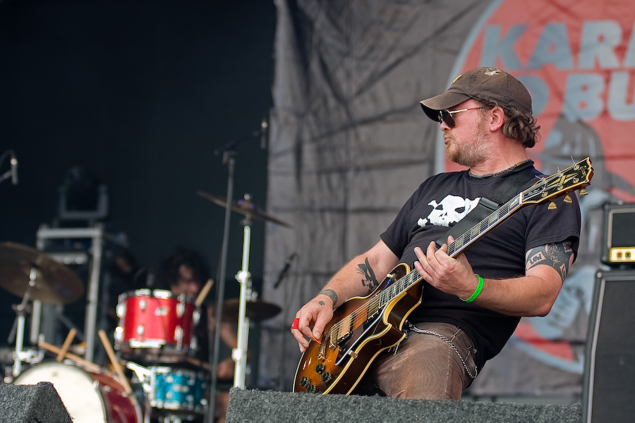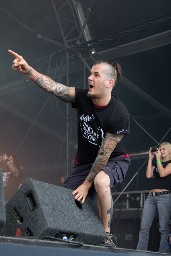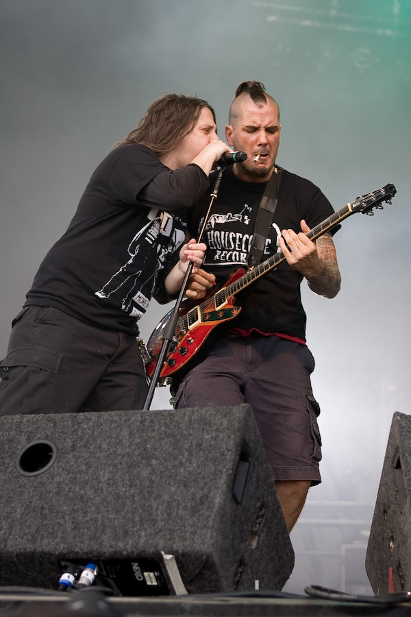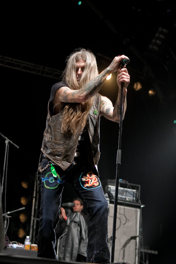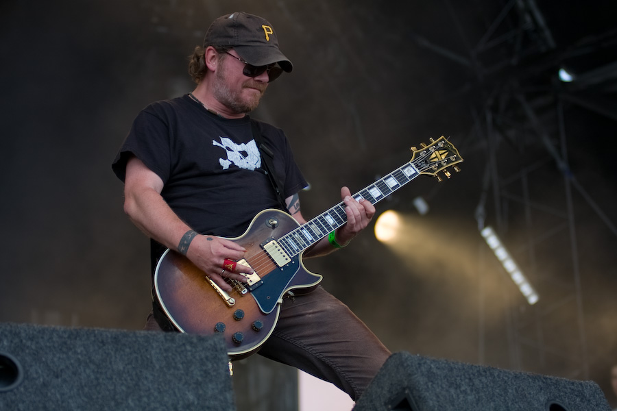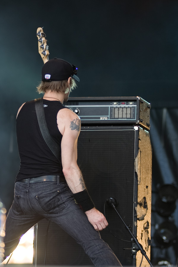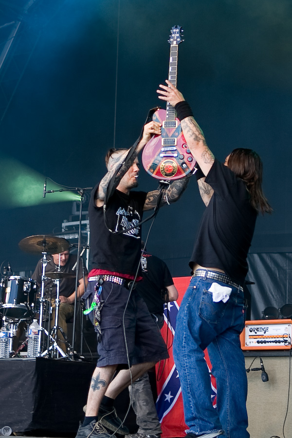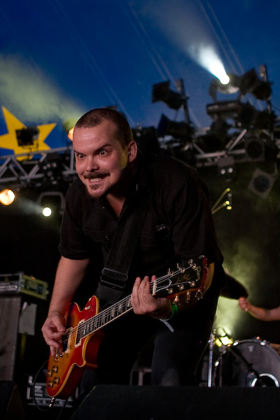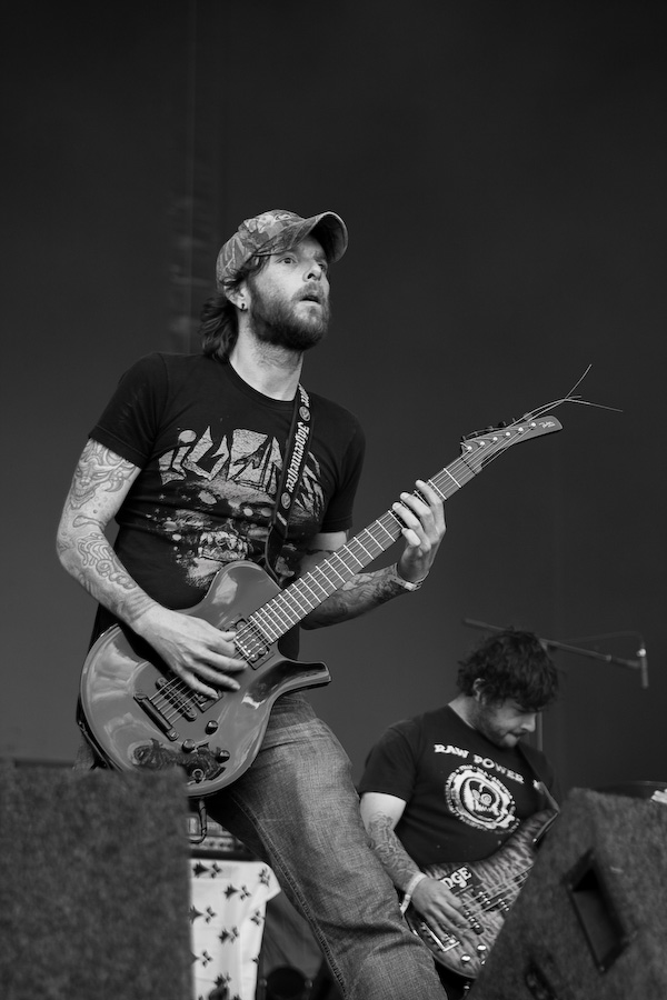 Après une petite pause relax avec notamment les Backyard Babies, un public de die-hards se masse devant la main stage 2 pour l’arrivée des cultissimes Eyehategod. D’ailleurs, un détail ne trompe pas : les musiciens d’autres groupes occupent totalement les côtés de la scène, à l’image de Phil Anselmo (Down), qui n’arrêtera pas de headbanguer de tout le concert, de venir sur scène pour saluer les zicos, et même prendre la gratte à son pote Jim Bower sur un titre complet ! Musicalement, les je-m’en-foutistes de la Nouvelle Orléans enquillent les titres les plus massifs de la journée : des tempos lents, lourds, servis par des riffs de gratte accordés 3 tons trop bas et une basse ronflante… Pachydermique, mais diantrement efficace. Le succès rencontré auprès du public dépasse la vague réputation « culte » du groupe, un excellent concert.