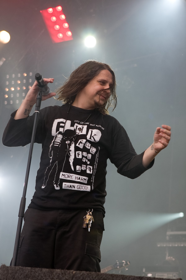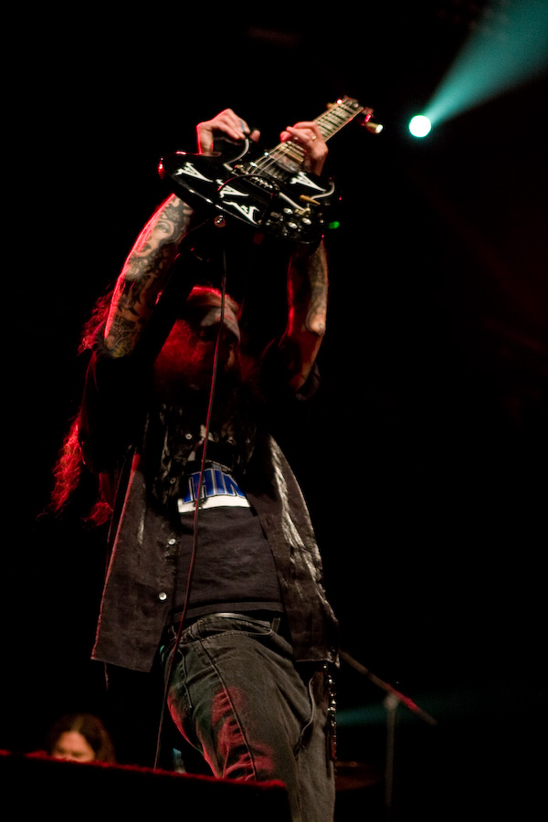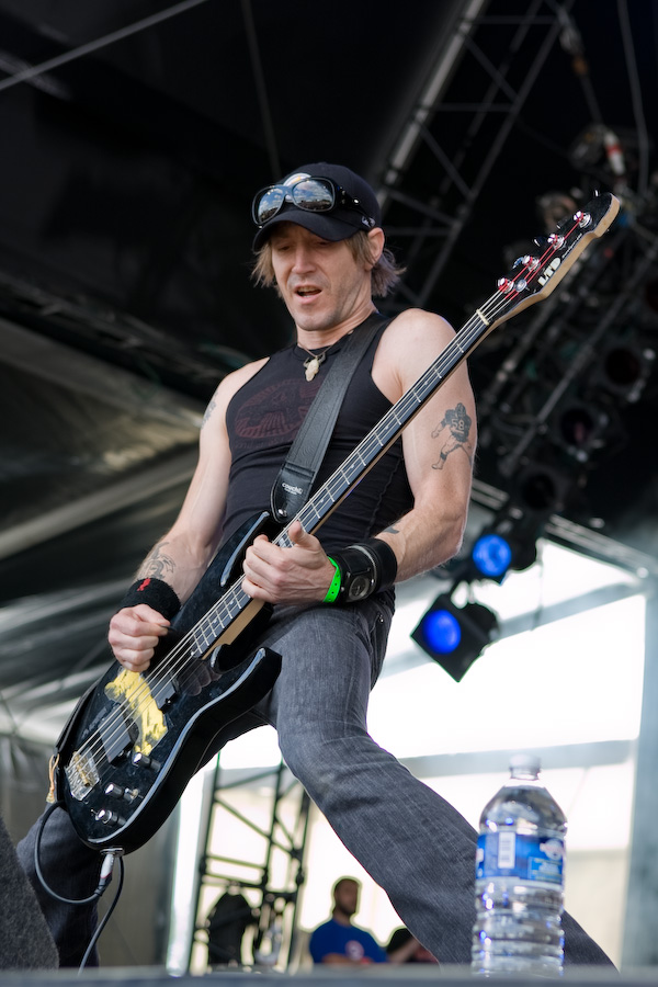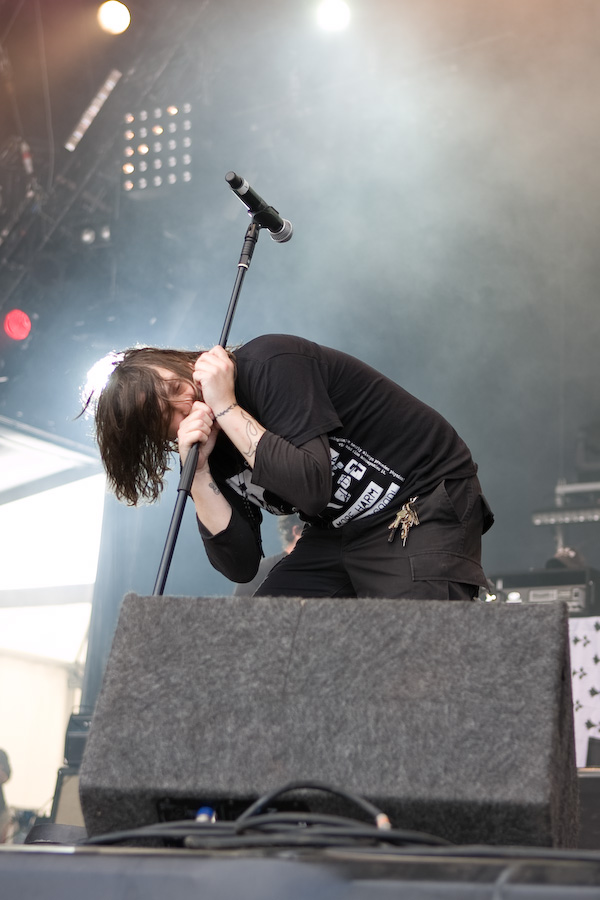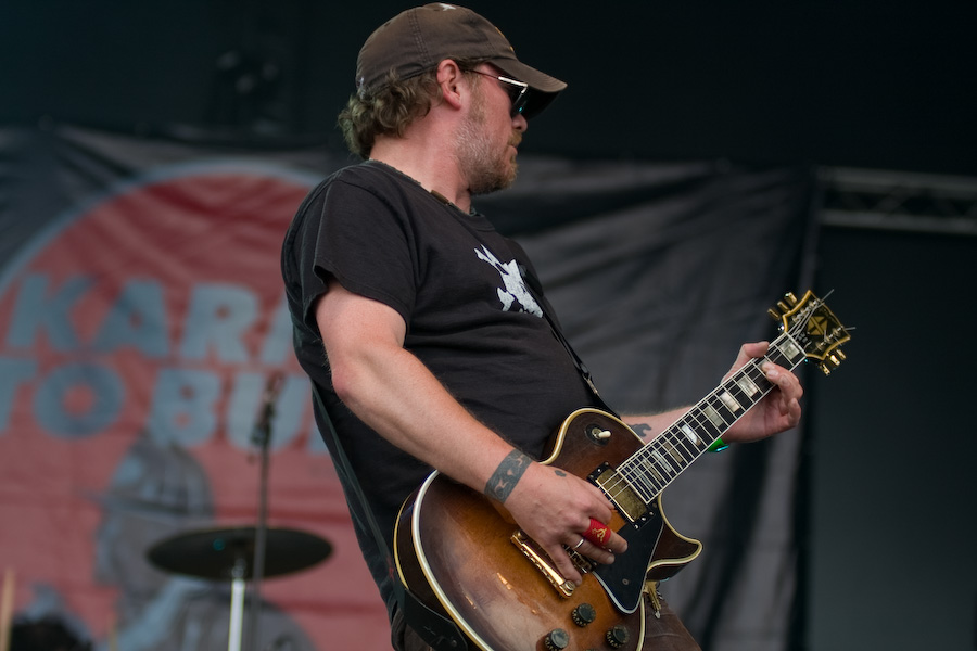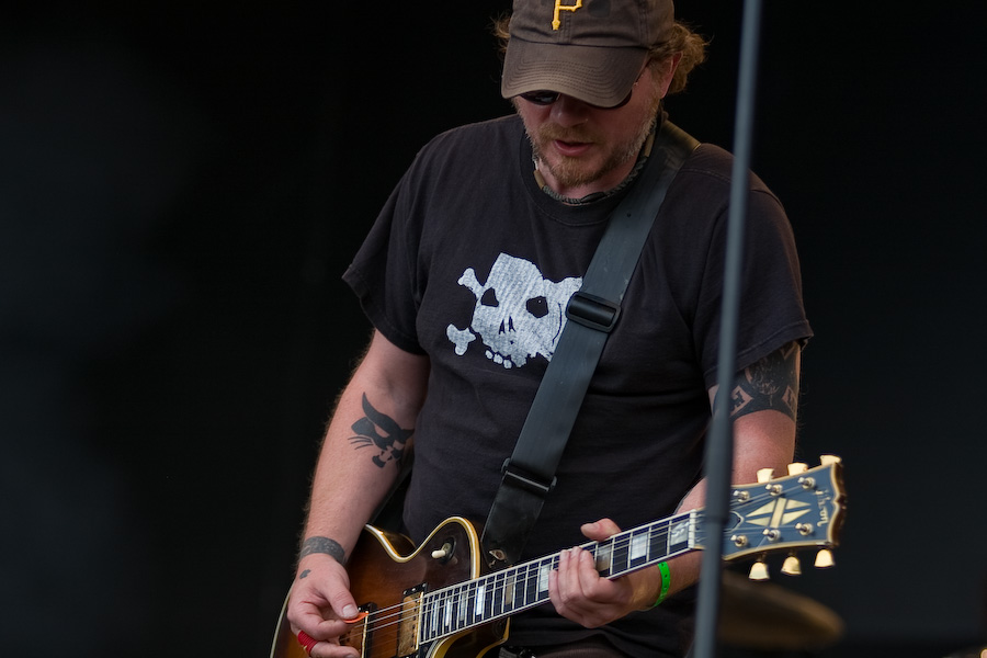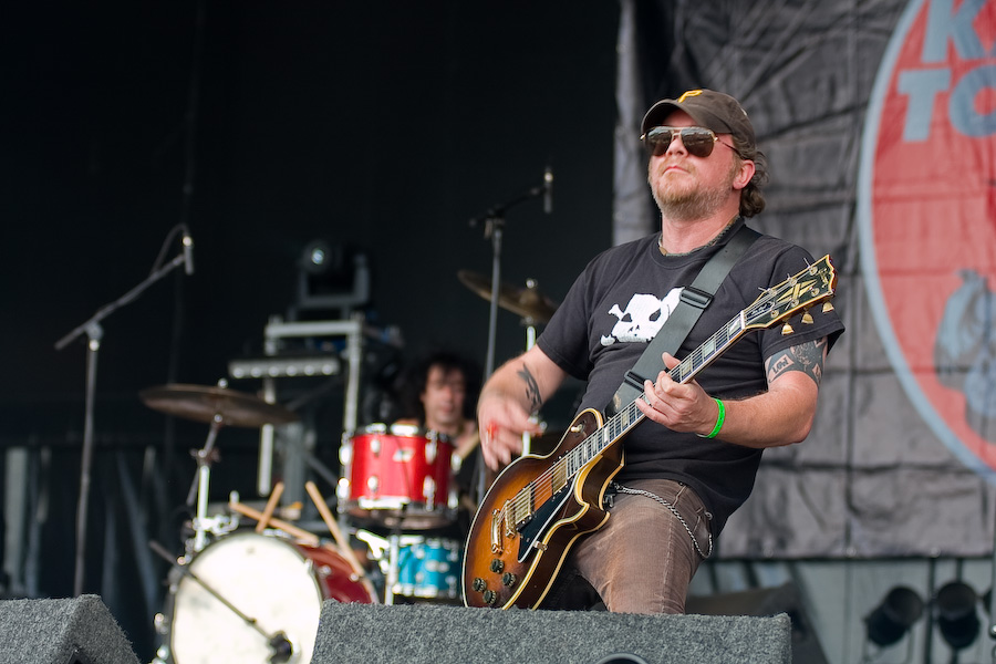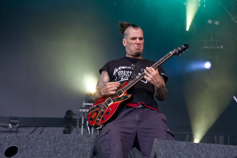 Après une petite pause relax avec notamment les Backyard Babies, un public de die-hards se masse devant la main stage 2 pour l’arrivée des cultissimes Eyehategod. D’ailleurs, un détail ne trompe pas : les musiciens d’autres groupes occupent totalement les côtés de la scène, à l’image de Phil Anselmo (Down), qui n’arrêtera pas de headbanguer de tout le concert, de venir sur scène pour saluer les zicos, et même prendre la gratte à son pote Jim Bower sur un titre complet ! Musicalement, les je-m’en-foutistes de la Nouvelle Orléans enquillent les titres les plus massifs de la journée : des tempos lents, lourds, servis par des riffs de gratte accordés 3 tons trop bas et une basse ronflante… Pachydermique, mais diantrement efficace. Le succès rencontré auprès du public dépasse la vague réputation « culte » du groupe, un excellent concert.