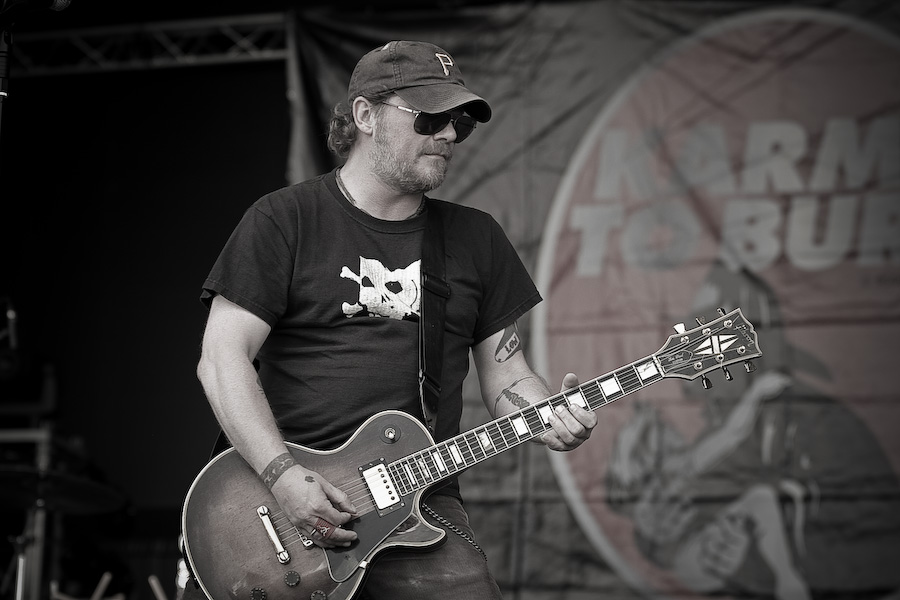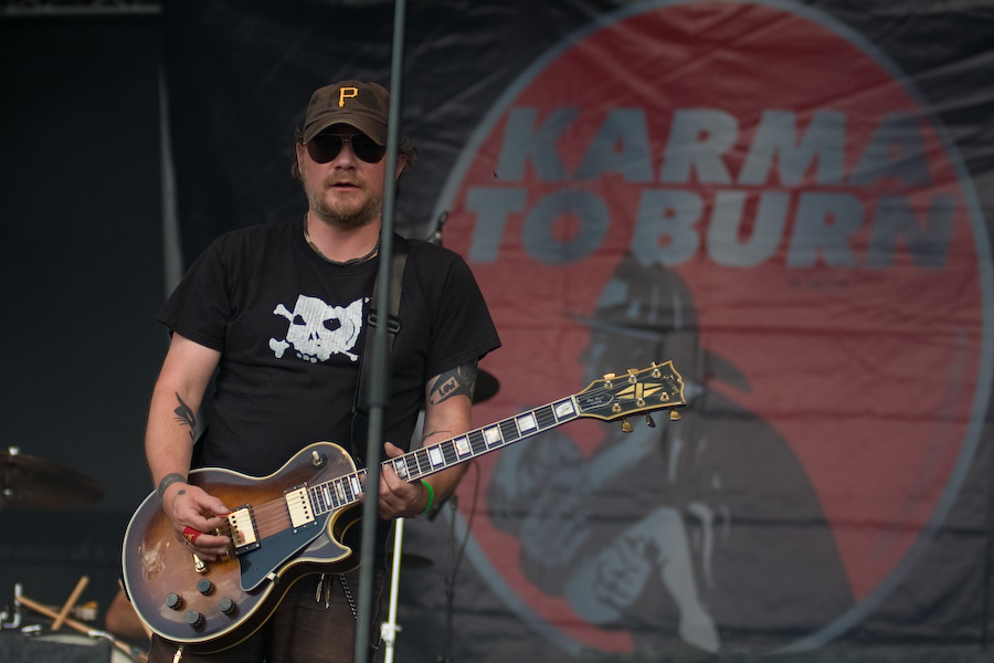 Comment aurais-je pu rater pareil événement ? Karma To Burn, Down, Clutch, Electric Wizard, Eyehategod, Cathedral, Pentagram, Mastodon, Ufomammut, Orange Goblin, Saint Vitus… tous en concert dans le même festival… sur 3 jours d’affilée… en France !!! Difficile à croire, et pourtant le Hellfest l’a fait. Et n’importe quel amateur de metal y aurait trouvé quelques dizaines d’autres groupes super intéressants pour finir de rendre cette affiche probablement l’une des plus alléchantes des festivals de cet été en Europe. Ni une ni deux, voici un compte-rendu 100% subjectif et 100% orienté tendance « stoner »… Le 1er jour, il n’y a pas encore foule quand les premiers combo montent sur scène. Les frenchies de Watertank balancent leur gros heavy stoner technique dans la tente « Terrorizer » avec une belle efficacité, mais le public n’est pas très nombreux pour en profiter. Les heureux présents découvrent 4 jeunes gaillards pas timides, qui assurent un show plus qu’honnête : efficace, bien exécuté, et qui donne envie d’en connaître plus. A réserver à la branche la plus « metal » d’entre nous stoner-addicts toutefois… Le groupe remplit en tout cas bien son office de nous préparer les cages à miel pour l’un des concerts que j’attends le plus de tout le week end : Karma To Burn ! A midi pile (pas l’horaire idéal pour une grosse dose de stoner), le trio monte sur scène et commence à asséner ses premiers accords. Inutile de vous détailler la set list du concert, à moins que vous ne souhaitiez connaître les numéros gagnants du loto (pour rappel : toutes les chansons de K2B portent des titres sous forme de… numéros). Le fait est que Will décoche les riffs les plus remarquables du week end, sans faillir, et ce pendant presque 3/4 d’heures. Rob et Rich apportent la touche de southern groove qui donne au groupe sa spécificité. Le public commence à affluer, mais ce concert en début de journée aurait pu être magique devant quelques milliers de personnes de plus, même si les présents étaient à fond dedans. Excellent.