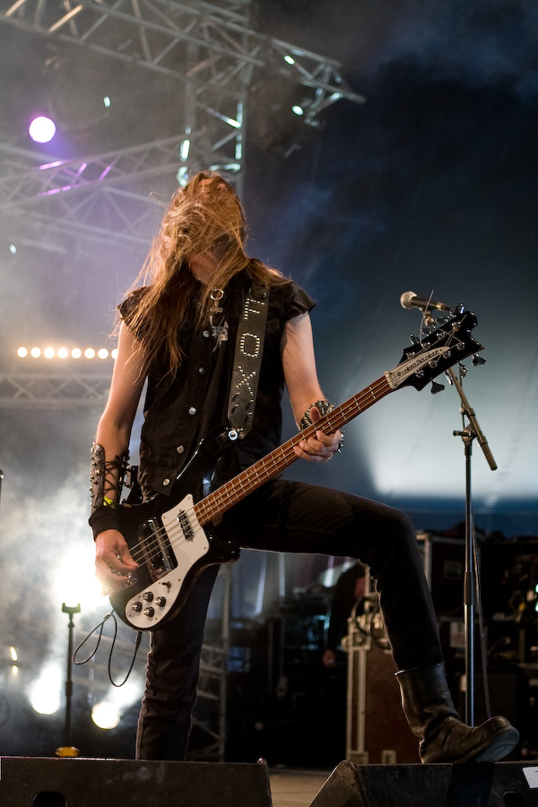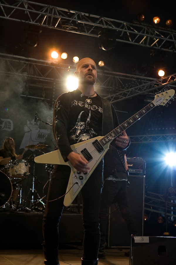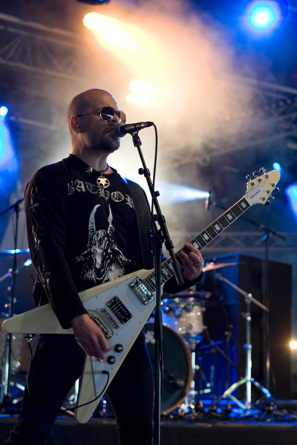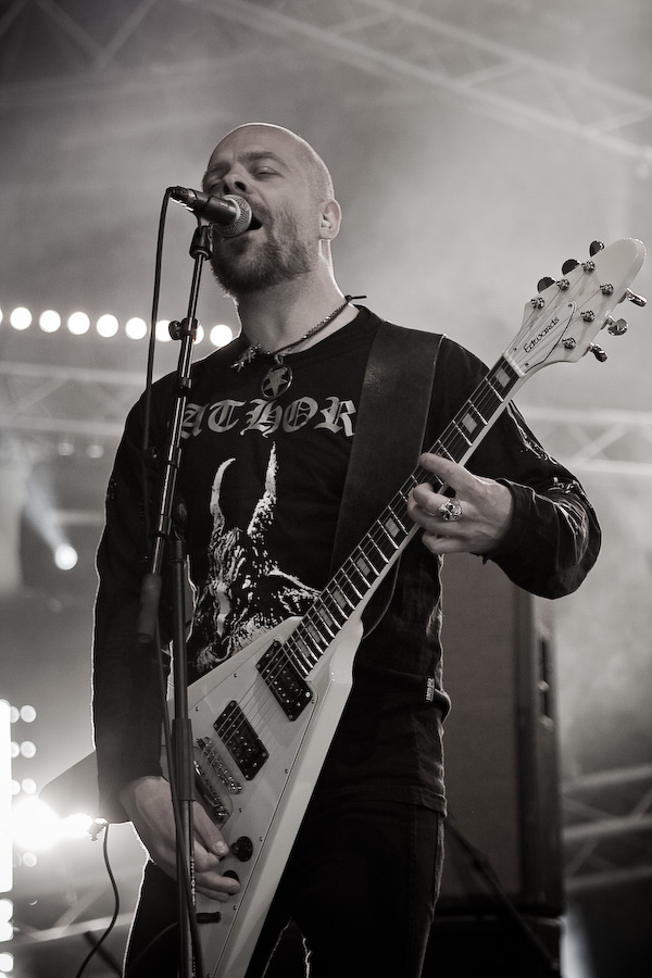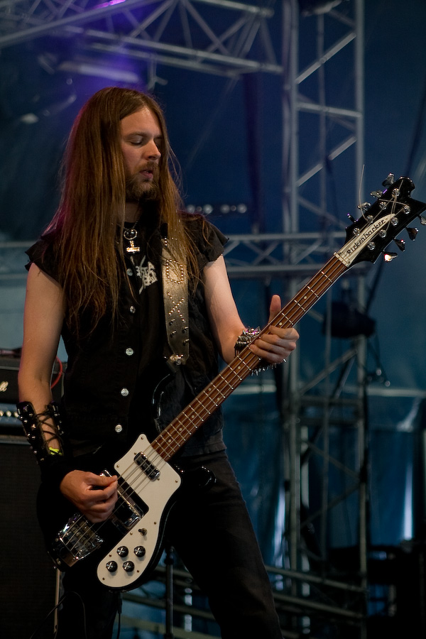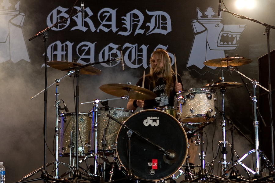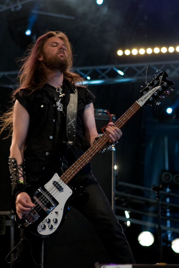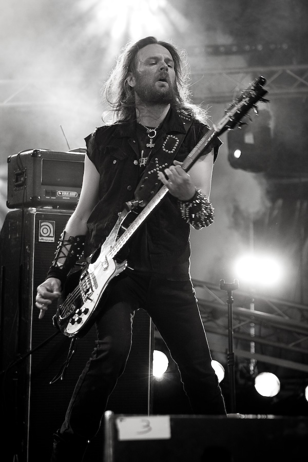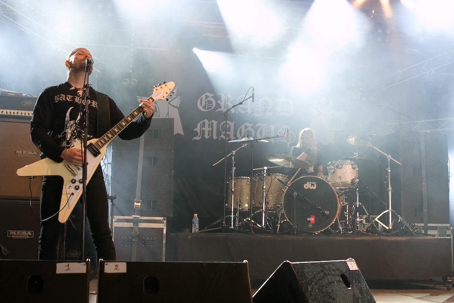 2ème jour au Hellfest, la journée de la veille fut rude, et malgré un réveil difficile, j’arrive sur le site bercé par le doux son du death metal au fond des bois… De quoi me réveiller un peu en rejoignant la tente « Rock Hard » où la journée doit commencer sous les meilleurs auspices avec Grand Magus. JB débarque sur scène, tout de noir vêtu (pantalon moulant, bottes et t-shirt Bathory, un pur metalleux !) et le crâne rasé (j’avoue avoir été surpris, moi qui ne l’avait pas vu depuis longtemps !). Equipé de sa Flying V, le bonhomme prend une toute autre dimension qu’en tant que « modeste » vocaliste de Spiritual Beggars : non seulement il confirme ses talents de chanteur hors pair (quelle voix…), mais ses riffs de guitare, bien ciselés, sont exécutés à la perfection… mais ce n’est pas tout, Janne n’hésite pas à se lancer dans quelques solo franchement impeccables. Quel musicien impressionnant… Il faut dire que sa tâche de leader est facilitée par la rythmique impeccable de Fox et Sebastian, à l’aise mais rigoureux, « à la suédoise ». Musicalement, un peu à l’image de l’évolution de Spiritual Beggars (pour un peu on pourrait dire que c’est JB qui en est la cause ?) le stoner/metal old school des débuts est devenu plus proche du metal traditionnel bien charpenté : c’est très bien fait, vraiment sympa à écouter, mais c’est quand même un peu comme un amour de jeunesse que l’on revoit 20 ans après… On est toujours un peu déçu… Mais dans l’absolu, ça reste un super groupe, dynamique, et un excellent concert, surtout !