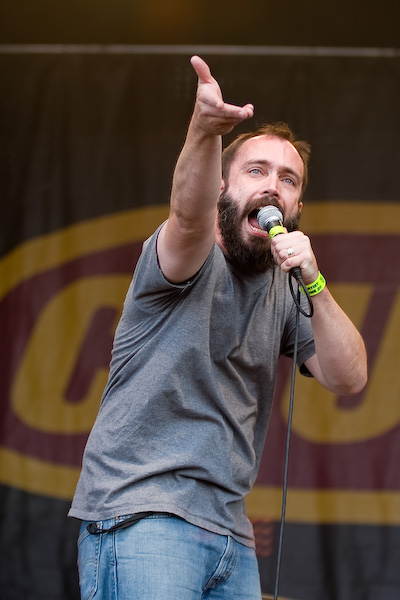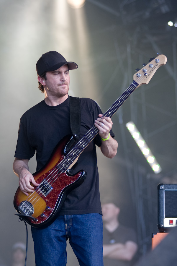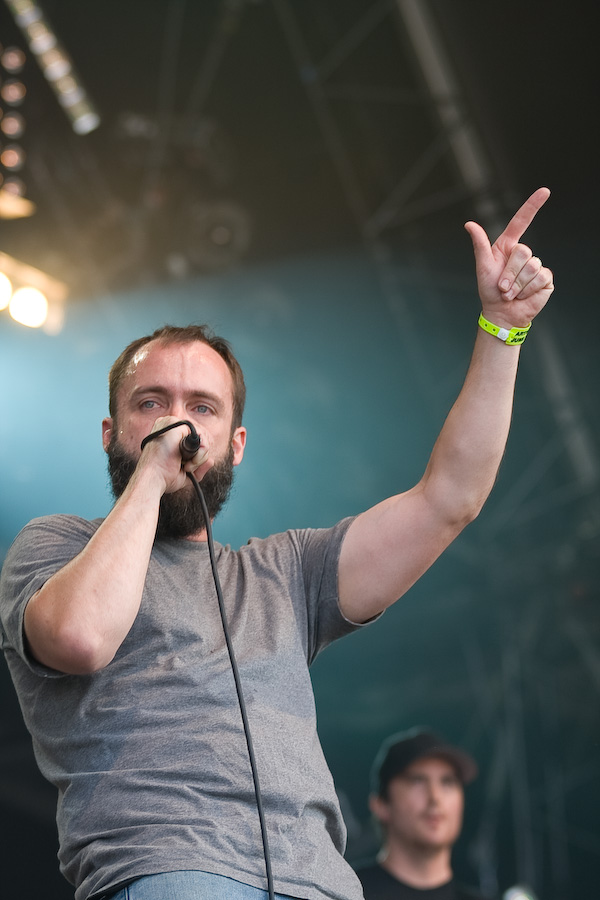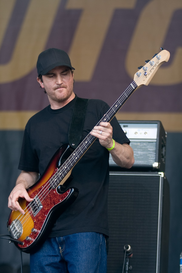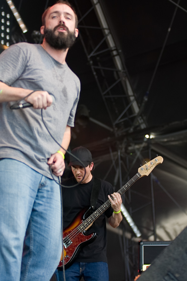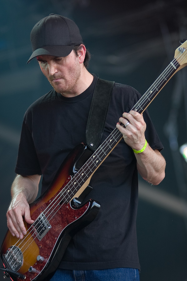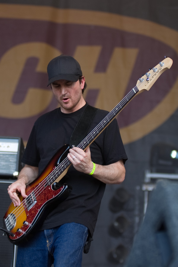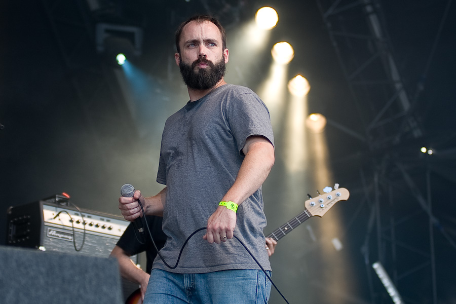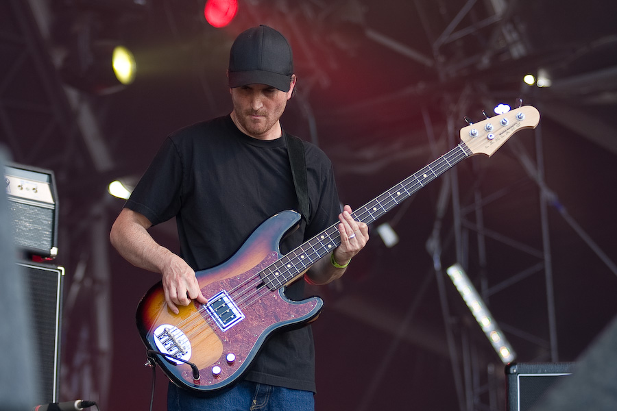 S’ensuivent quelques heures un peu laborieuses, où les concerts sympa (Koritni, les rigolos Mad Sin) alternaient avec les plus laborieux (je m’abstiens de critiquer des groupes dont le genre ne me convient pas…). Tout ça pour arriver probablement au point d’orgue de la journée, avec la présence à l’affiche de Clutch. A noter que les ricains ont atterri là un peu par hasard, en remplacement des vieux électro-indus de KMFDM (rien à voir musicalement, mais on s’en fout…). Le malheur des uns… Bref, le désormais quatuor (contrairement à ce qu’on pouvait imaginer, leur claviériste n’a pas fait de vieux os) monte sur scène et décoche très vite ses premiers accords. Première surprise : malgré une scène énorme (la main stage 2), le groupe a installé son matos tout près du bord : ils sacrifient ainsi une bonne partie de la scène, mais ont préféré privilégier la proximité du public, en configuration « club ». Une configuration inédite durant tout le festival ! CHapeau !