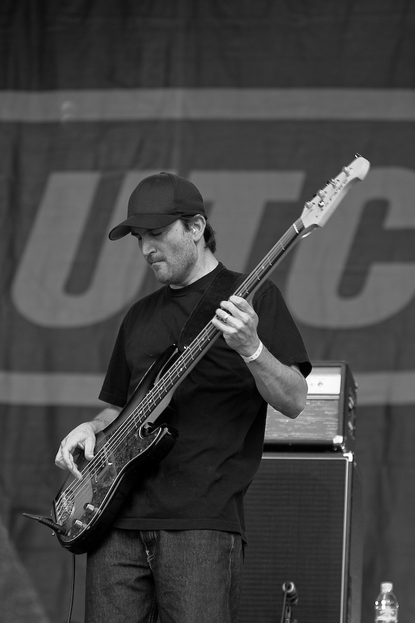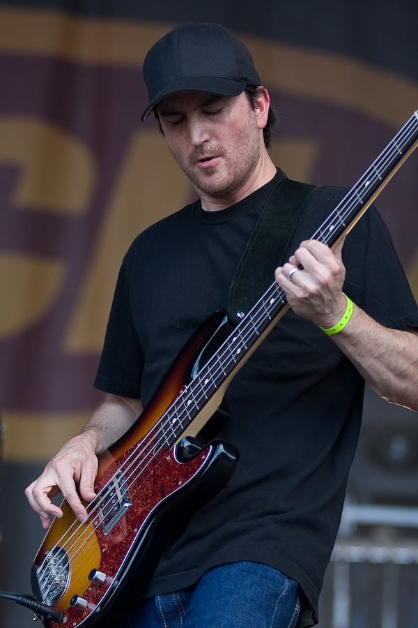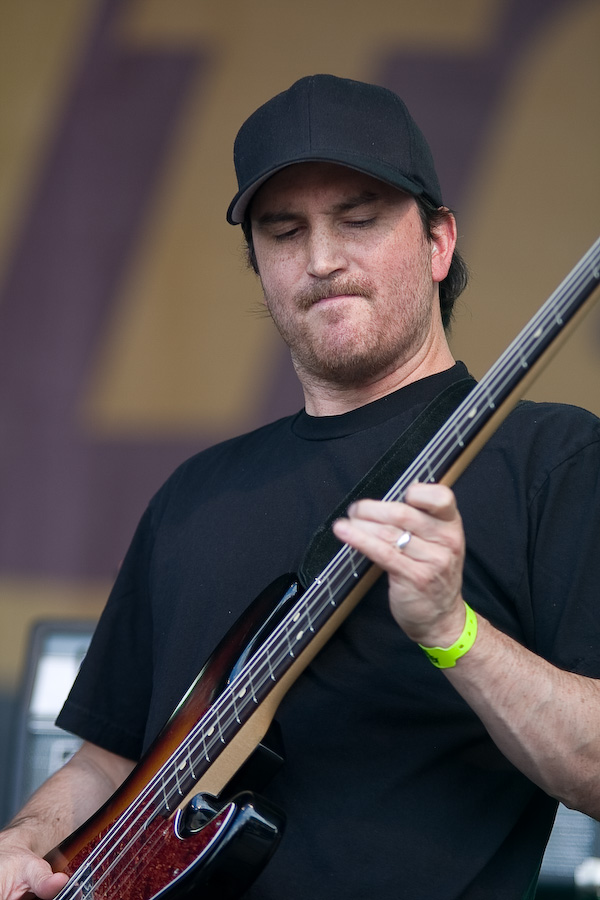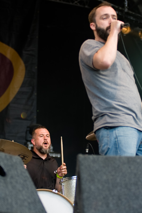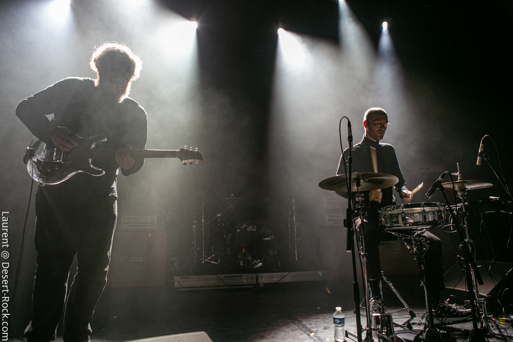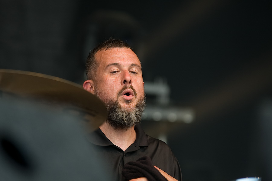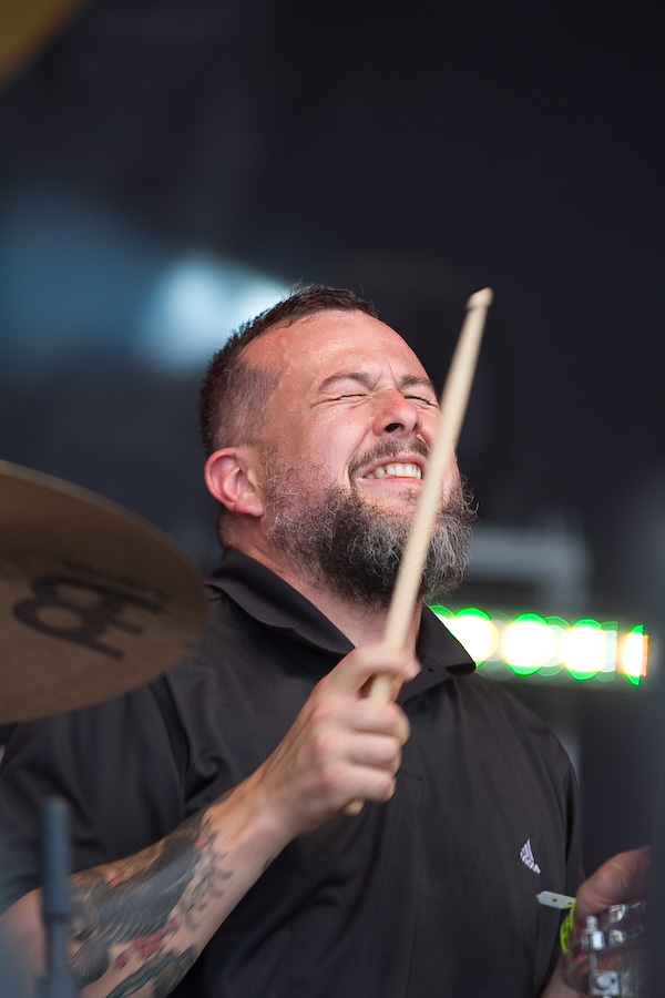 Seconde surprise : le public réagit, et réagit même très bien ! Etonnant au vu de la trop faible notoriété du groupe dans nos contrées ! Gageons que ce type de performance va changer la donne… En effet, Clutch aujourd’hui est impérial. Niveau scénique, ne nous leurrons pas, rien ne change : Dan Maines et Tim Sult, aussi géniaux soient-ils respectivement, ne sont pas là pour faire les clowns. Concentrés, rigoureux, à peine décrochent-ils un sourire de temps en temps, probablement débordés par un frisson musical… Jean-Paul Gaster, l’un des plus incroyables batteurs de sa génération, gesticule derrière son set et grimace en continu. Mais c’est bien Neil Fallon qui assure le show. Dès qu’il commence à chanter, il devient totalement habité, gesticule, saute, court… Les 3 derniers albums du groupe sont les principaux pourvoyeurs de titres de ce set de 45 minutes, sans gras, direct à l’essentiel. Superbe performance.