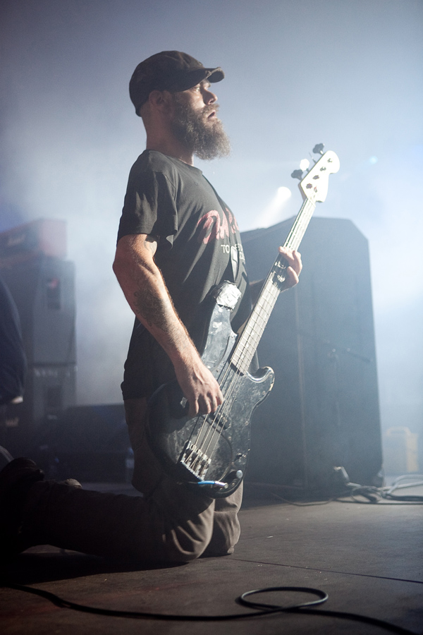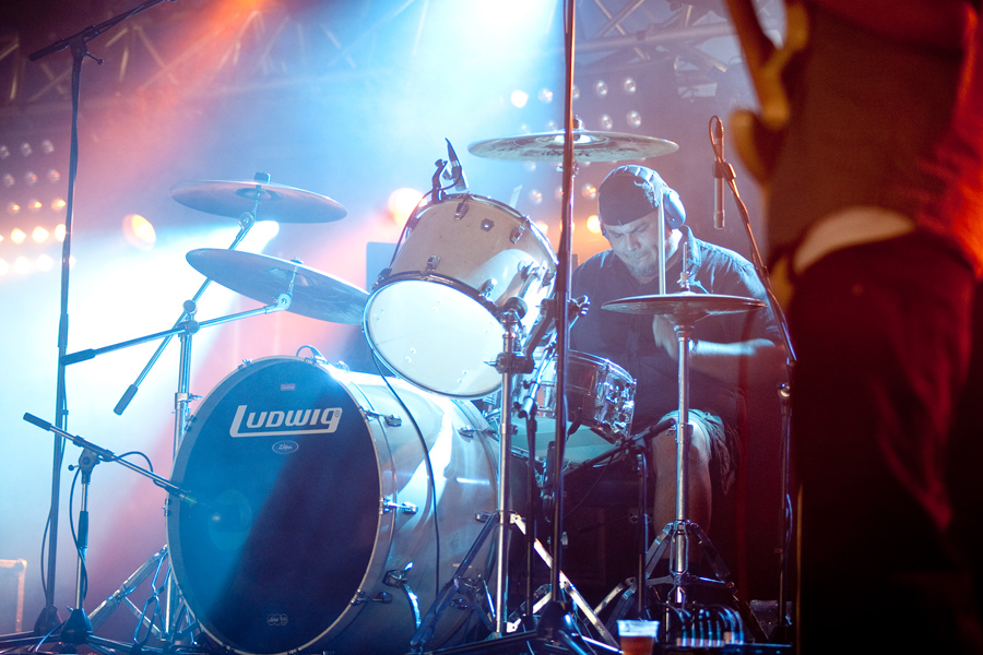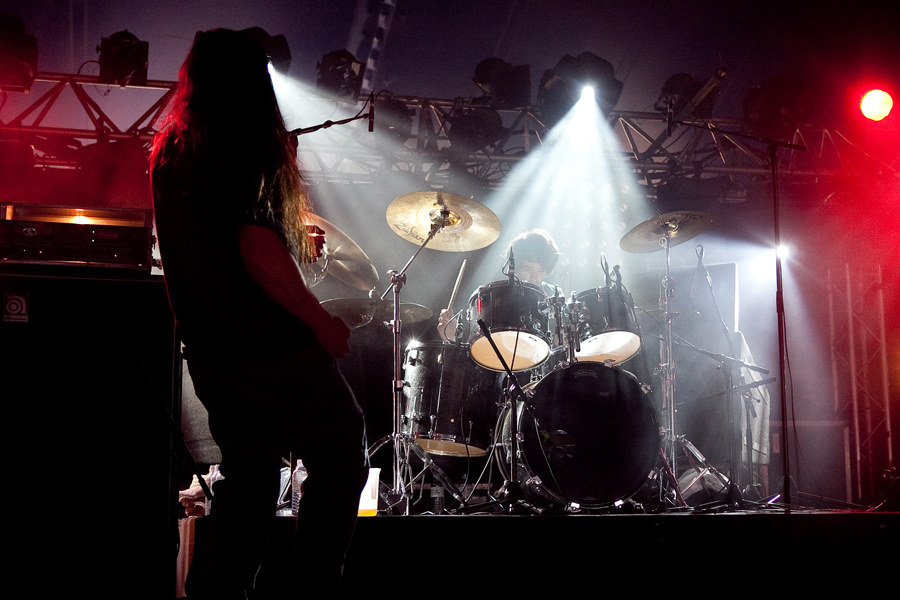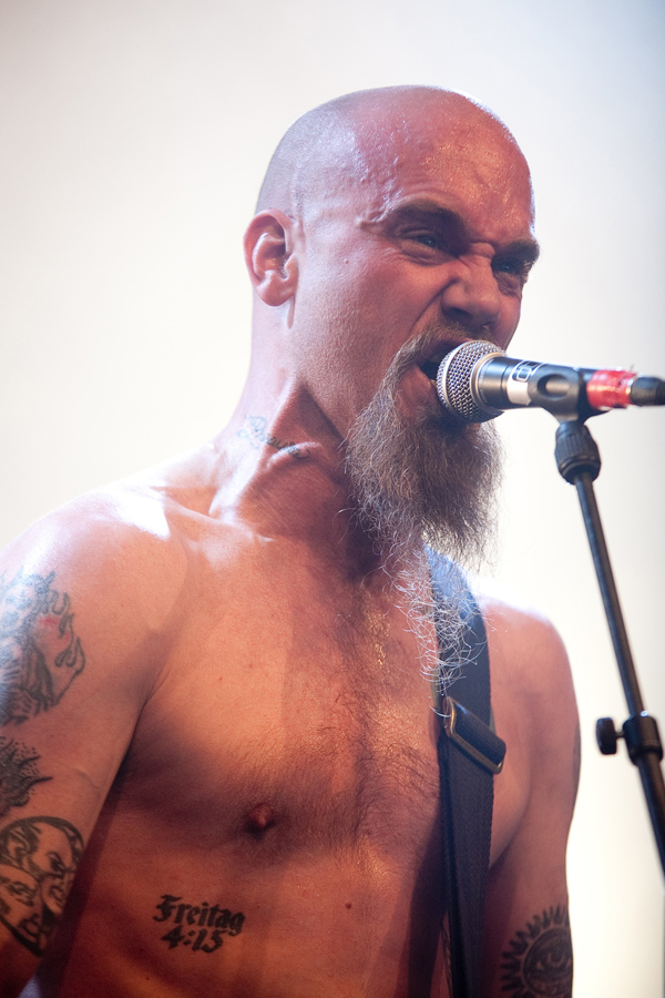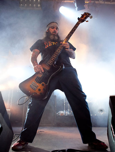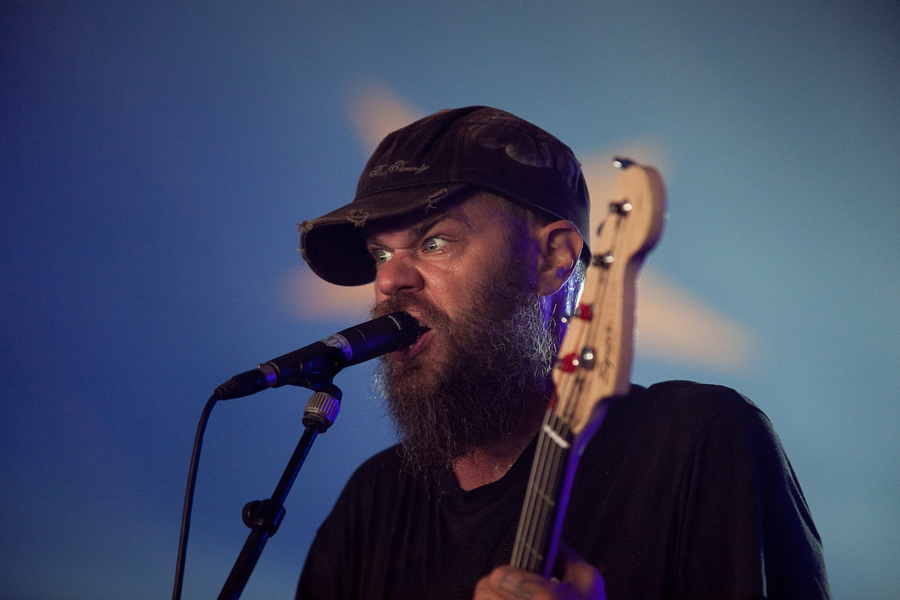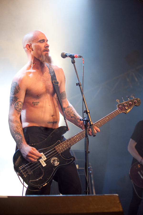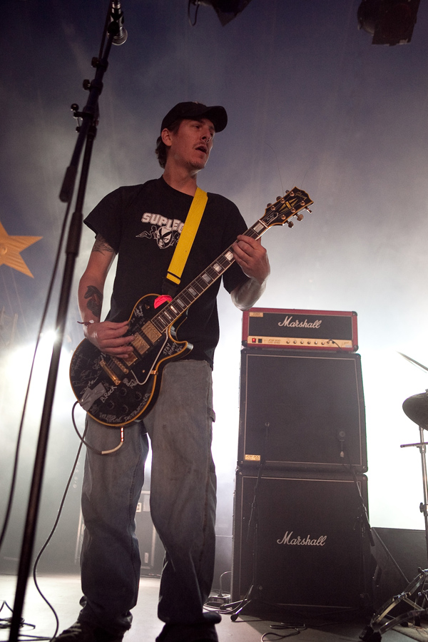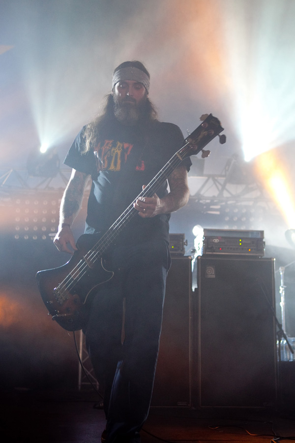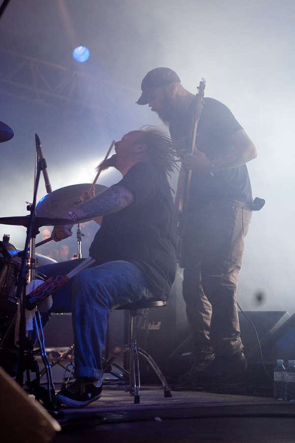 Retour au sludge avec WEEDEATER, des anciens Buzzov-En bien entamés du bulbe. Complètement barré sur scène, Dixie Collins vomit ses vocaux en grimaçant comme un débile consanguin, danse comme un hillbilly, le tout en assurant ses parties de basse. Son duo avec le batteur déjanté Keko (dont le kit est posé juste au bord de la scène, initiative intéressante !) assure le spectacle. Les titres bien catchy et accessibles du trio cartonnent, et Nick Oliveri, qui est arrivé sur le site un peu plus tôt, s’éclate pendant leur set sur le bord de la scène. Excellent.