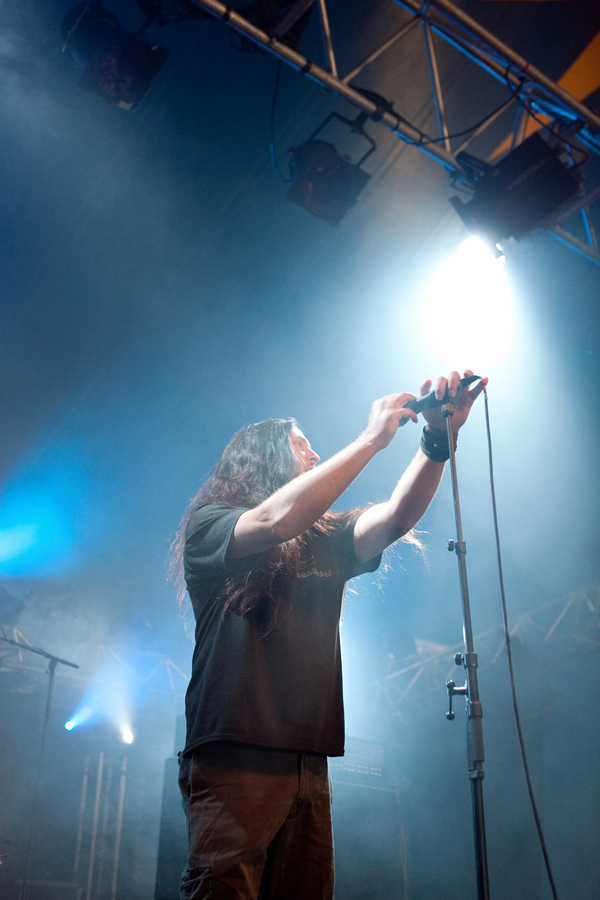 De manière encore un peu incongrue, le metal sludgy de RWAKE prend la suite, mais leur son plus froid, plus métallique, et globalement leur sérieux à toute épreuve, refroidissent quelque peu notre état d’esprit… Ca casse un peu l’ambiance, même si la musique du combo tient la route et que son set est pro et efficace. A leur décharge, le public accroche pas mal !
