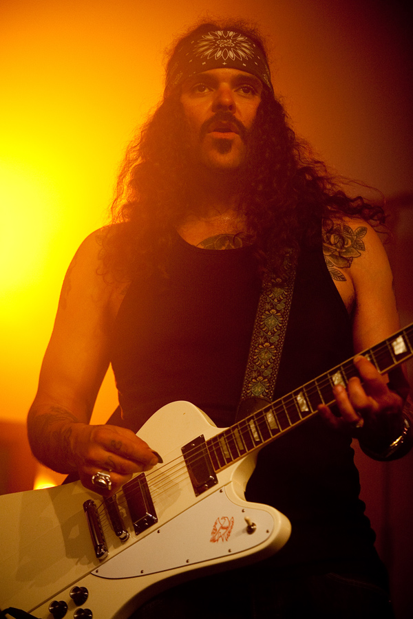 Pour finir cette séquence de concerts qui fleure bon le sable chaud, qui mieux que Mister Cool himself pour prendre la scène ? Tandis que mes collègues de Desert-Rock ont pu le voir récemment, et notamment depuis son récent changement de line-up, j’en étais resté à l’image d’un combo scéniquement amorphe, qui aurait pu ré-activer la torpeur dans laquelle Yawning Man avait plongé le public un peu plus tôt… Quand BRANT BJORK & The Bros montent sur scène, le doute n’est plus permis : désormais, en live, le groupe assure sur tous les aspects ! Musicalement, c’est impeccable. Manifestement, Brant a été prévenu avant de monter sur scène : le Hellfest, c’est un festival de métalleux ! Il axe donc son set autour de certains de ses titres les plus nerveux et les plus rock, ce qui ne l’empêche pas de déborder de groove et de cool attitude… Les musiciens sont à fond dedans (bon sang, ça change de notre souvenir il y a quelques années !), ils se la donnent, et Brant lui-même sourit, blague, entâme des pas de danse pour le moins décalés, grimace… Superbe concert et gros succès dans cette tente toute acquise à la cause stoner…