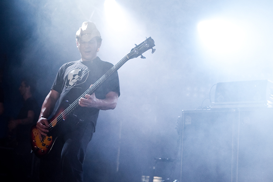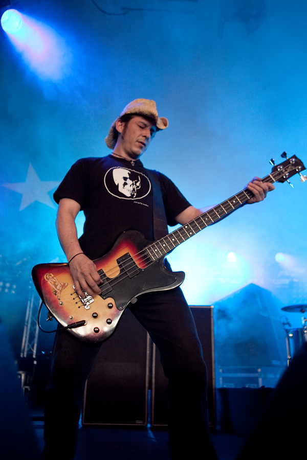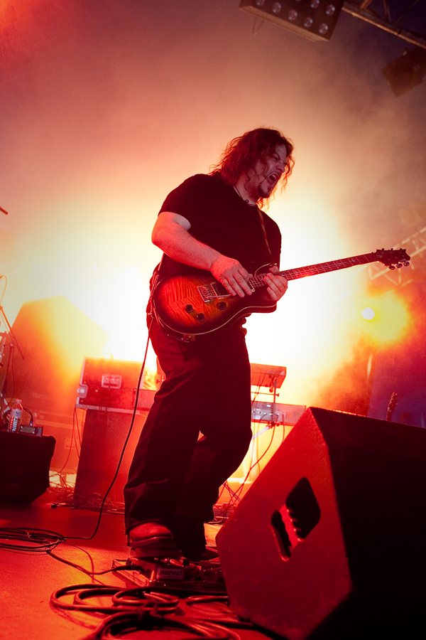 Passés ces quelques amuse-bouches, on fonce vers la sympathique et chaleureuse tente Terrorizer pour voir le premier groupe de pur stoner de l’affiche : les suisses de MONKEY 3. La scénographie (lights, fumigènes, vidéos…) fait plaisir à voir quand on vient des moches Main stages en plein jour : le groupe fait un réel effort pour soigner sa mise en musique, une réussite ! Le quatuor se concentre sur sa musique, et ça marche : le public est conquis. Ambiance hypnotique, passages atmosphériques… tout est balayé d’un revers de poignet de Boris et Picasso par l’intermédiaire d’un riff dantesque, soutenu par une rythmique impeccable. Même si le groupe n’est pas aussi « rentre-dedans » que des groupes « riff-oriented » comme Karma To Burn, leur stoner instrumental, plus élaboré, parfois aux relents progressifs, fait mouche. Les musiciens sont à fond dans leur musique, ils communiquent entre eux et avec le public uniquement par leurs instruments… une vraie expérience ! Le trip prend fin après un set court de 40 minutes, dense et efficace. Un sans faute ! Gageons que Monkey 3 a gagné une montagne de nouveaux fans aujourd’hui.