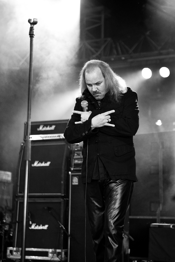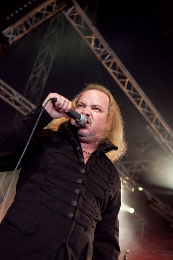 La tente Rock Hard est ensuite la scène du concert des doomeux de CANDLEMASS : le groupe de Leif Edling traîne son statut culte à l’occasion de quelques concerts ces dernières années, et notamment depuis l’arrivée du très peu charismatique chanteur Robert Lowe. Celui-ci, doté d’une voix plutôt correcte, n’a pas le talent de Messiah Marcolin, hélas ! Sans passion, Candlemass enquille quand même quelques classiques, bien exécutés, avec un Lowe qui ressemble plus à un dandy bourgeois un peu replet qu’à un prêtre maléfique… Autre époque ! D’ailleurs, les titres les plus cultes du combo sont autant représentés que les extraits du dernier album en date (sacrilège !). Les fans de doom old school traditionnel « à l’anglaise » (ni foncièrement lent, ni foncièrement grave) ne boudent pas leur plaisir, même si à titre personnel j’en ressors un peu déçu…