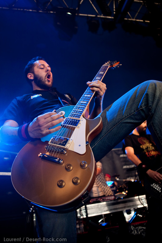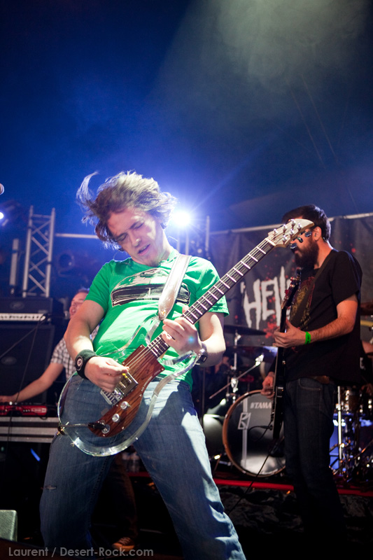 Pudiquement, je passerai rapidement sur la prestation pour le moins décalée de HAWKWIND. J’aurais adoré écrire ici que leur sens du second degré avait fait mouche et que l’on s‘était bien marré. Sauf que même si l’humour est bien présent, l’amateurisme des effets visuels (des danseuses à peine grimées montées sur des échasses pour simuler des aliens…) et la prestation globale (que l’on dirait totalement échappée de scènes coupées de Spinal Tap) laissent un sentiment plus proche de la pitié que du sourire compatissant. Par ailleurs, les musiciens sont vraiment (trop ?) vieux, et leur space rock complètement assumé, même s’il garde une dose de groove bien présente, est très daté et l’on peine à accrocher. Evidemment, persuadés de cartonner (à tort), le groupe dépasse de 15 minutes son horaire de fin… Grrr…