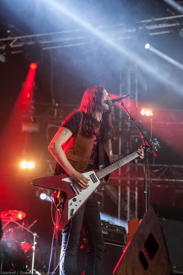 Tout comme Monolord qui les ont précédés quelques heures avant, les Ricains vont nous botter les fesses durant quarante minutes. Ils suivent une formation un peu plus légère lors de cette journée sous le signe du trio dans la Valley (et pas du triolisme bande pervers !). Le stetson trône bien placé sur la tête d’ampli Orange durant le show que proposent les Texans qui viennent de nous gratifier d’un « Midnight Cometh » auquel nous souhaitons le même succès que celui qu’a rencontré au sein de notre communauté son prédécesseur « The Conjuring ». Le show – terriblement couillu – des Etasunien sera propice à quelques figures de style de la part de la frange agitée du public qui en profitera pour prendre de la hauteur. Une mention spéciale au bassiste de la formation qui contribuera fortement au rendu méga blast de cette prestation de grande classe qui aura grandement agité la danse de la nuque du peuple de la vallée qui grossit à vue d’œil maintenant que les festivaliers débarqués tôt le matin ont pu pénétrer l’arène après un contrôle chronophage annoncé et fort compréhensible par les temps qui courent malheureusement