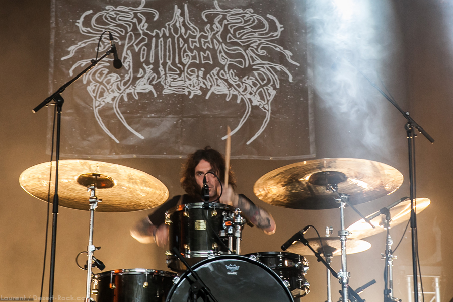 Fraichement reformé suite à l’éviction de Mark Greening de With The Dead, Ramesses a été dépêché par le Hellfest en remplacement de Windhand afin de faire couler le doom sous la Valley. Avec l’indéboulonnable Adam Richardson à la basse et Alex Hamilton (Bossk) à la guitare, les anglais frappent fort d’entrée en envoyant « Master Your Demons » issu de l’EP We Will Lead You To Glorious Times. Le groupe bénéficie d’un son excellent et situe son propos aux confins du doom, croisant les ambiances extrêmes du black metal dans les méandres torturés de leur musique d’apocalypse. Sans fioriture et avec toute la sauvagerie qui habite ce trio, les 40 minutes que durent le set sont magistrales, avec en point d’orgue un final dantesque sur « Baptism Of The Walking Dead ». La Valley plus que bien remplie pour l’horaire aura tremblé de bonheur et d’effroi.