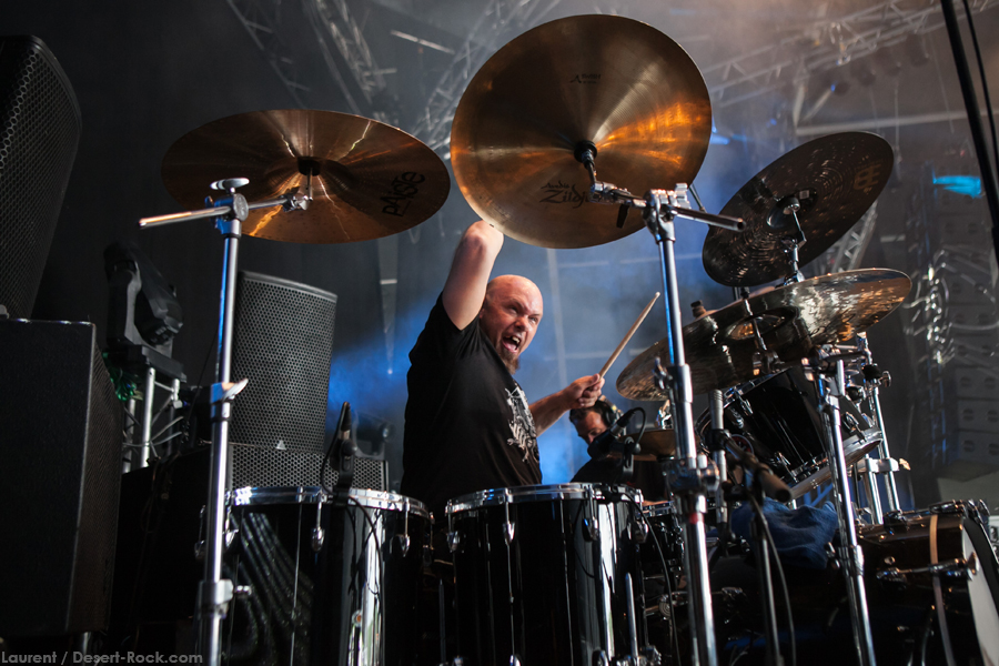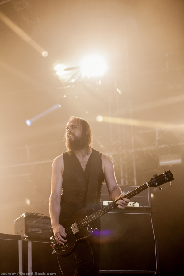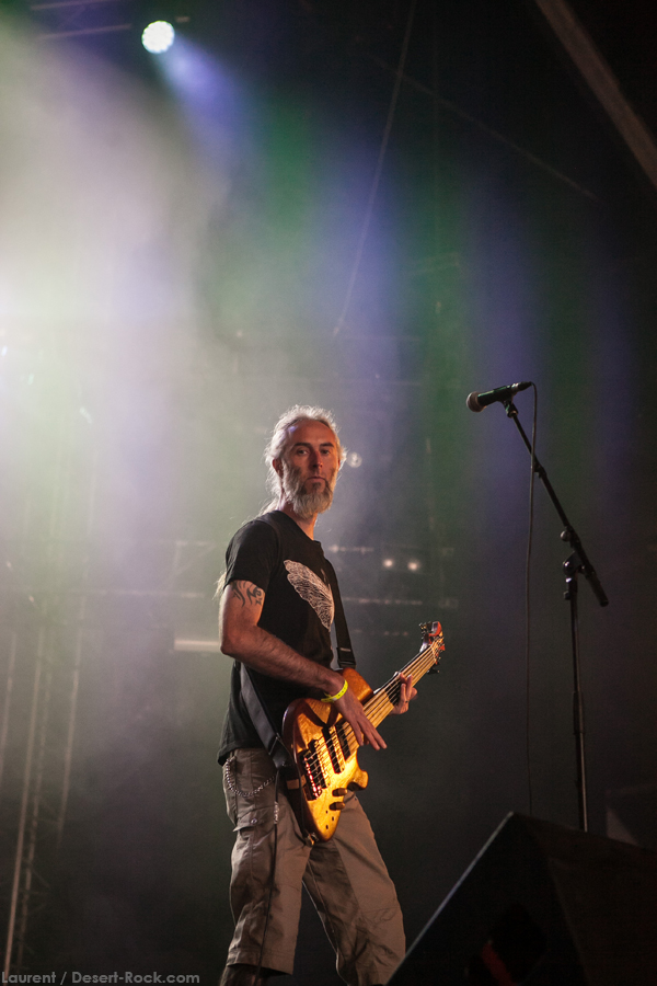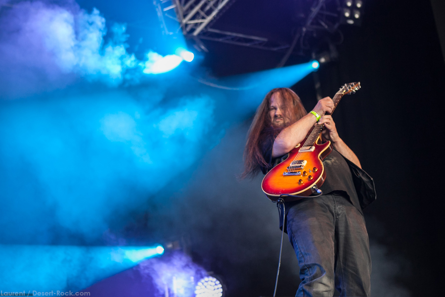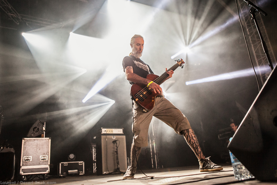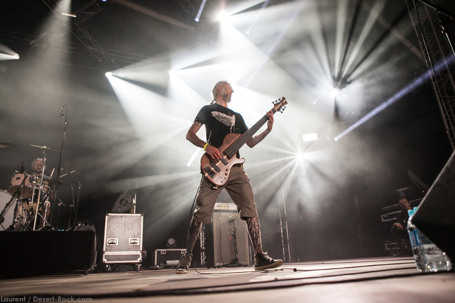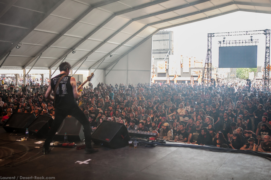 On arrive tôt pour être sûr de ne pas rater Stonebirds : on a pris une grosse claque avec leur dernier album « Into the fog…and the filthy air » sorti l’an dernier, et les échos de leurs quelques prestations live ces derniers mois étaient pour le moins élogieux… hors de question des les rater ! En revanche le « grand public » accuse le coup de ces deux terribles journées, et la tente n’est pas complètement remplie ce matin. Tant pis pour eux, ils nous rejoindront en cours de route ! Première satisfaction, le trio breton bénéficie d’un très bon son, élément clé pour retranscrire la profondeur et la richesse de sa musique : le puissant « After the Sin », morceau riche et tortueux, n’aurait pas supporté d’approximation sur le sujet, et on est rassuré. L’interprétation étant sans faille elle aussi, on se fait plaisir à s’immerger à nouveau dans les titres anguleux, tout à tour aériens et oppressants du combo. Scéniquement, leur musique n’est pas propice au headbang forcené ou aux sauts de cabri depuis la grosse caisse ; pour autant on sent nos bonhommes complètement dans leur set, et même si Fañch intériorise un peu plus, il ne faut pas oublier le travail qu’il abat, qu’il s’agisse de ses lignes vocales parfaitement retranscrites (comme sur l’émouvant « Into the fog ») ou de ses parties de gratte elles aussi impeccables. Un excellent set qui aura séduit un public peu agité mais clairement appréciatif de la performance.